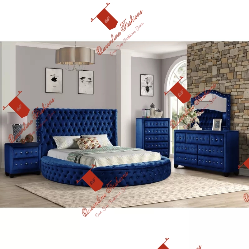 With its lavish movie star contemporary design, these queens, Queen bedroom sets add excitement to your bedroom décor. It has a tufted upholstered velvet fabric headboard and footboard. Built on a solid wood frame with accents nail head application to add beauty to the bed. Storage on the sides as well as Bluetooth and USB ports on the headboard.