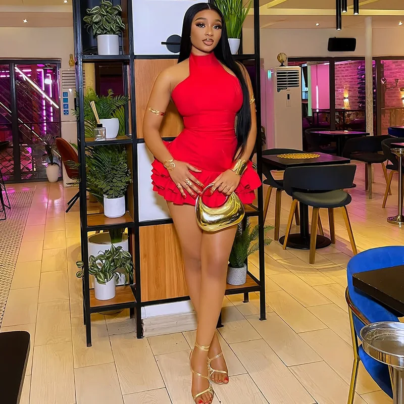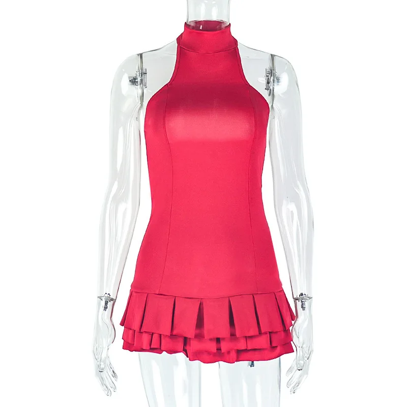 QueenLine 10pcs Bulk Items Wholesale Lots Halter Backless Ruffles Sexy Y2K Mini Dress
