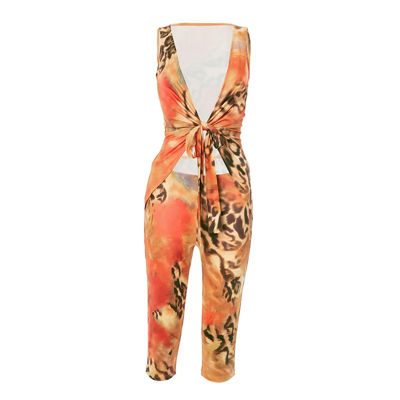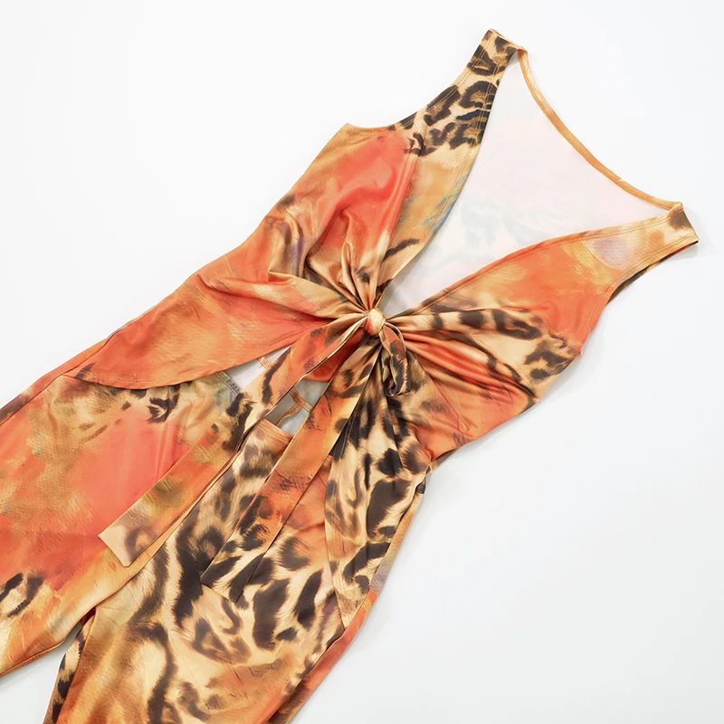 QueenLine 10pcs Bulk Items Wholesale Lots Leopard Print Jumpsuits Lace Up Sexy Bodysuits One Pieces