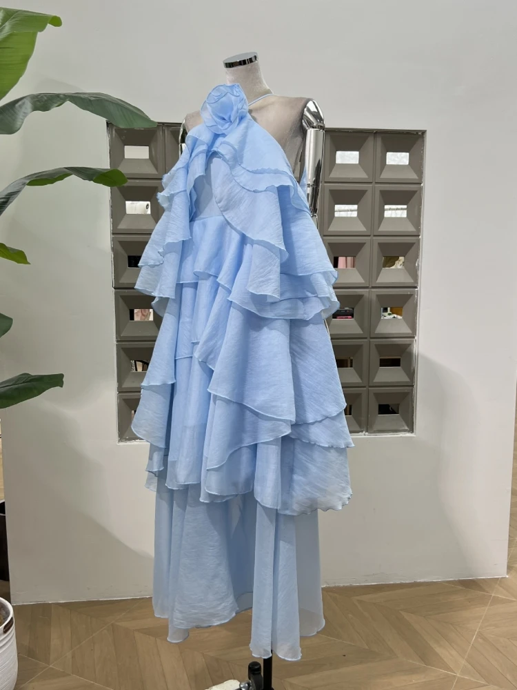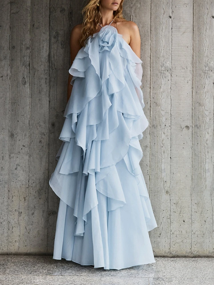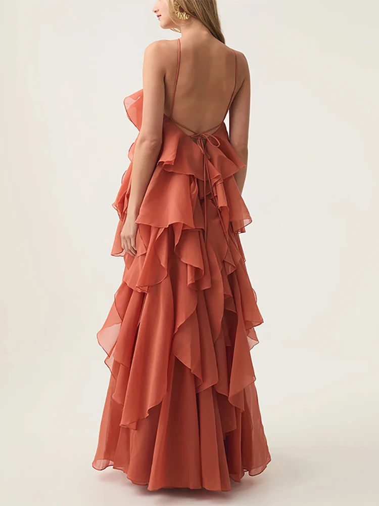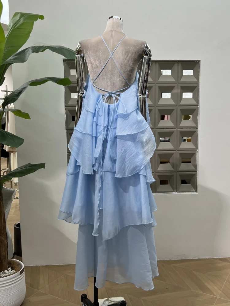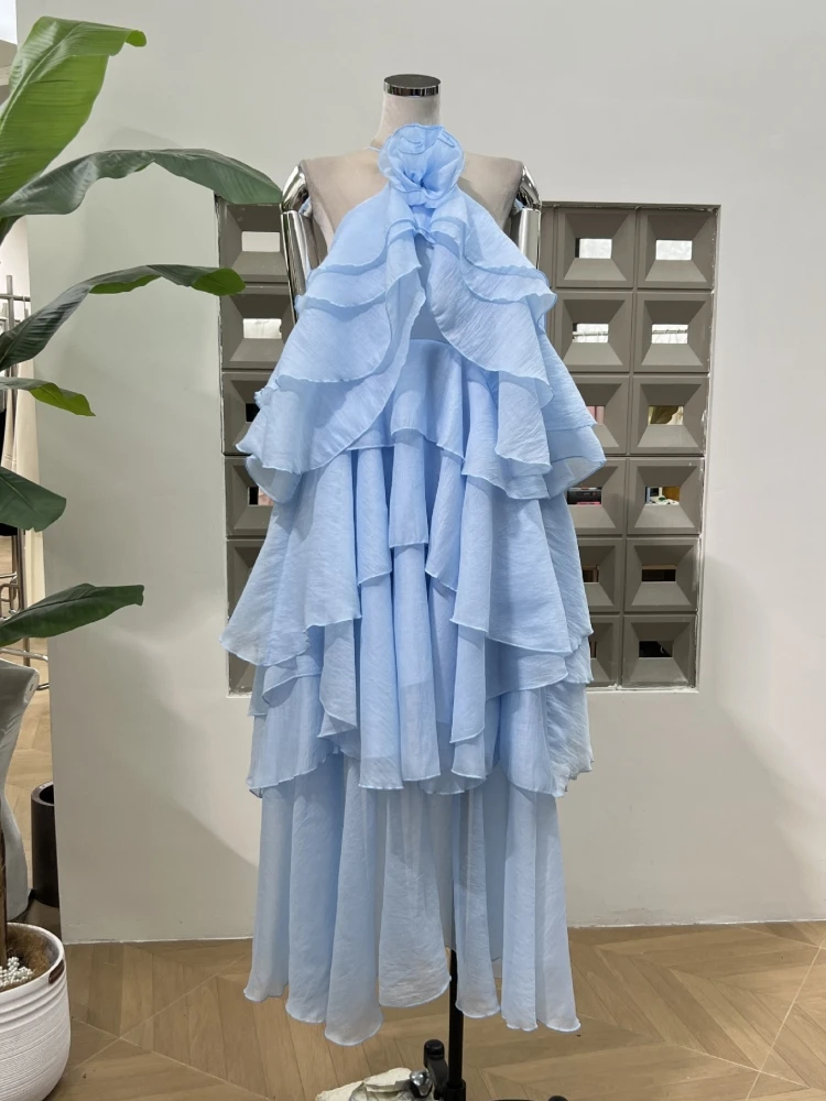 QueenLine 10pcs Bulk Items Wholesale Lots Maxi Sexy Halter Backless Lace Up Tierred Y2K Dress