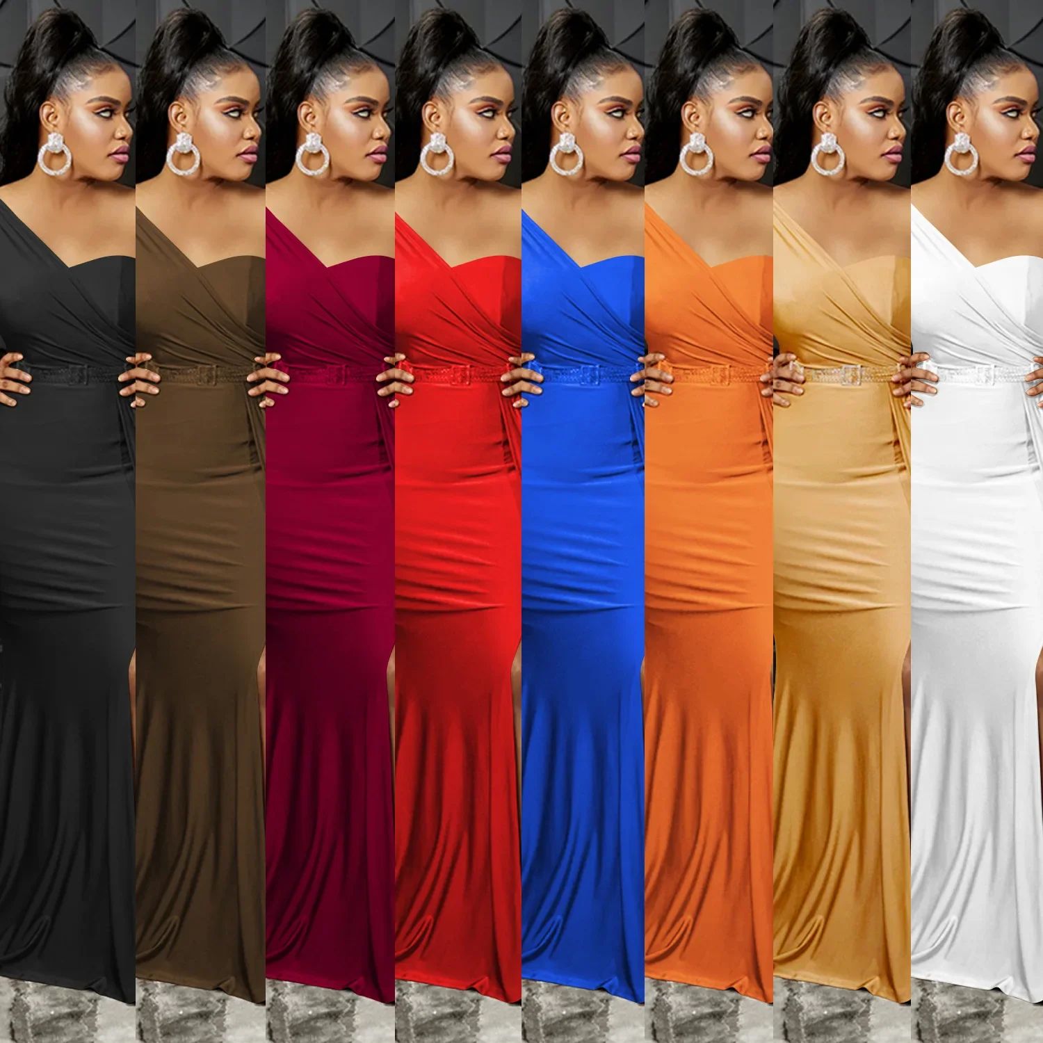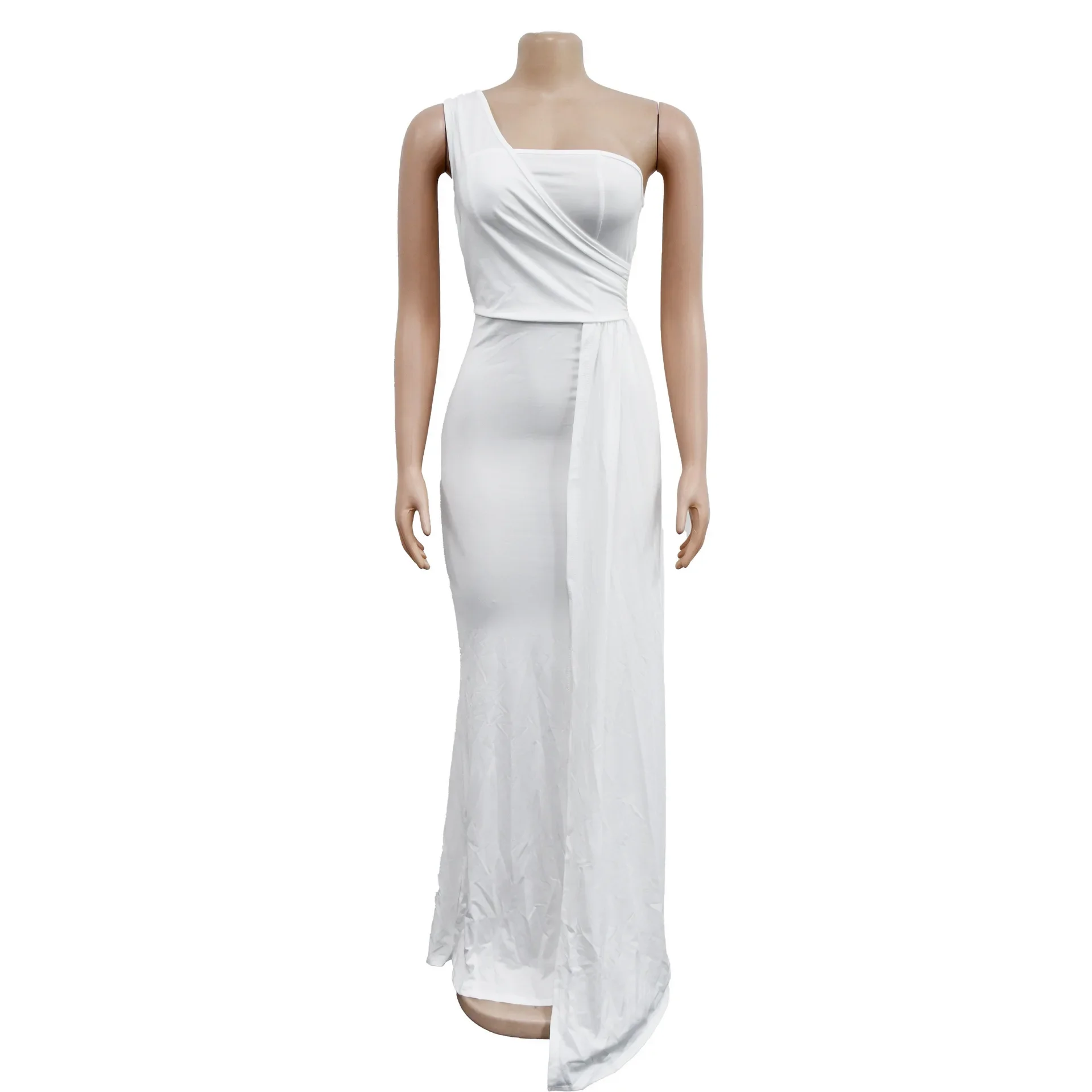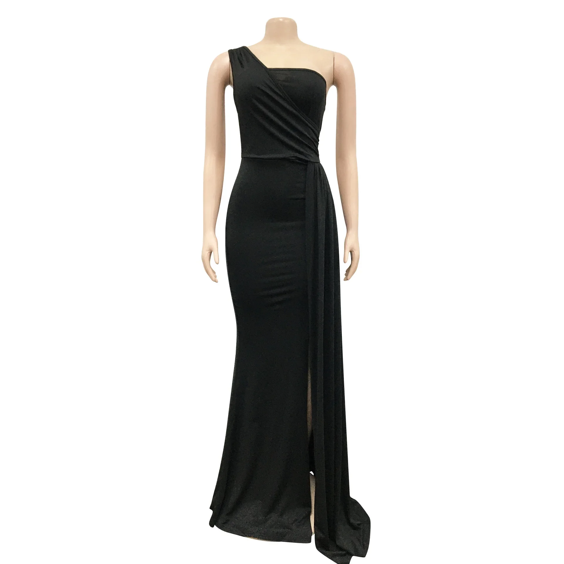 QueenLine 10pcs Bulk Items Wholesale Lots One Shoulder Split Solid Floor Length Y2k Maxi Dress