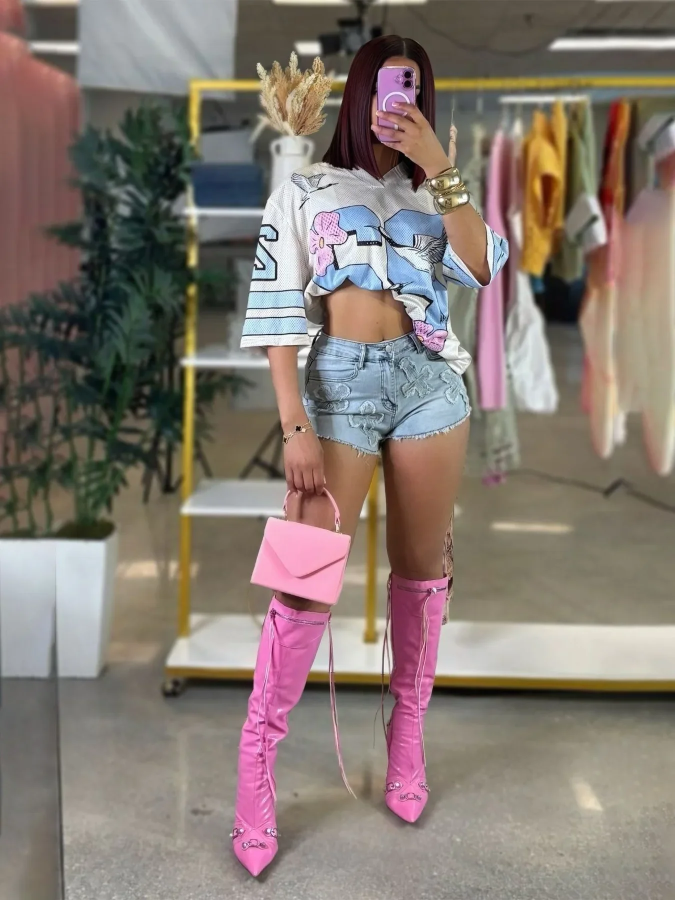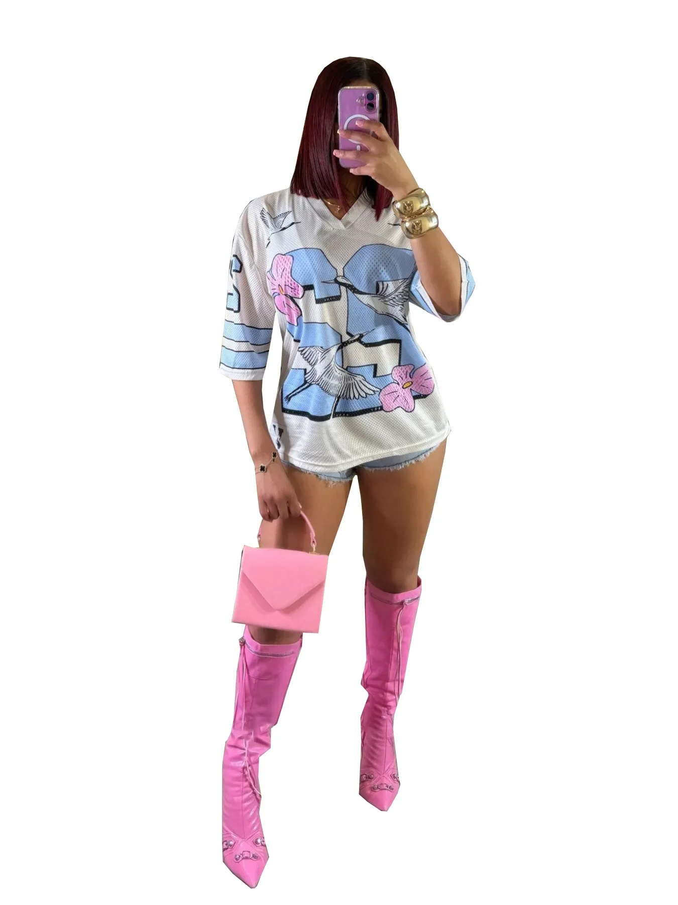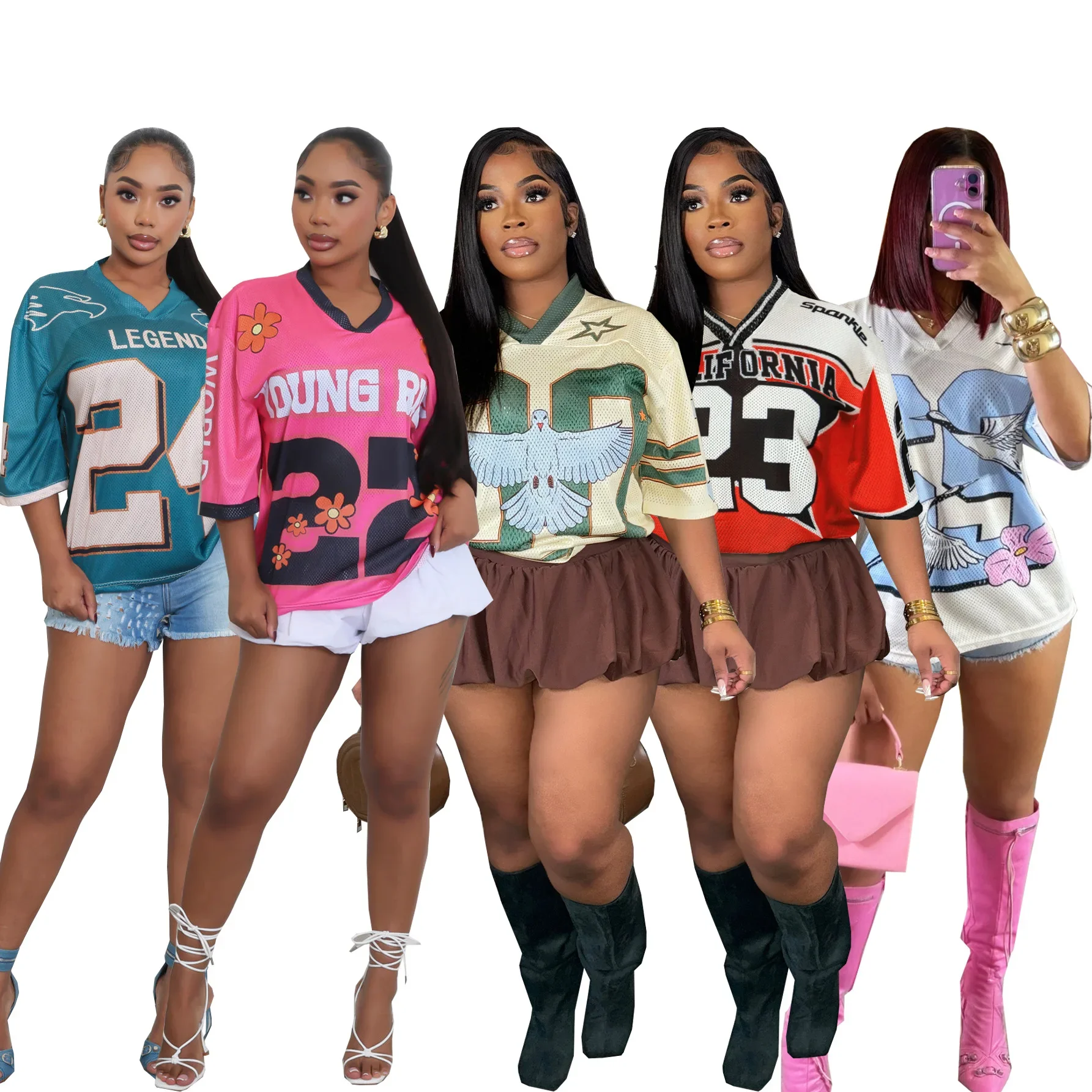 QueenLine 10pcs Bulk Items Wholesale Lots T-Shirt Short Sleeve V-neck Tees Printing Y2K Breathable Tops