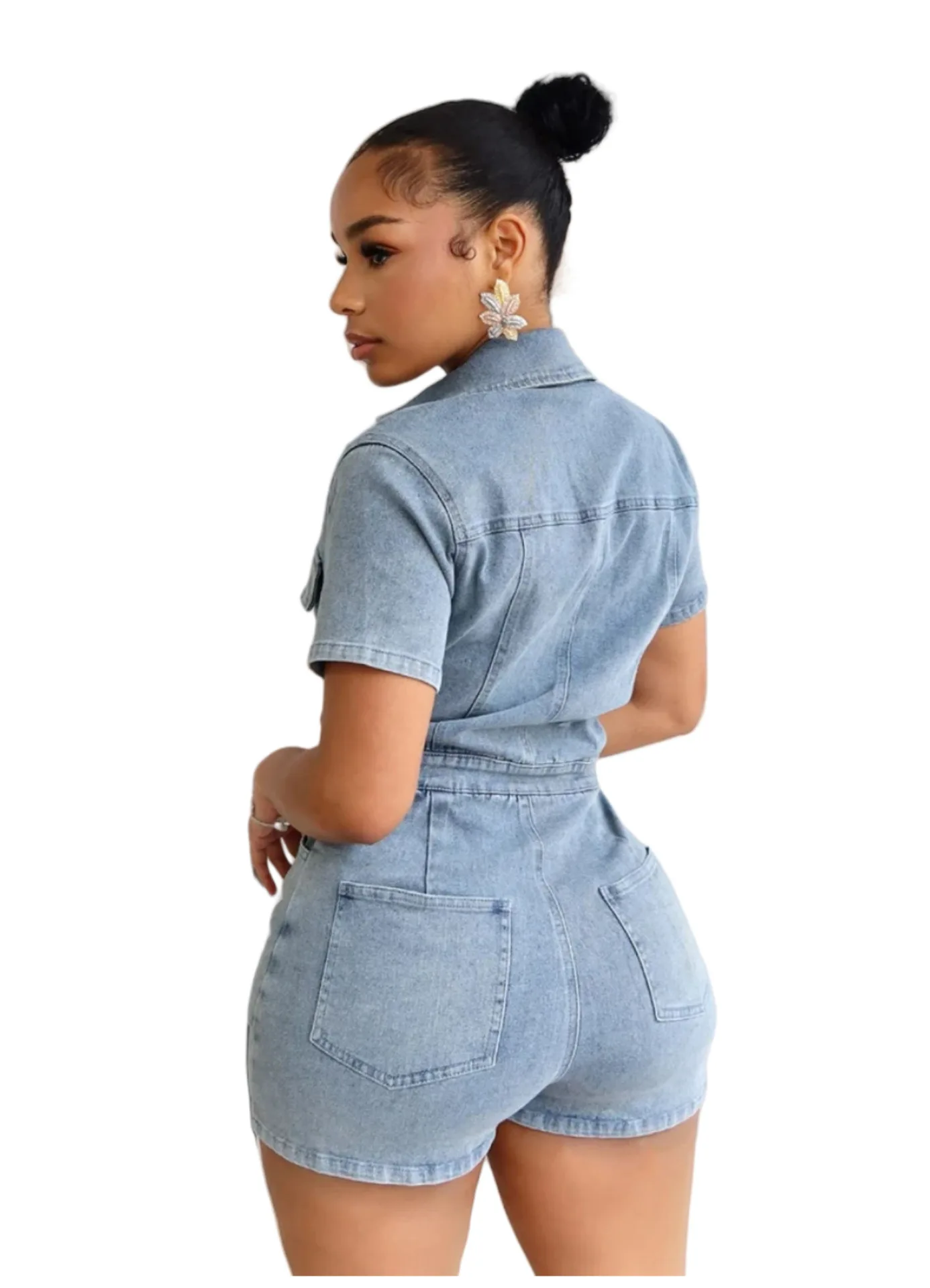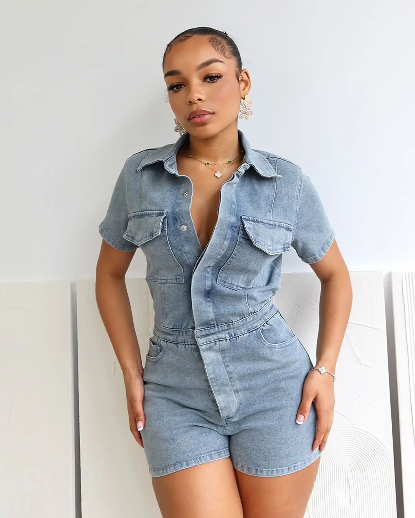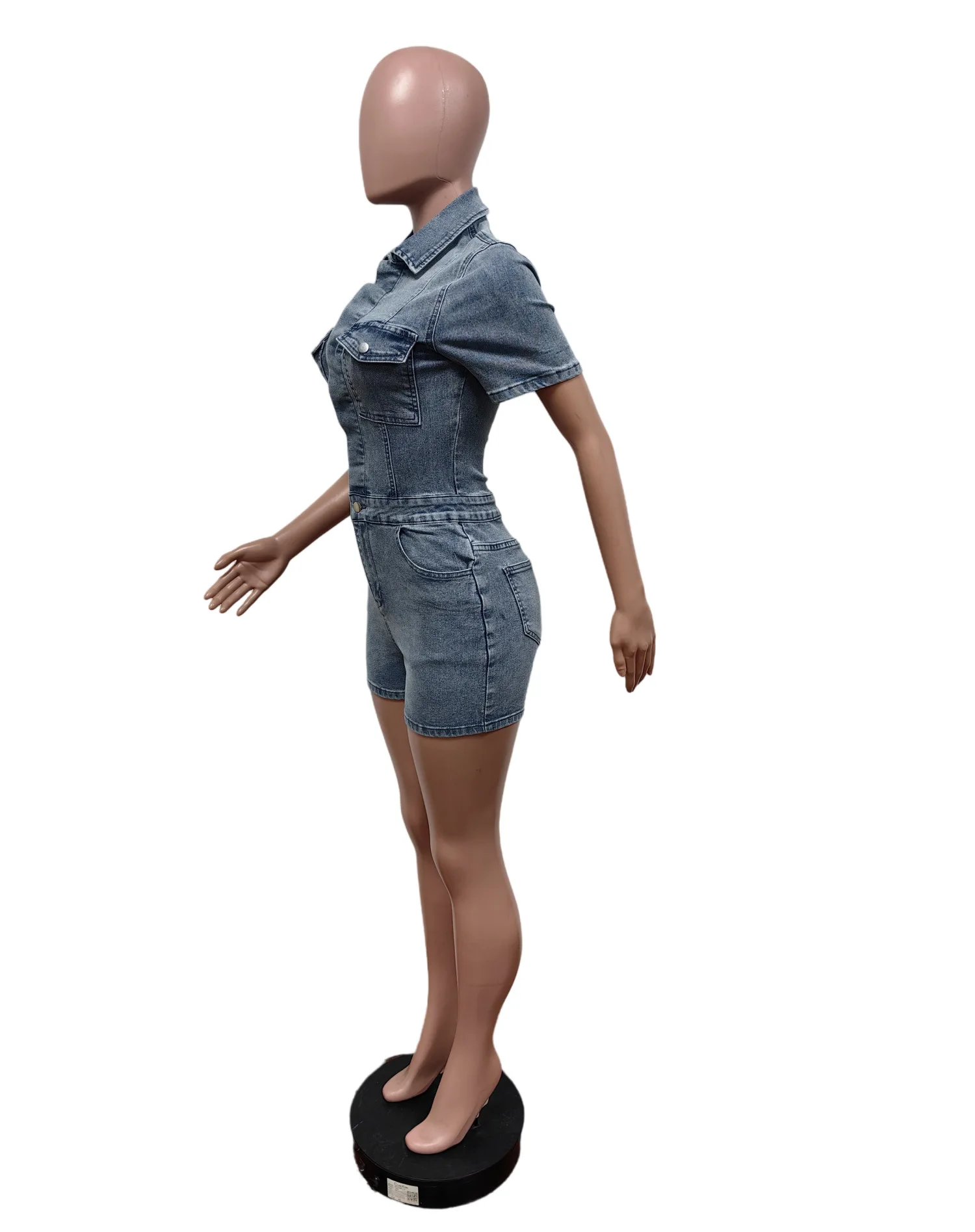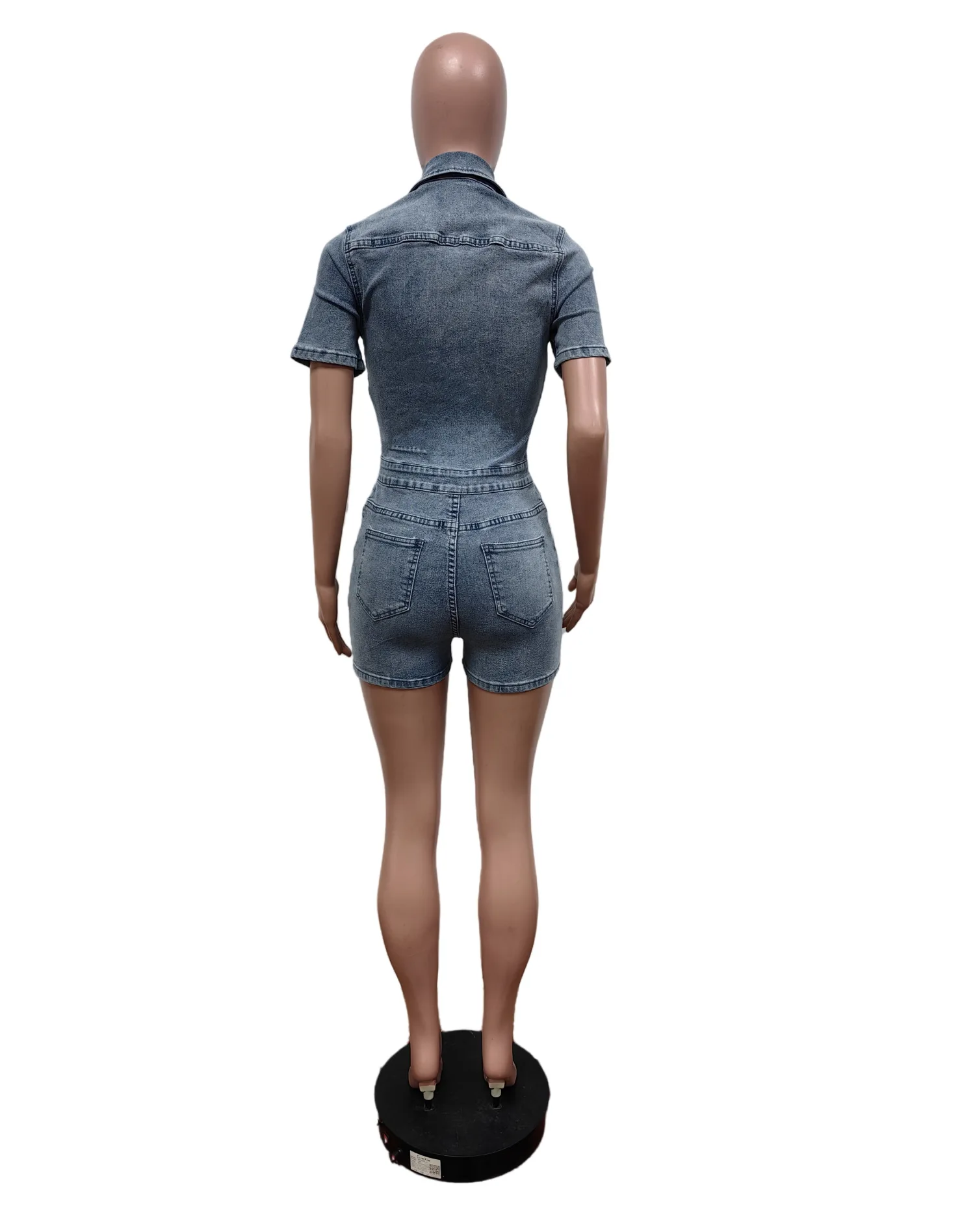 QueenLine 10pcs Jumpsuits Stretch Short Sleeved One Pieces Shorts Bodysuit Denim Bulk Items Wholesale Rompers