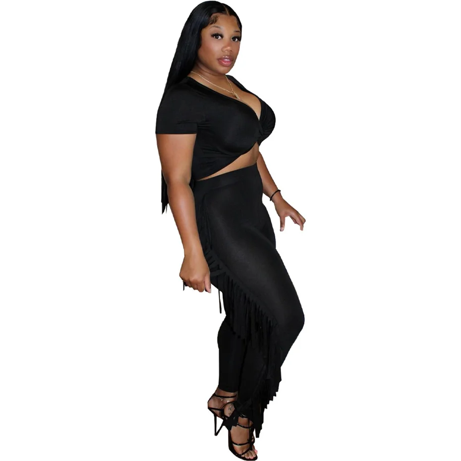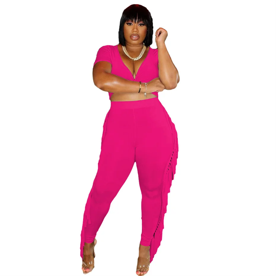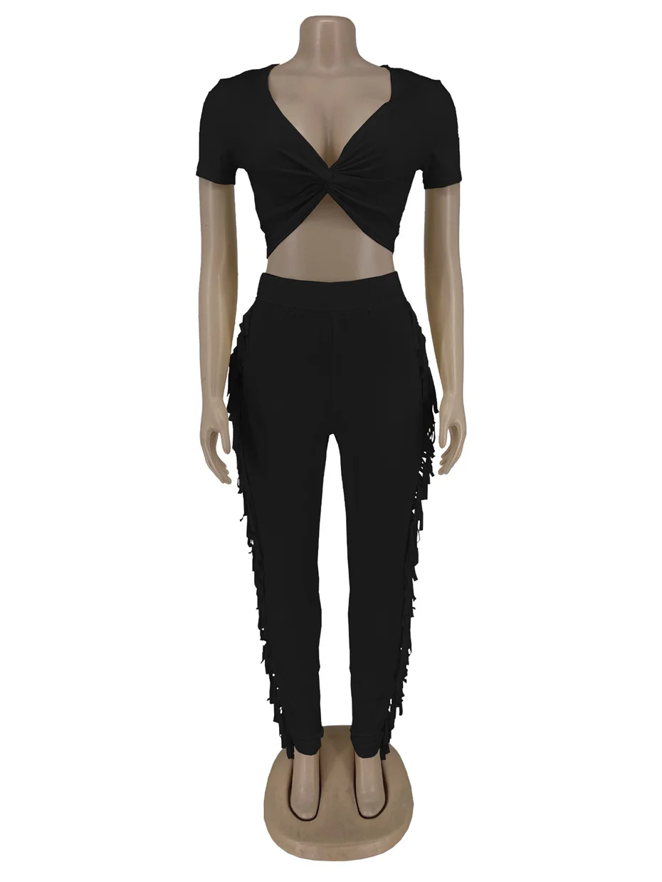 QueenLine 10pcs New Sexy Fringed Trousers Crossed Short Sleeve Y2k Wholesale Bulk Two Piece Pant Sets