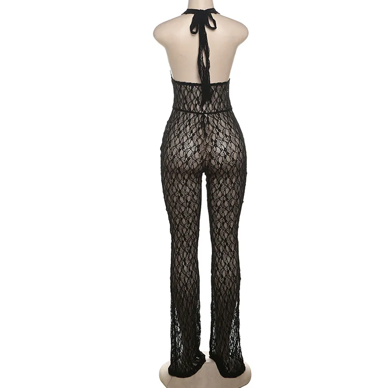QueenLine 10pcs Sexy V Neck Lace Jumpsuits See Through Halter Bodysuit One Pieces Bulk Items Wholesale Lots