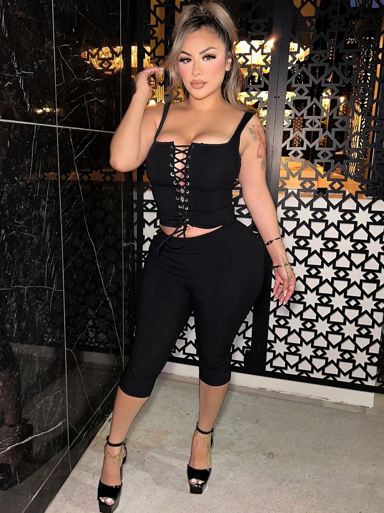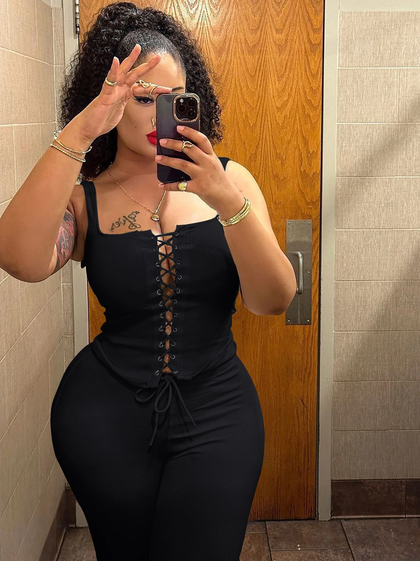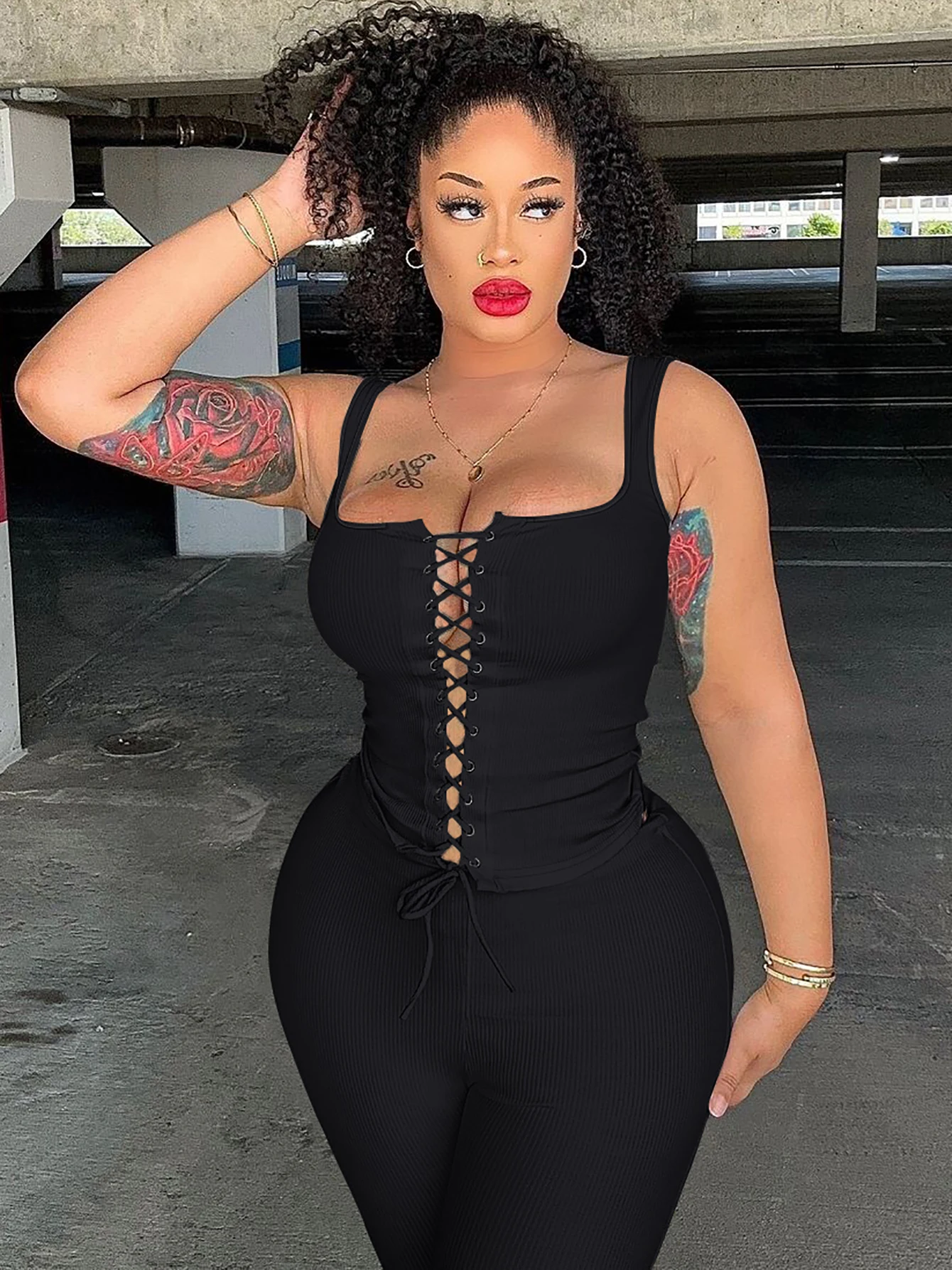 QueenLine 10pcs Shorts Suit Lace Up Vest Sleeveless Sexy Bulk Items Wholesale Lots 2 Piece Short Sets