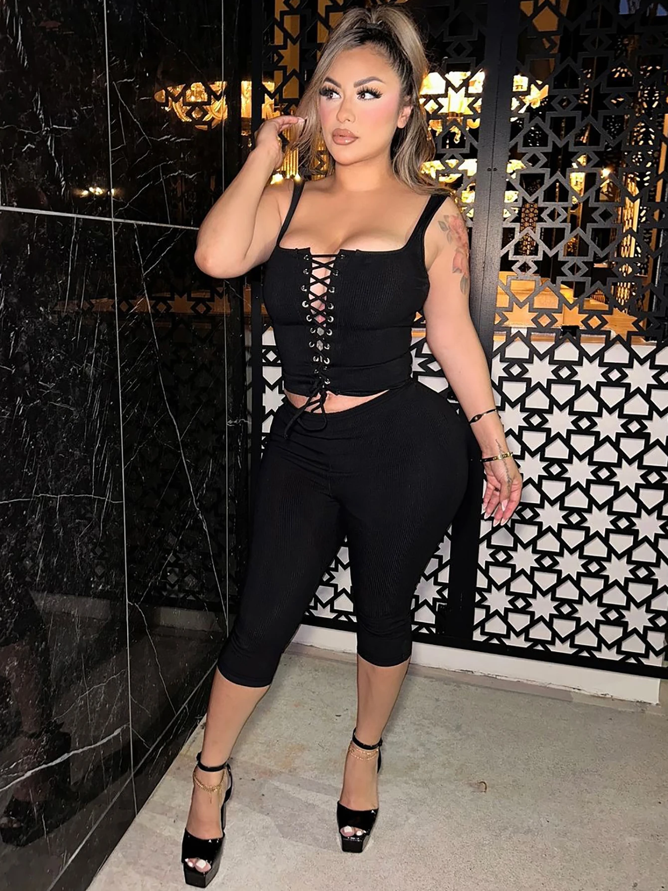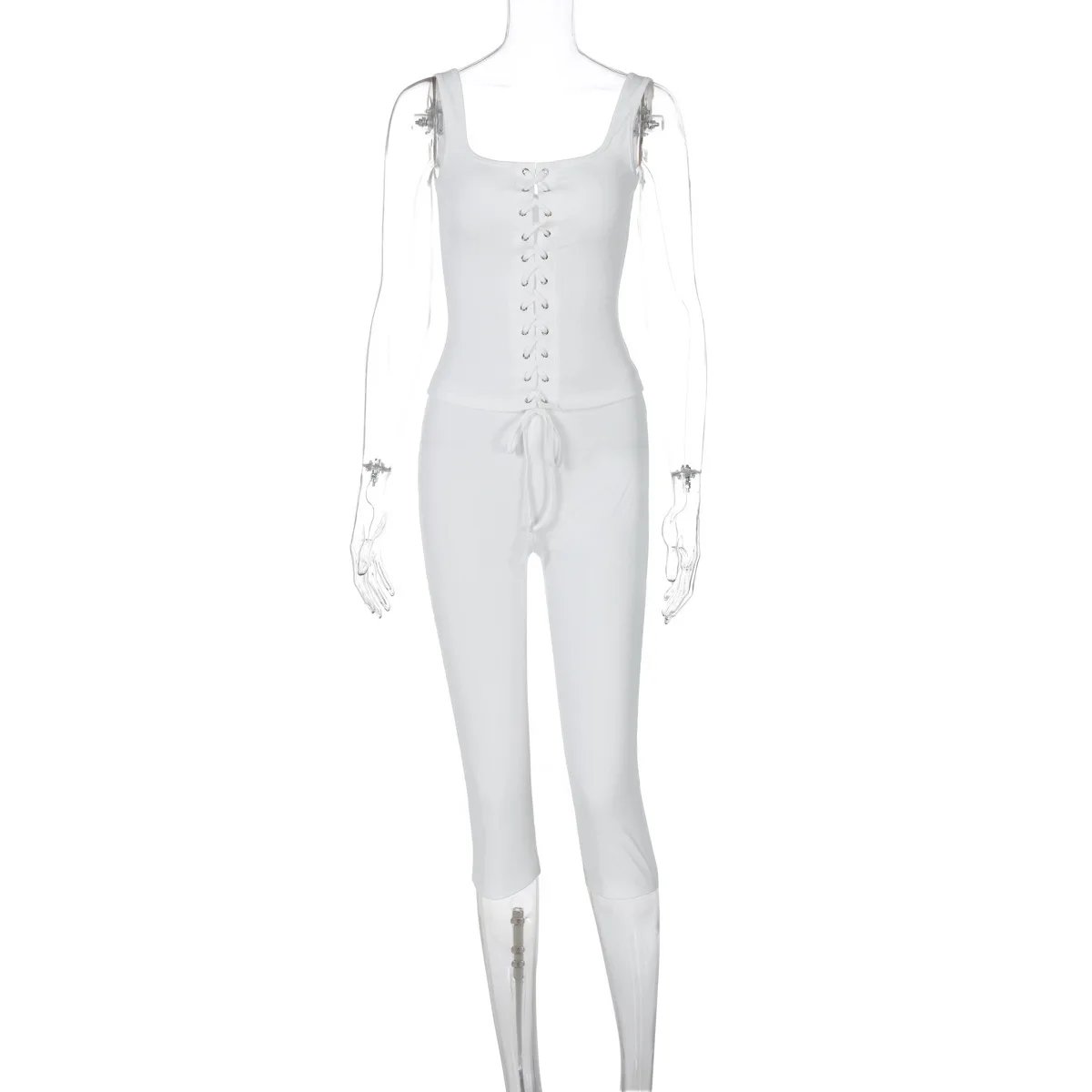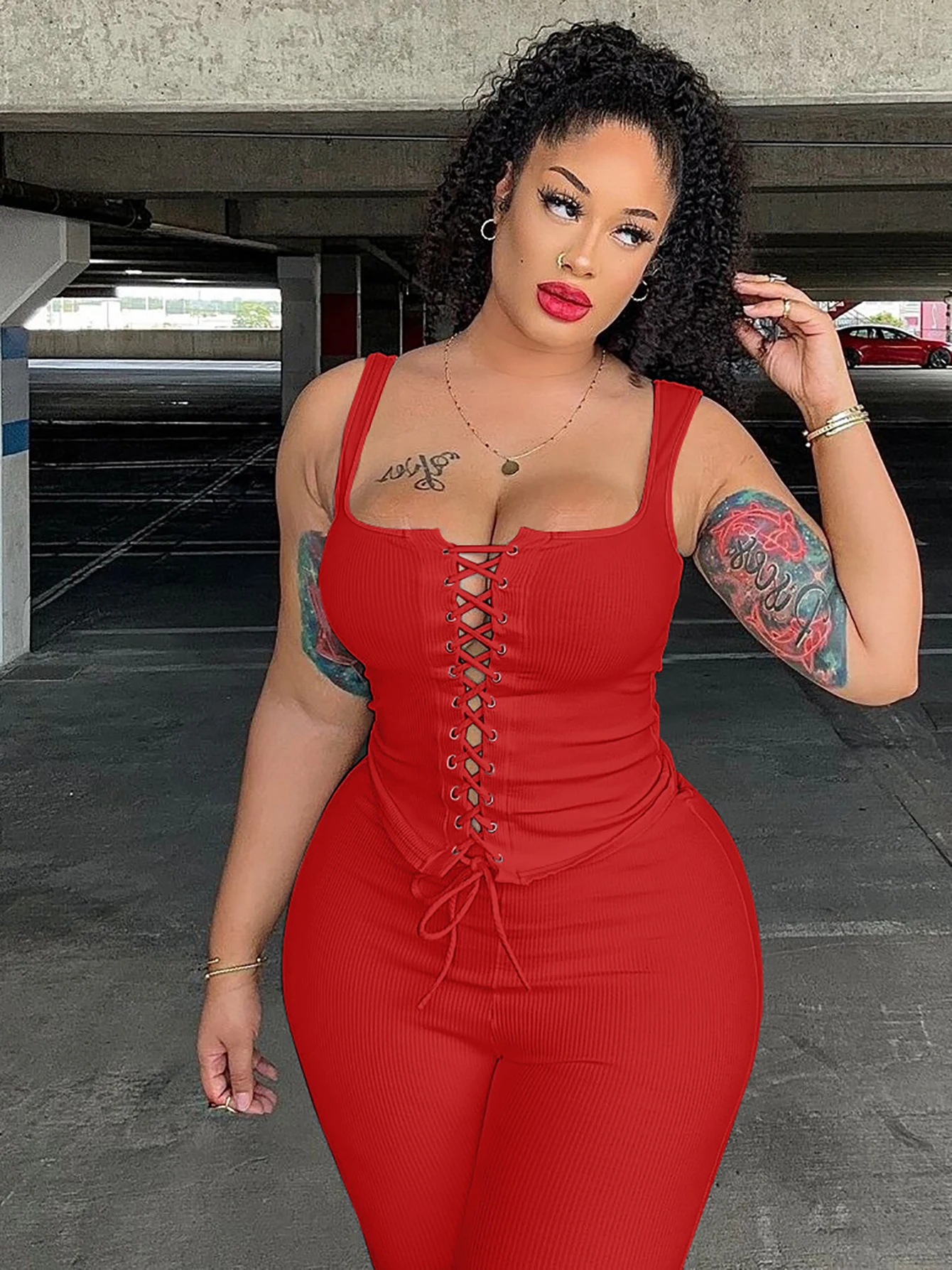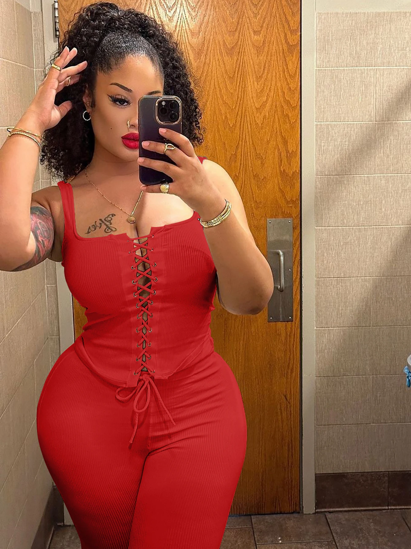 QueenLine 10pcs Shorts Suit Lace Up Vest Sleeveless Sexy Bulk Items Wholesale Lots 2 Piece Short Sets