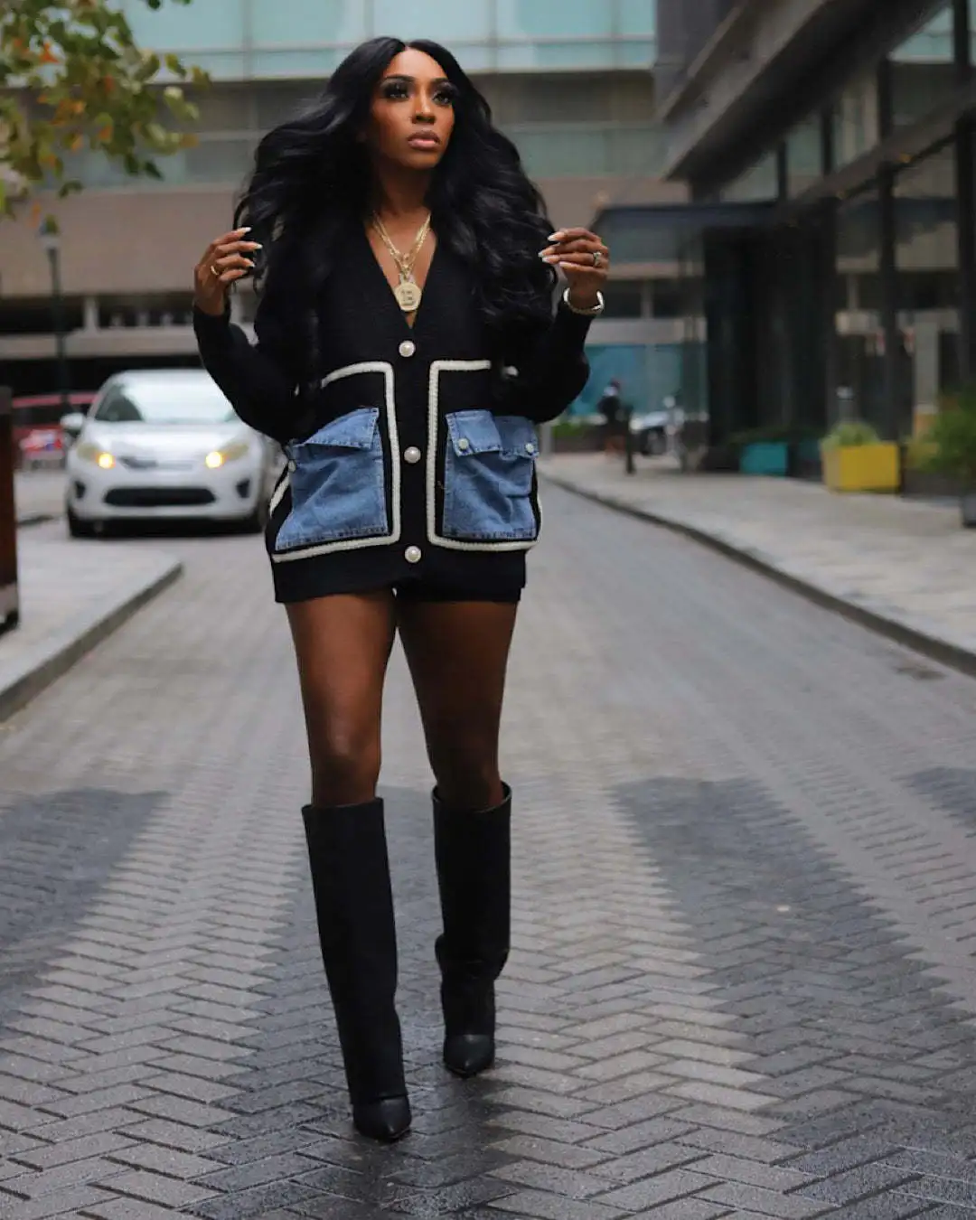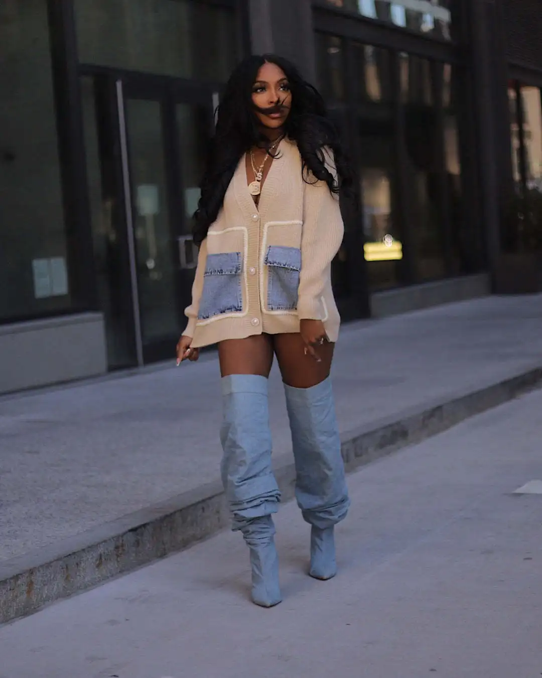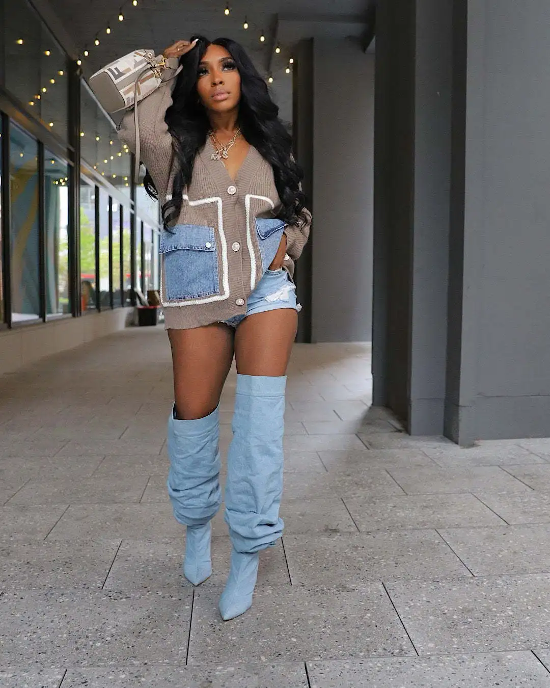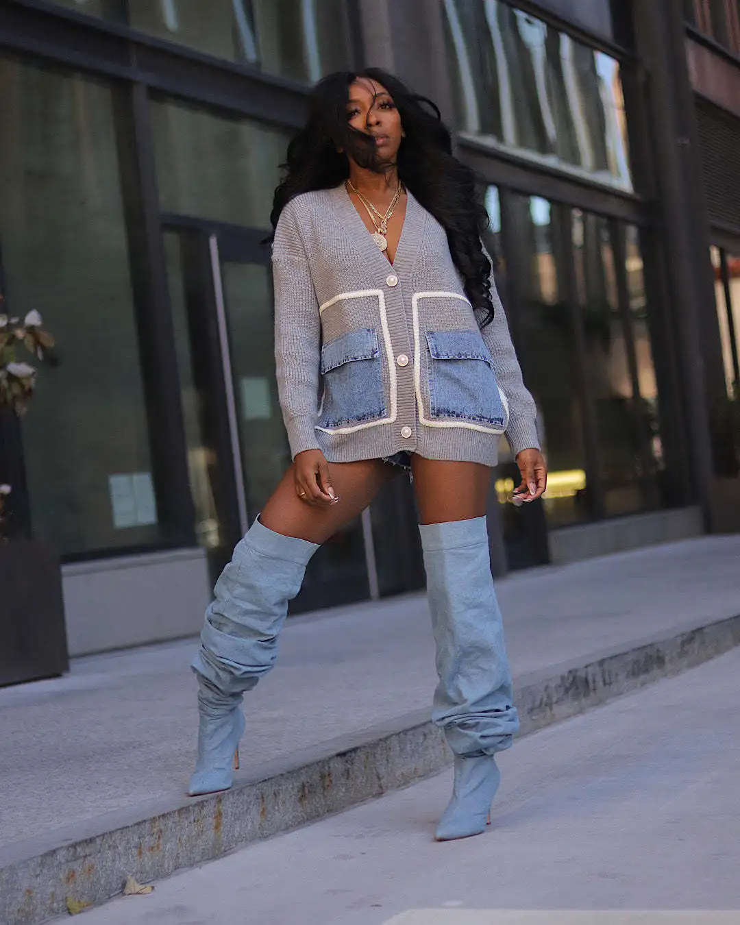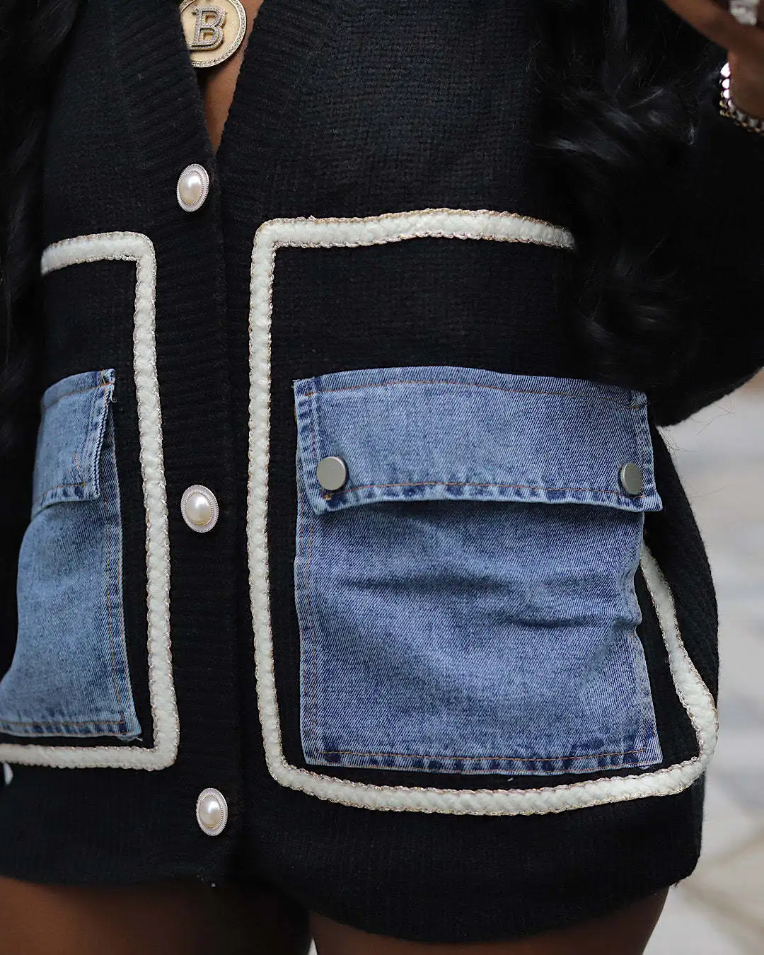 QueenLine 10pcs Sweaters Loose Patchwork Single Breasted Denim Knit Top Casual Y2k Wholesale Bulk Cardigan