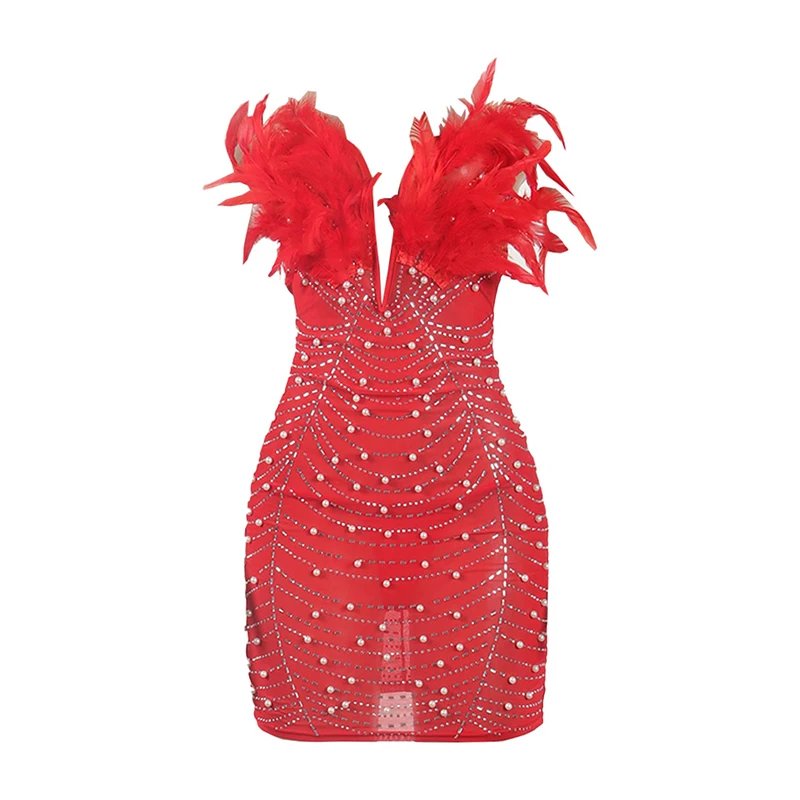 Dresses Length: Above Knee , MiniDecoration: Feathers