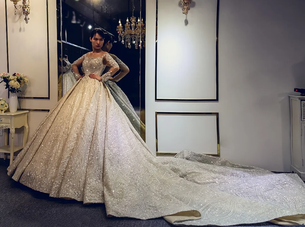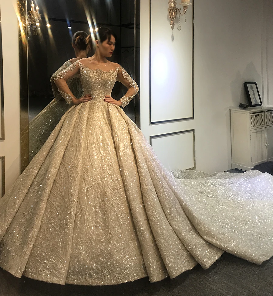 we promise you use the best quality fabrics to make your dress.High-end quality wedding dress !