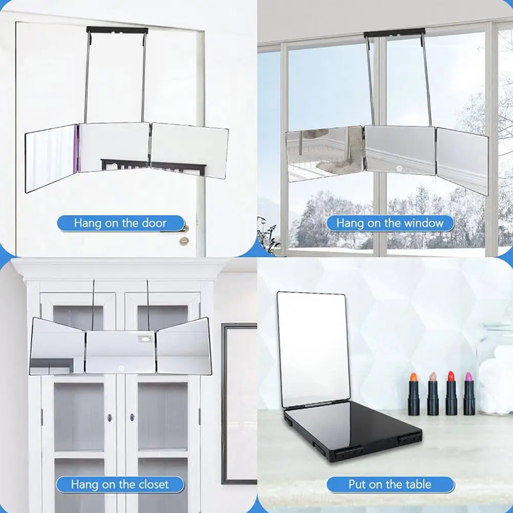 1、Wide Viewing Angle: With this trifold mirror, you can see all angles of your head and get the perfect DIY haircut every time.