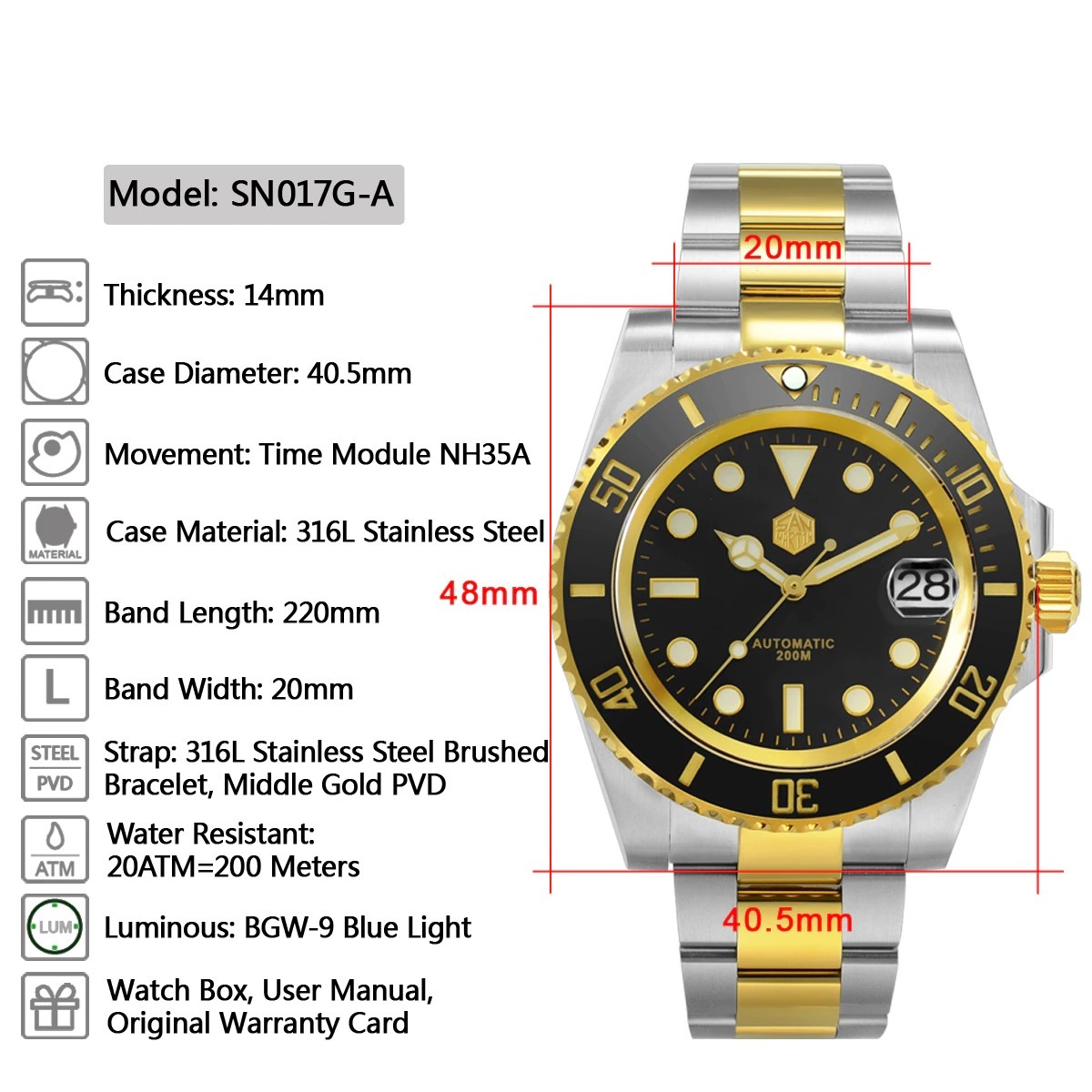 - Feature: Luminous,Complete Calendar,Diver,Water Resistant,Swim,luminous hands