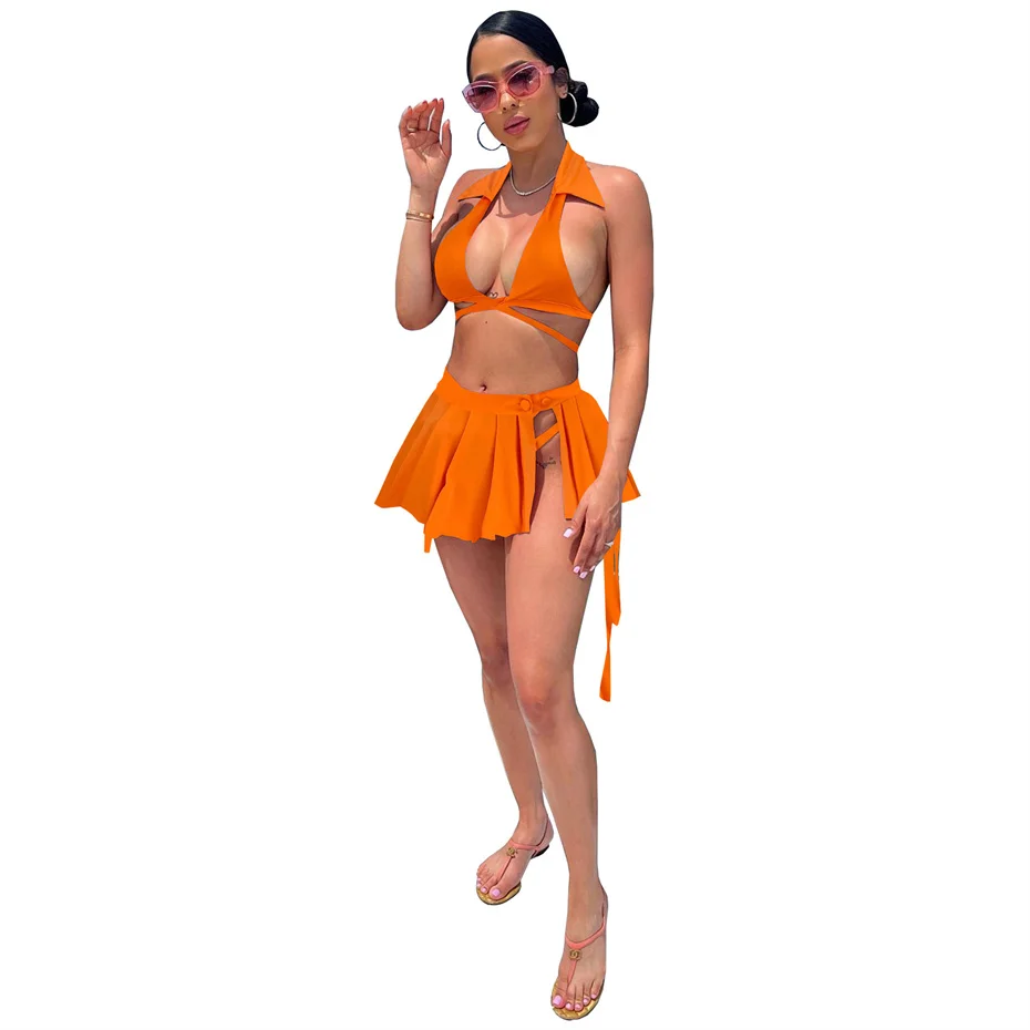 QueenLine 5PCS Bulk Items Wholesale Lots Bikini Top Briefs Pleated Skirt Beach Style Swimwear 3 Piece Set