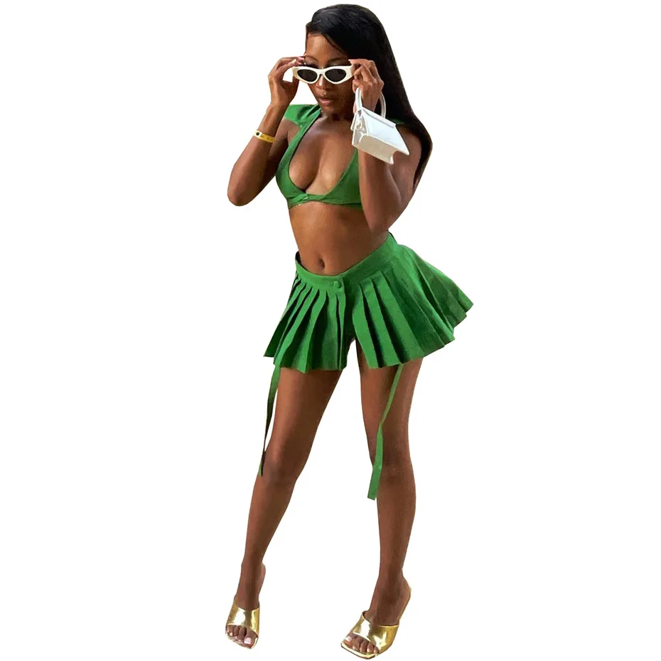 QueenLine 5PCS Bulk Items Wholesale Lots Bikini Top Briefs Pleated Skirt Beach Style Swimwear 3 Piece Set