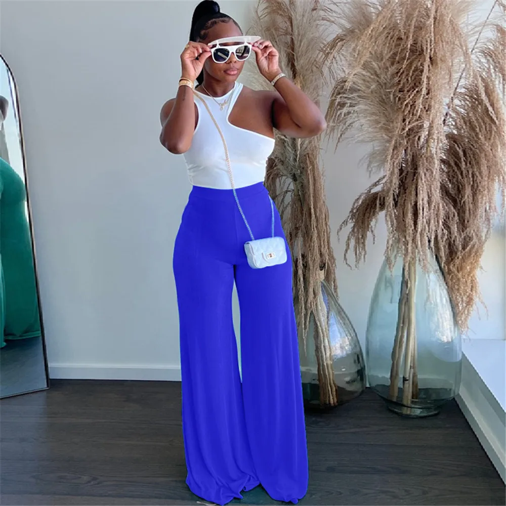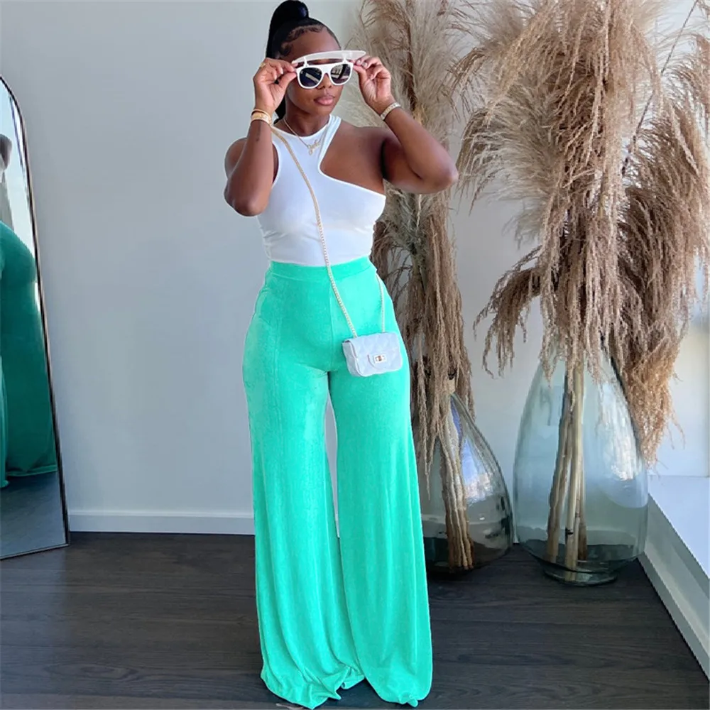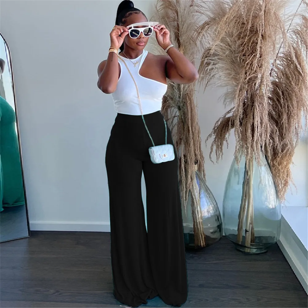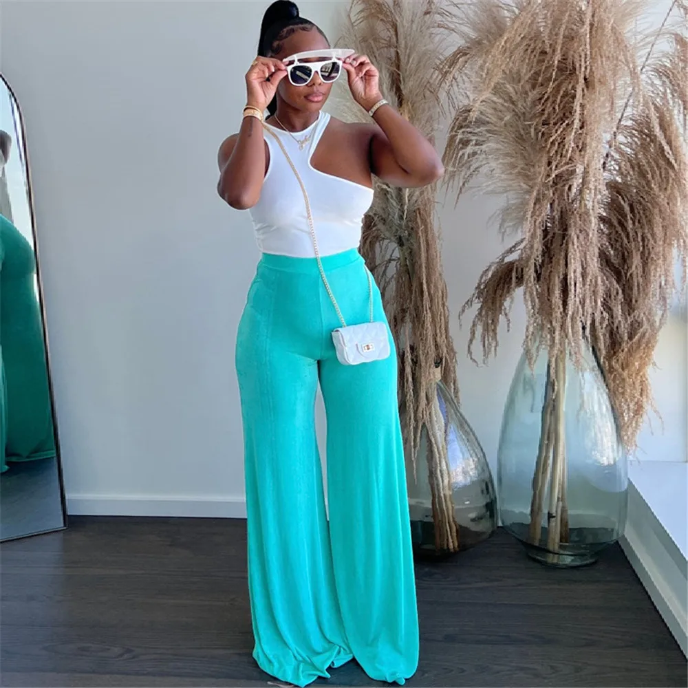 5Sets In Bulk Wholesale Women Pants Sets Sleeveless Vest Bodysuits Wide Leg Pants Outfits Summer Fashion Ladies Clothes Set 8071