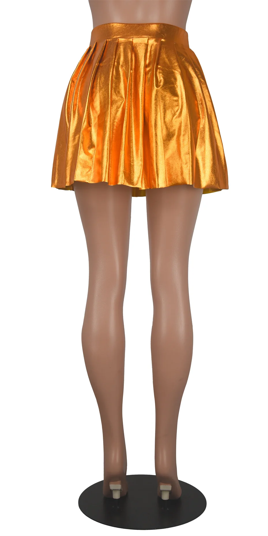 QueenLine 5PCS Wholesale Bulk Items lots Sexy Ice Silk Hot Gold Pleated Solid Color Mini Skirt
