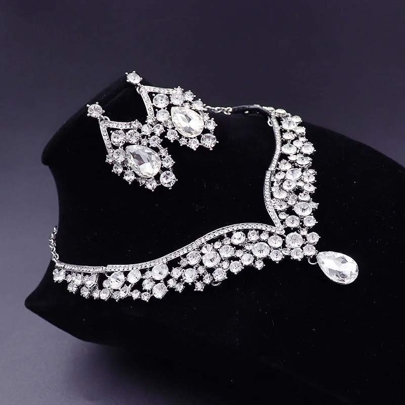 Banquet Party Crystal Bridal Jewelry Sets Crown Necklace Earrings Weddings Sets for Women Luxury Tiaras Necklace Sets Fashion