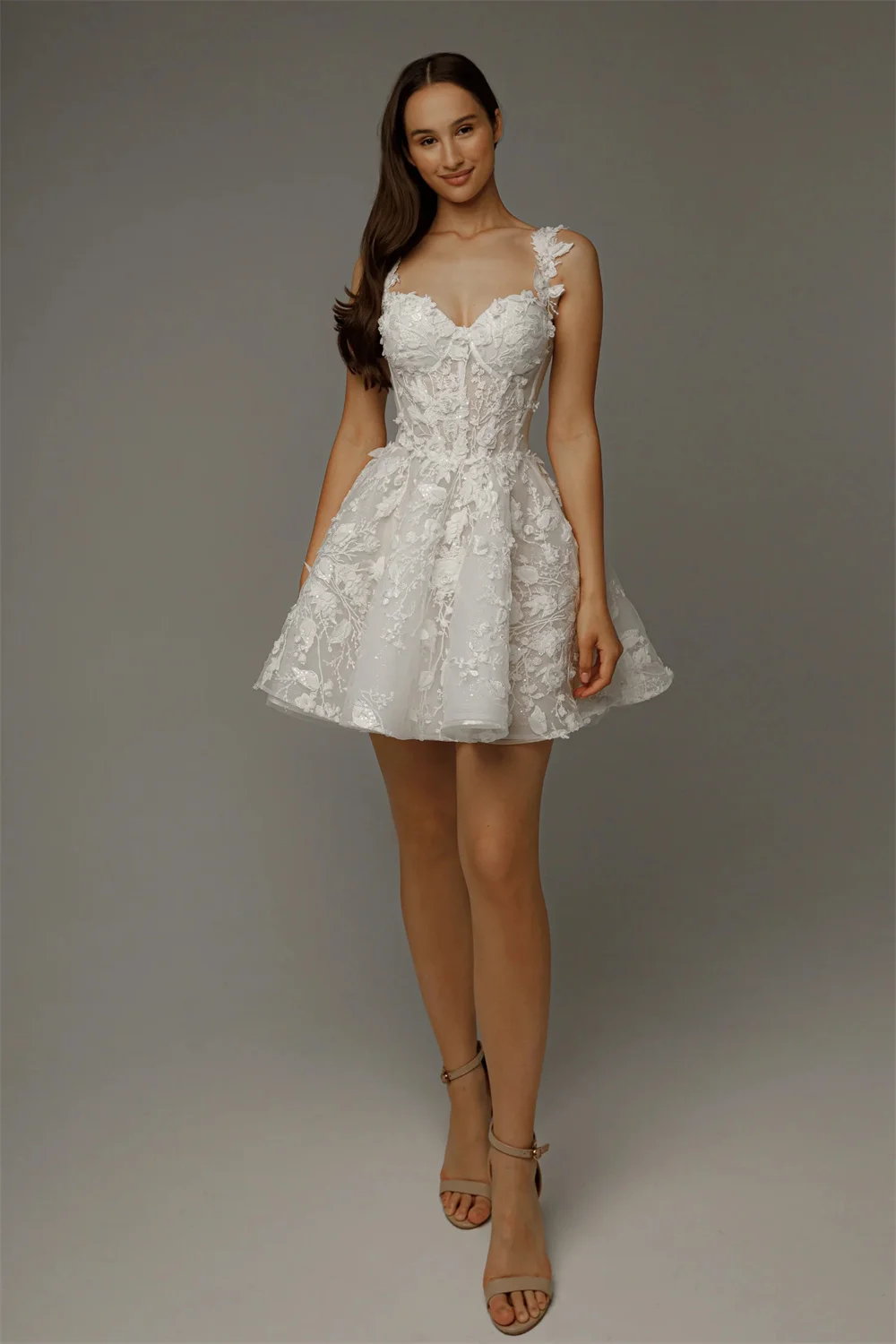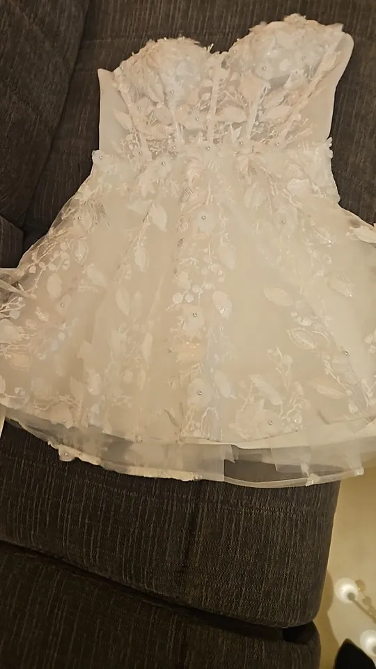 QueenLine Beautiful Two Straps Sweethat Full 3d Flower Lace Appllque Short/Mini Custom Made Wedding Dress