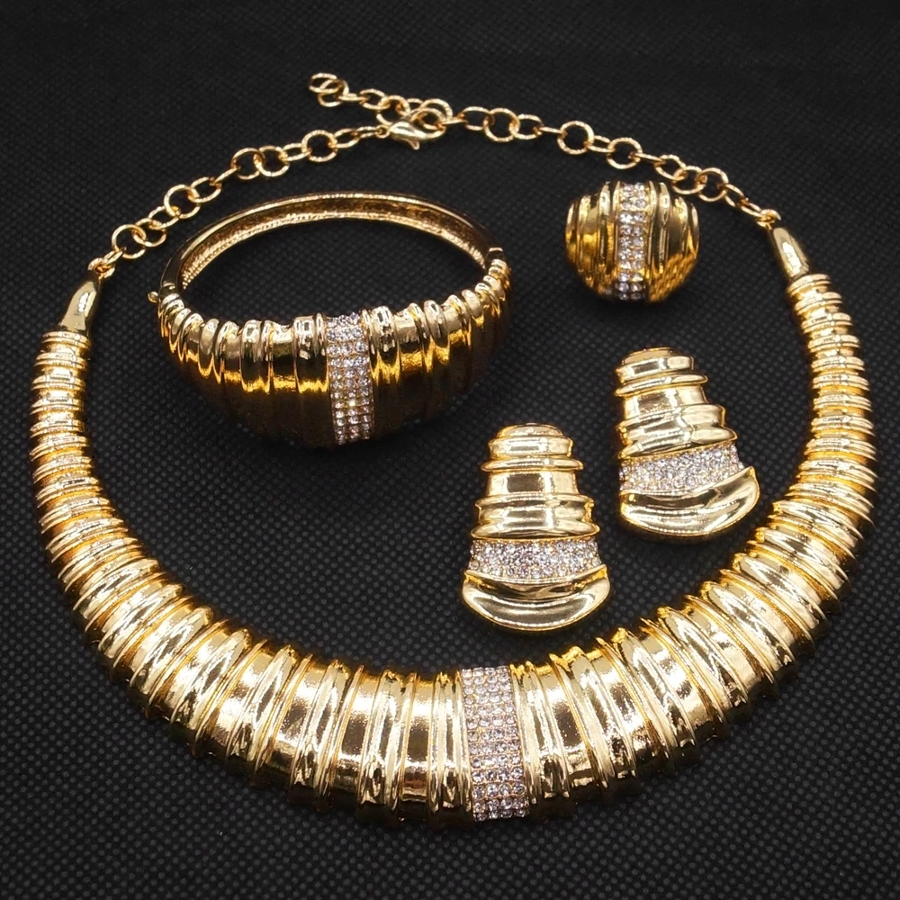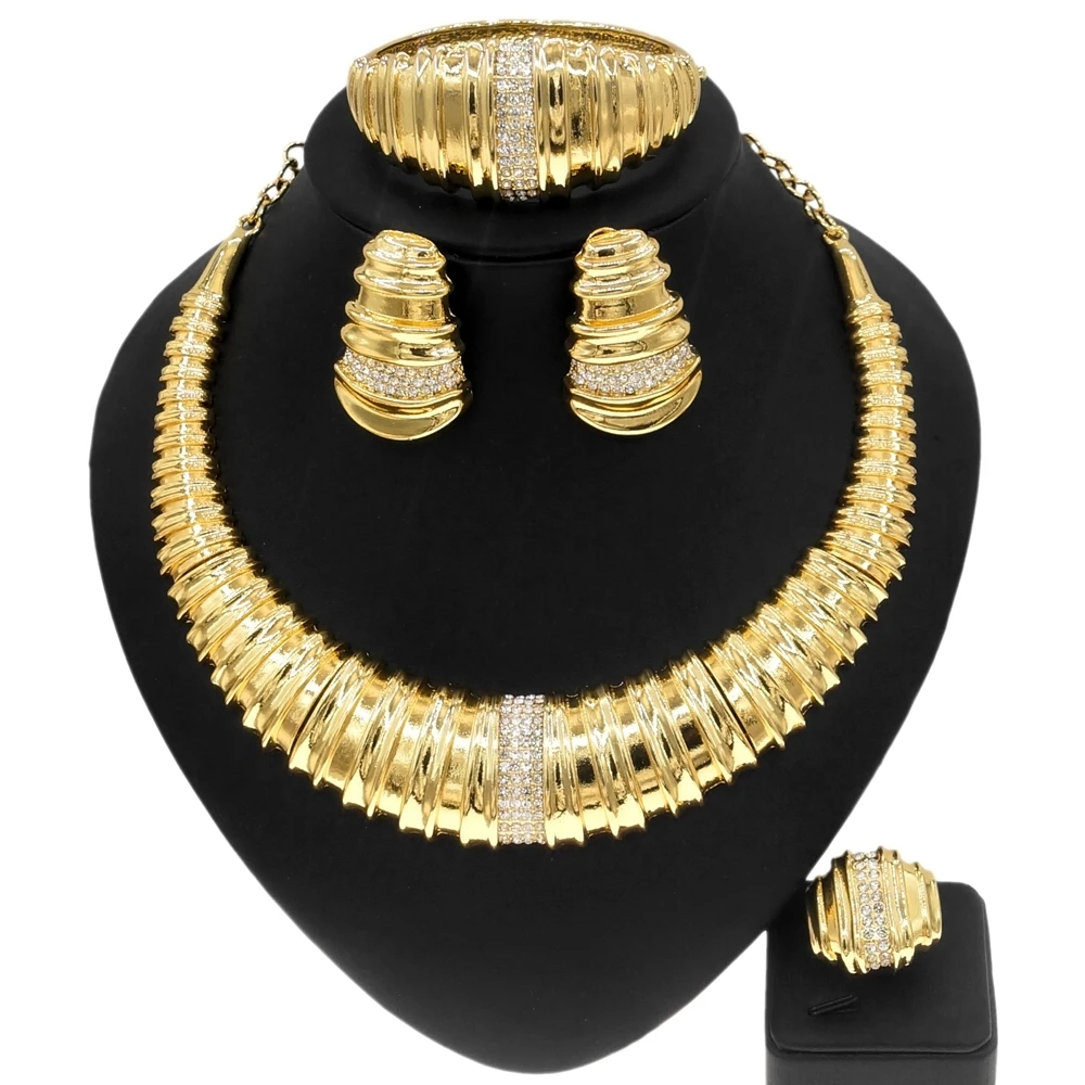 - Name: Hot Sale Brand New Italian Gold Jewelry Set Exquisite Large Style Necklace set Luxury Wedding Dinner Jewelry Set H0018