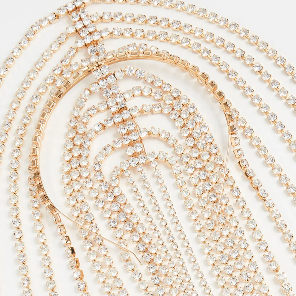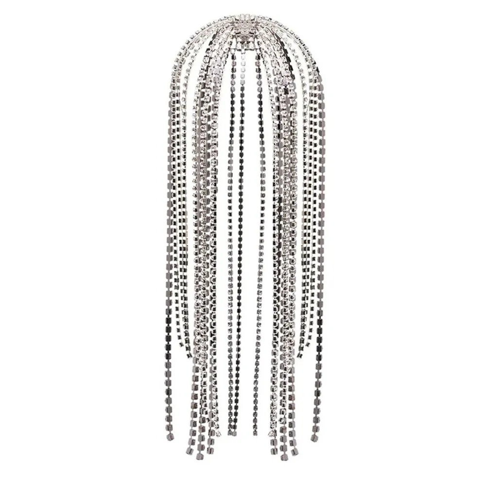 QueenLine Bridal Headband Rhinestone Long tassel Hair Chain Accessories for Women Bling Crystal Multi Strand Head Chain Hair Jewelry