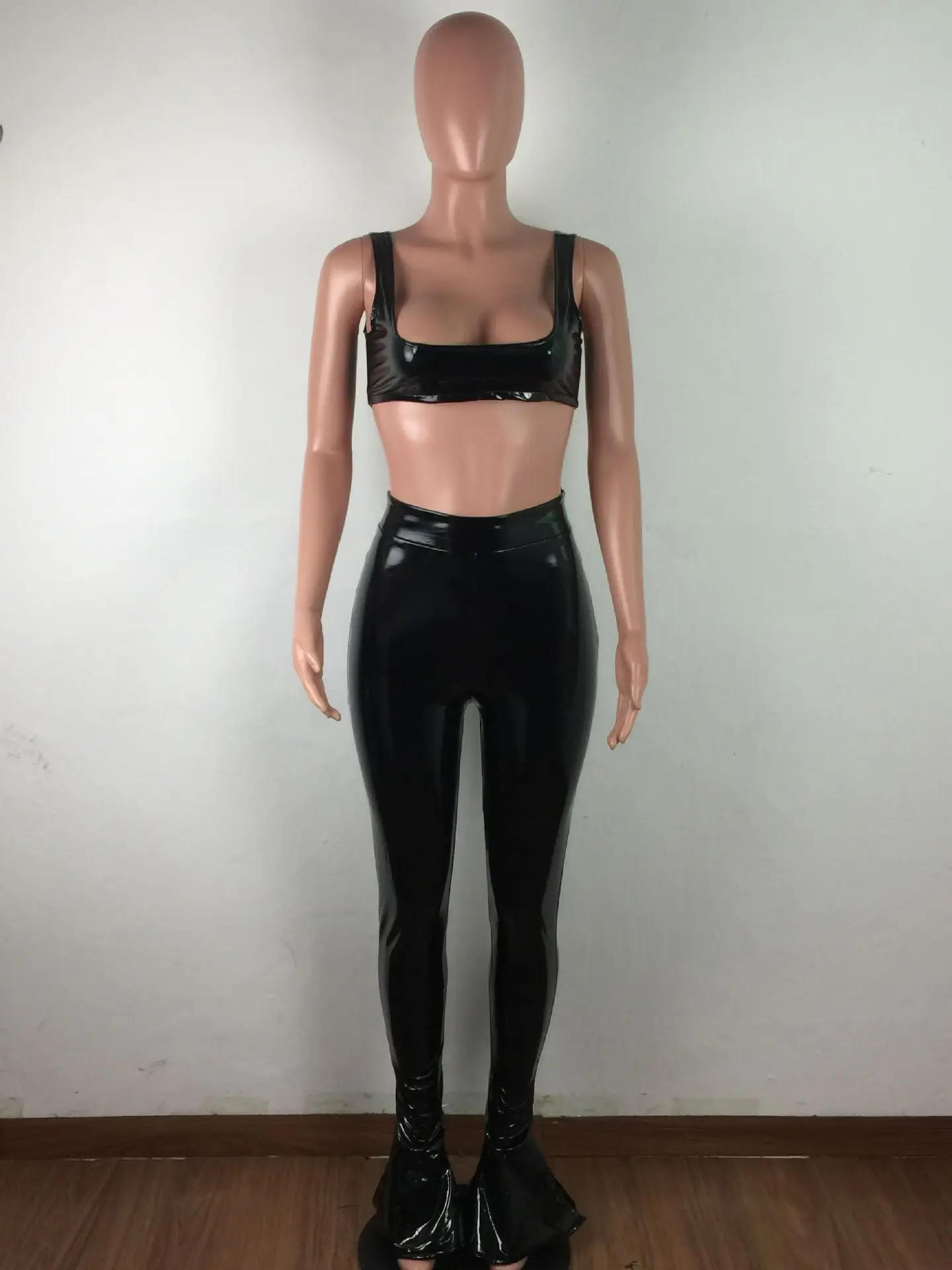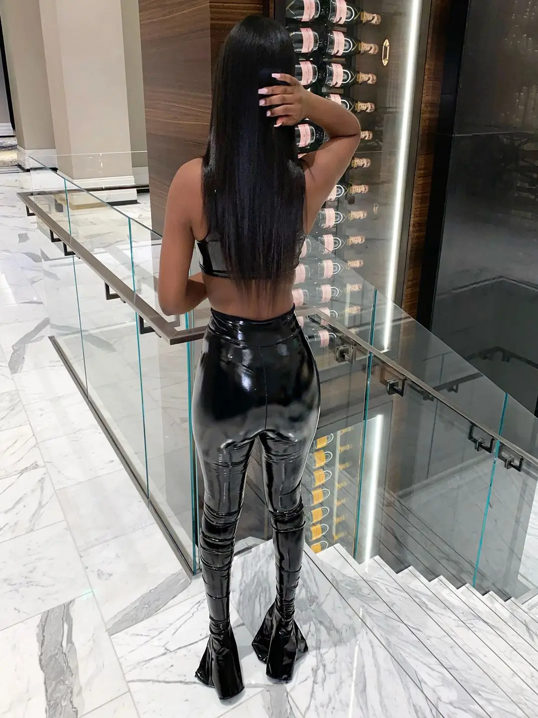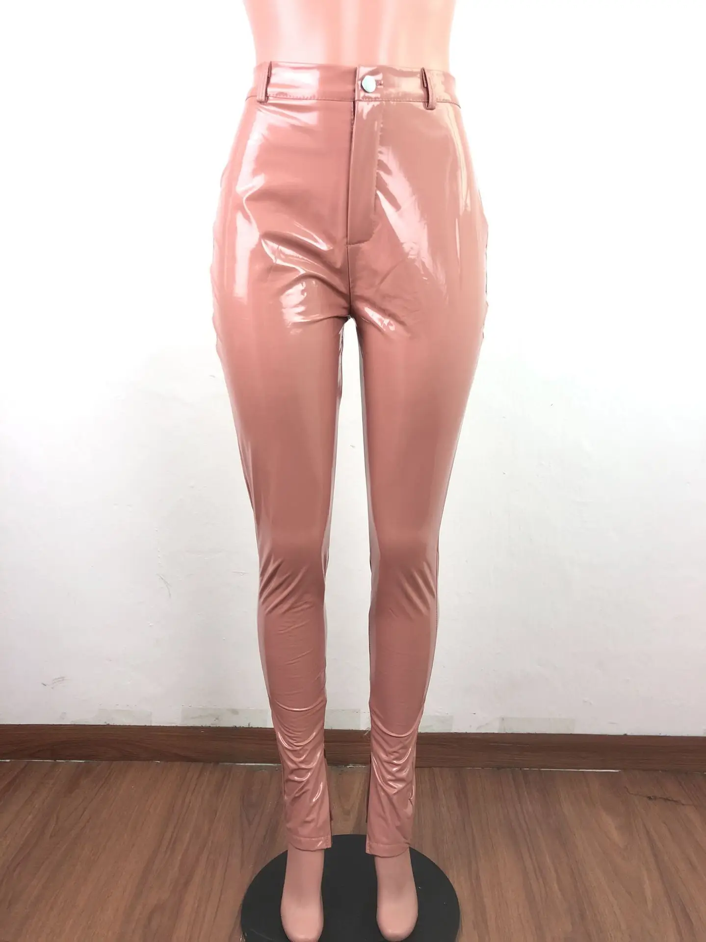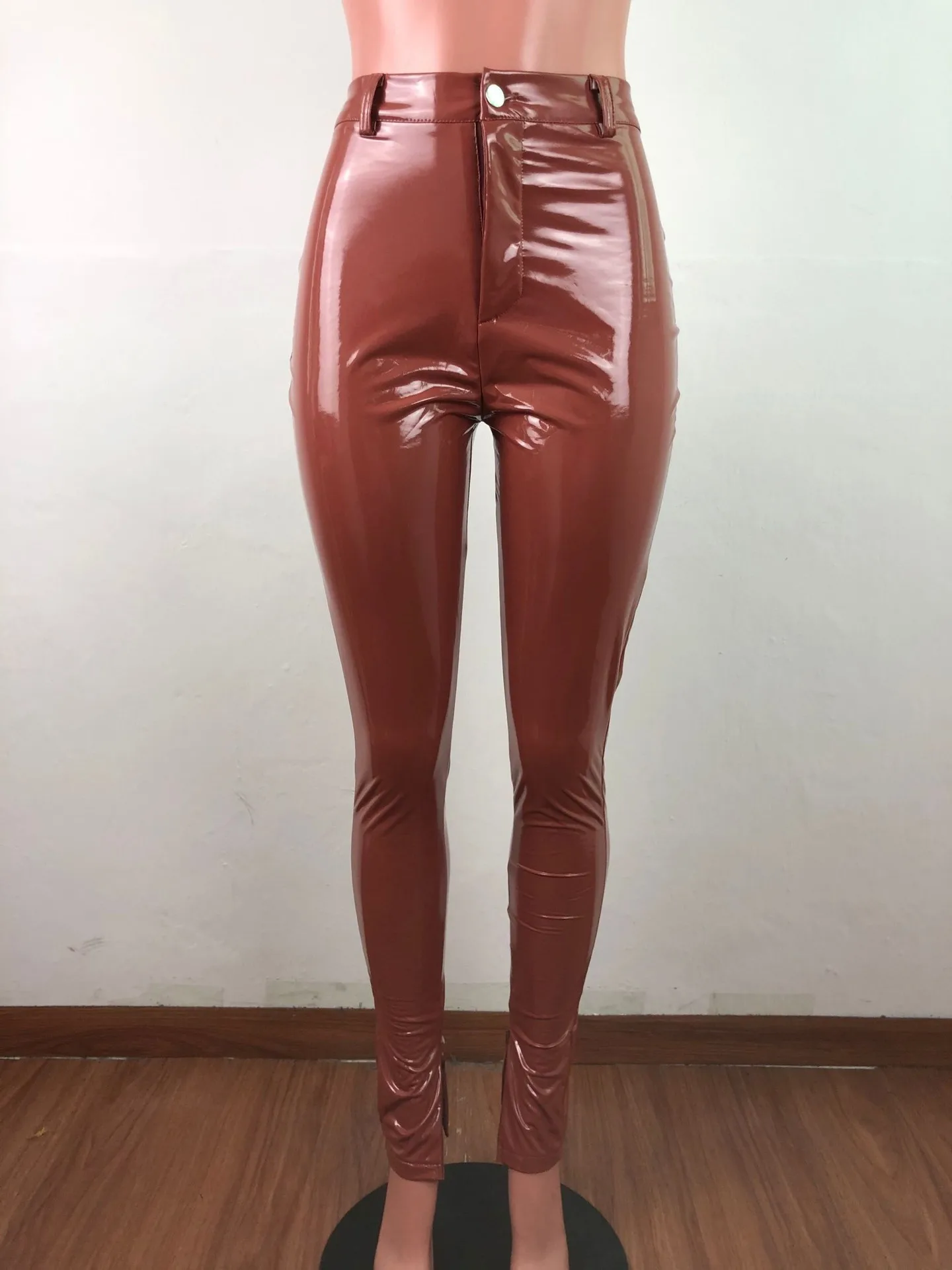 - Glossy PU Leather Trousers: Slit Bottom Glossy PU Leather Trousers