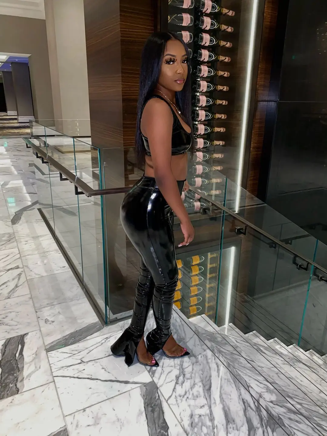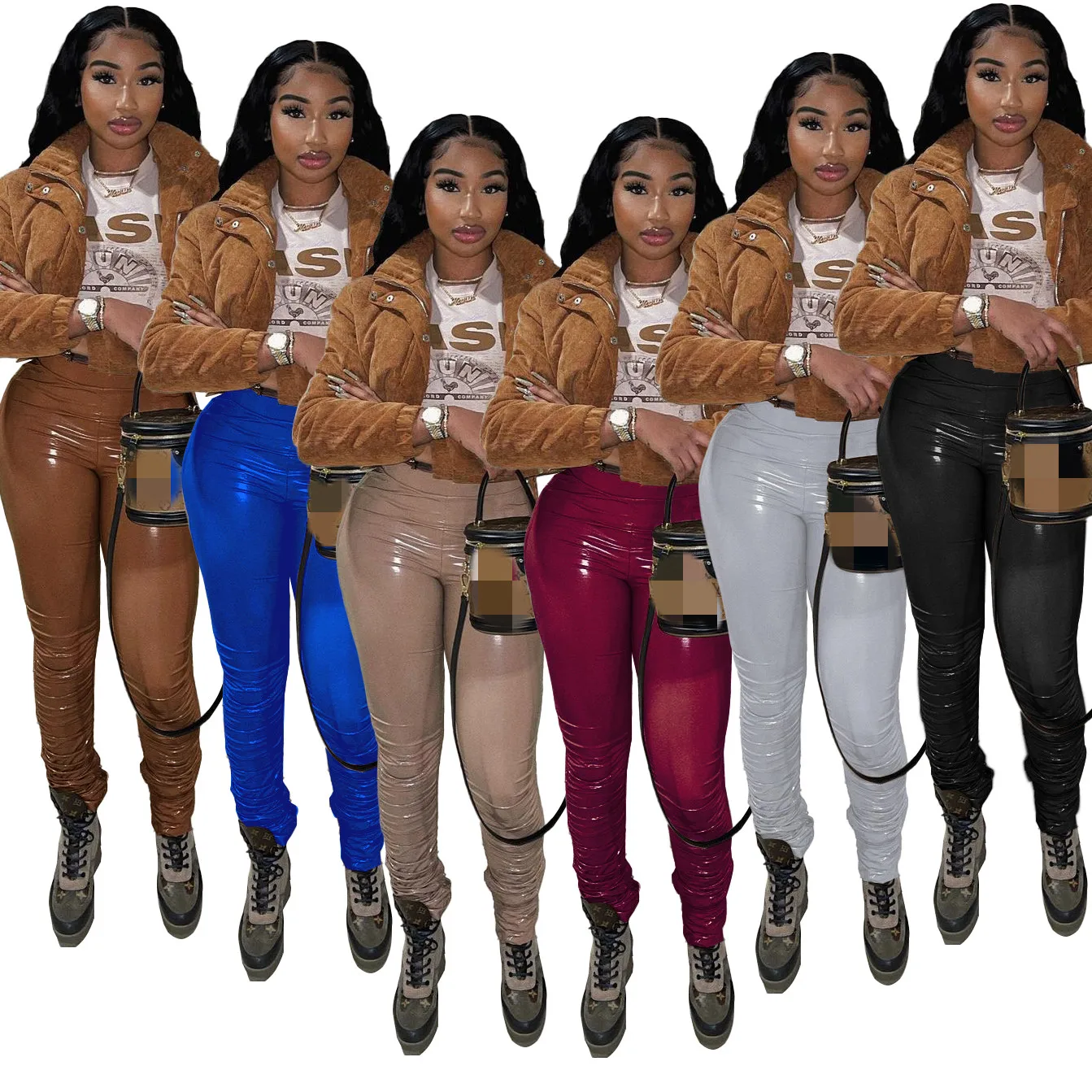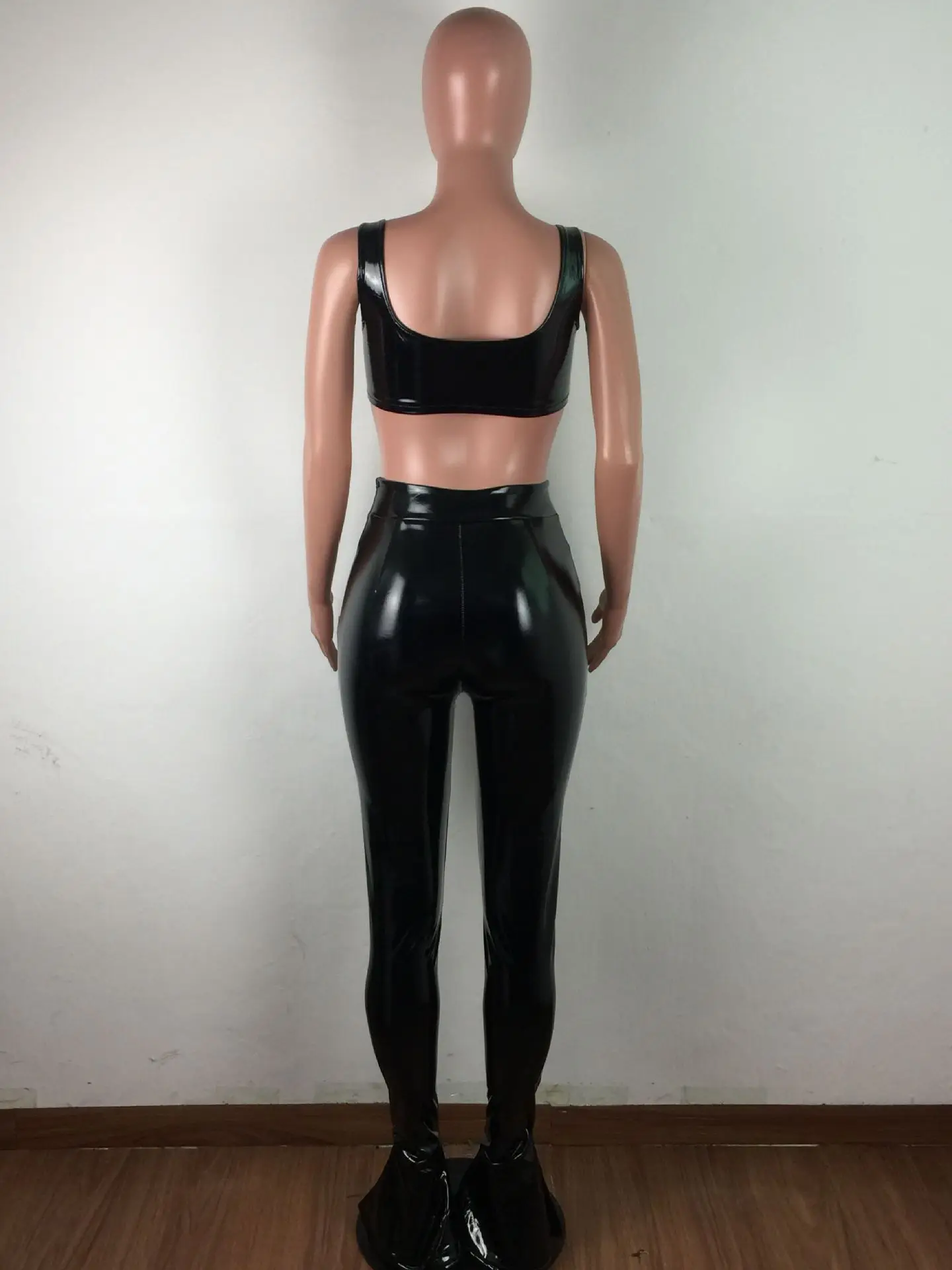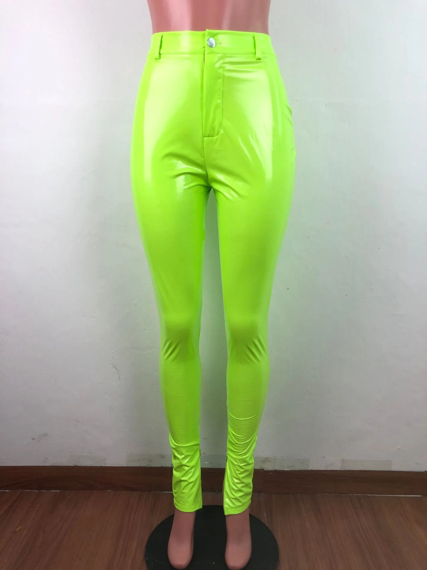 - Glossy PU Leather Trousers: Slit Bottom Glossy PU Leather Trousers