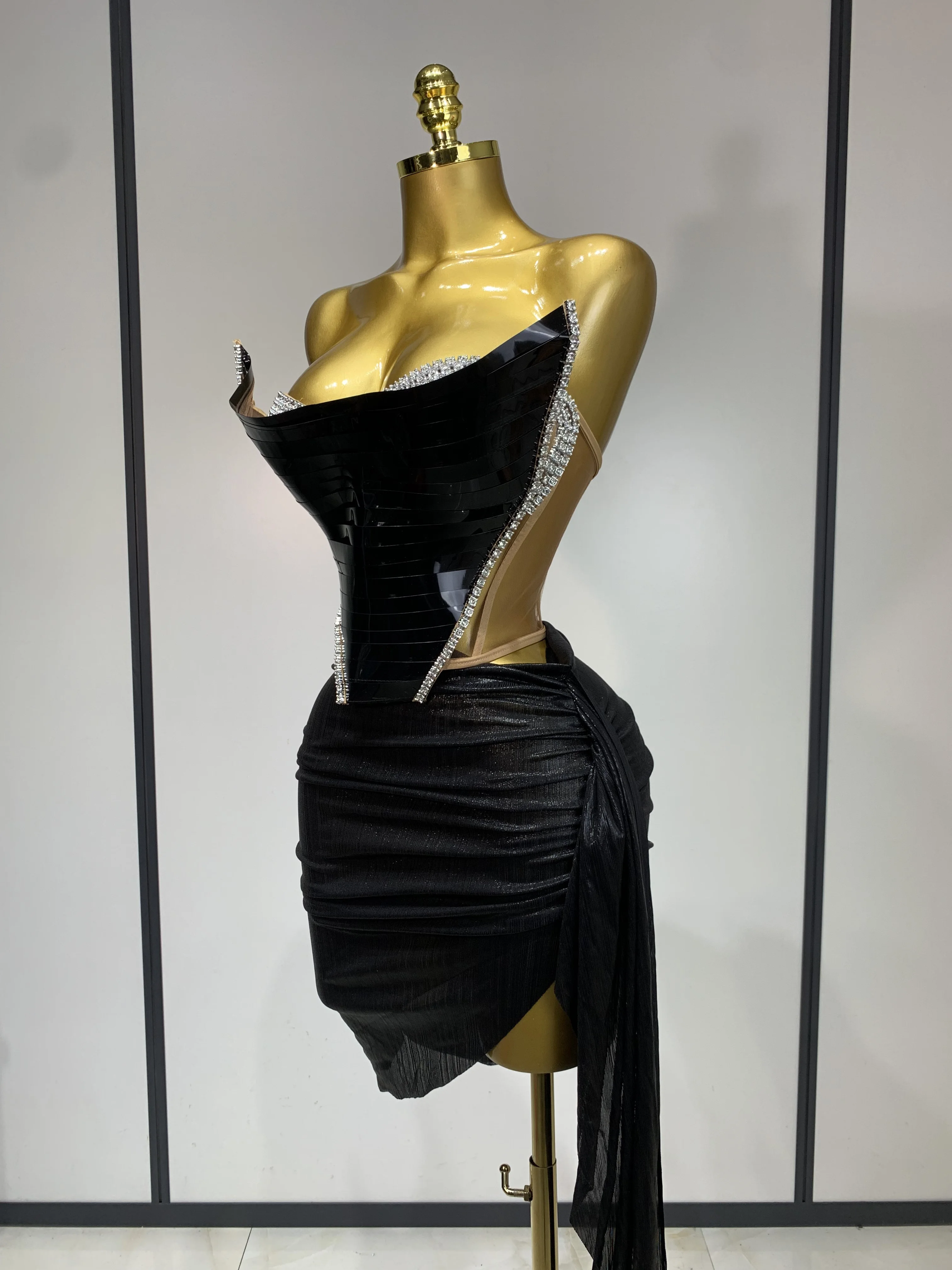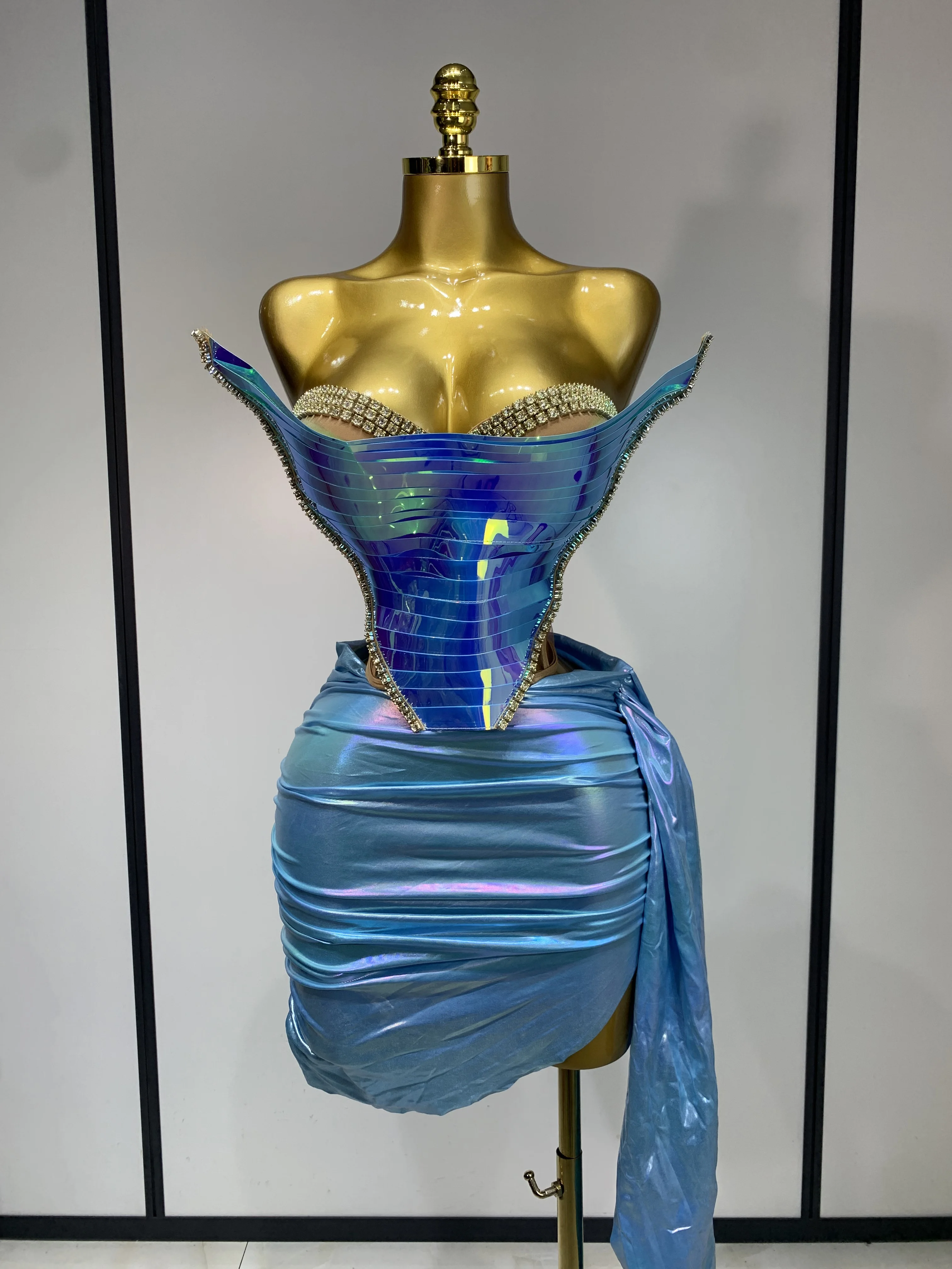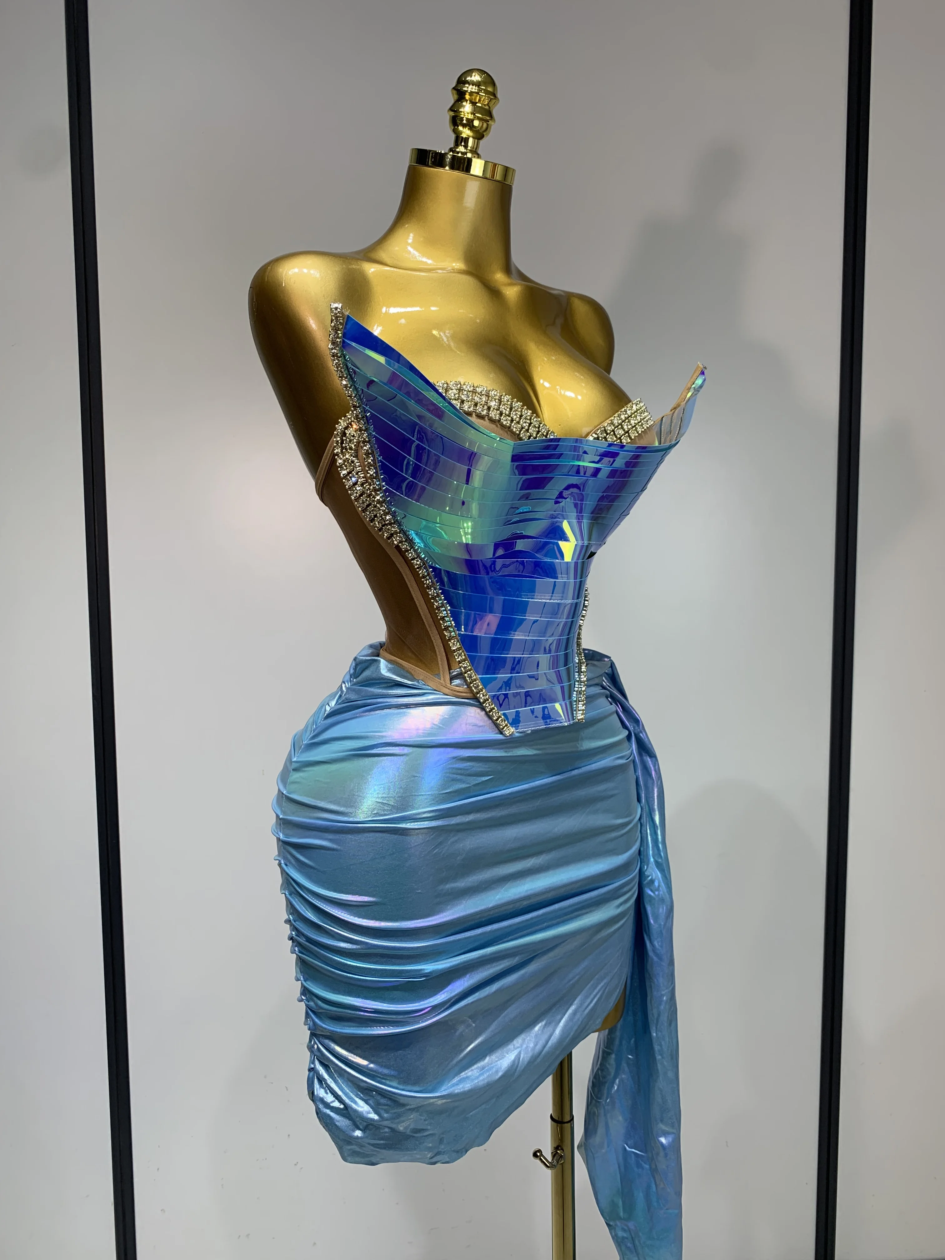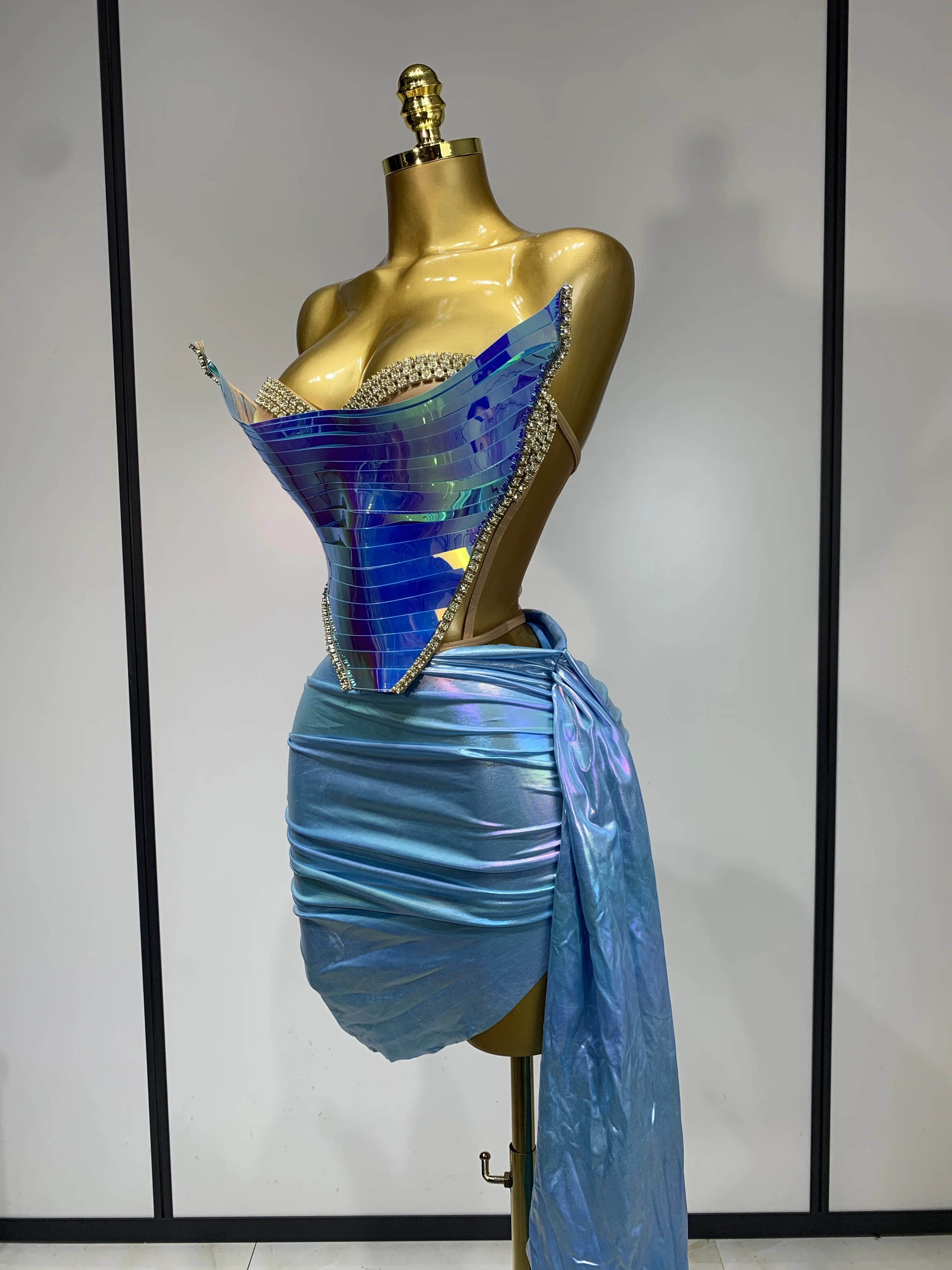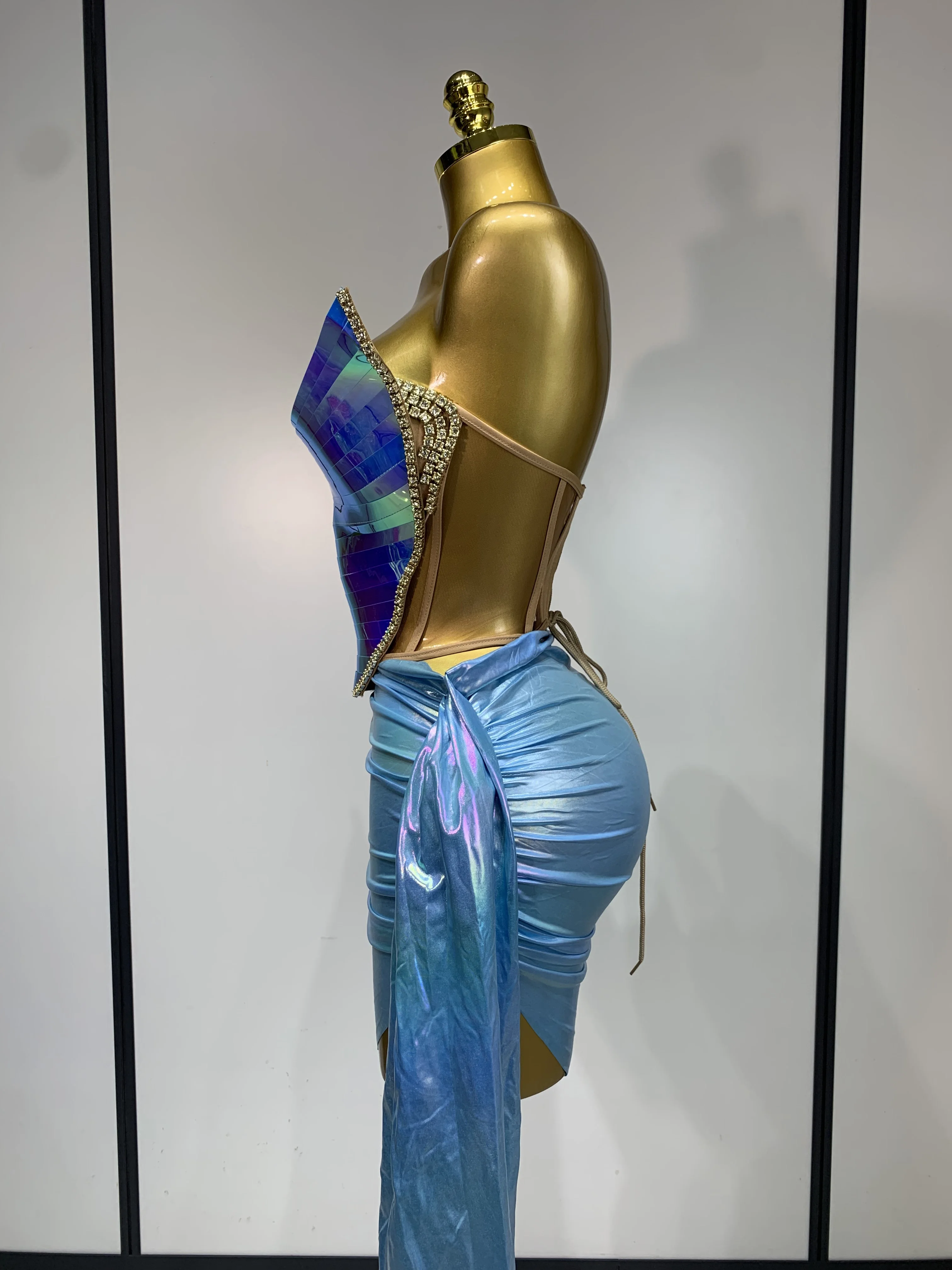 QueenLine Celebrity Elegant Celebrate Birthday Sparkly Sexy Top Two Pieces Short Skirt Set
