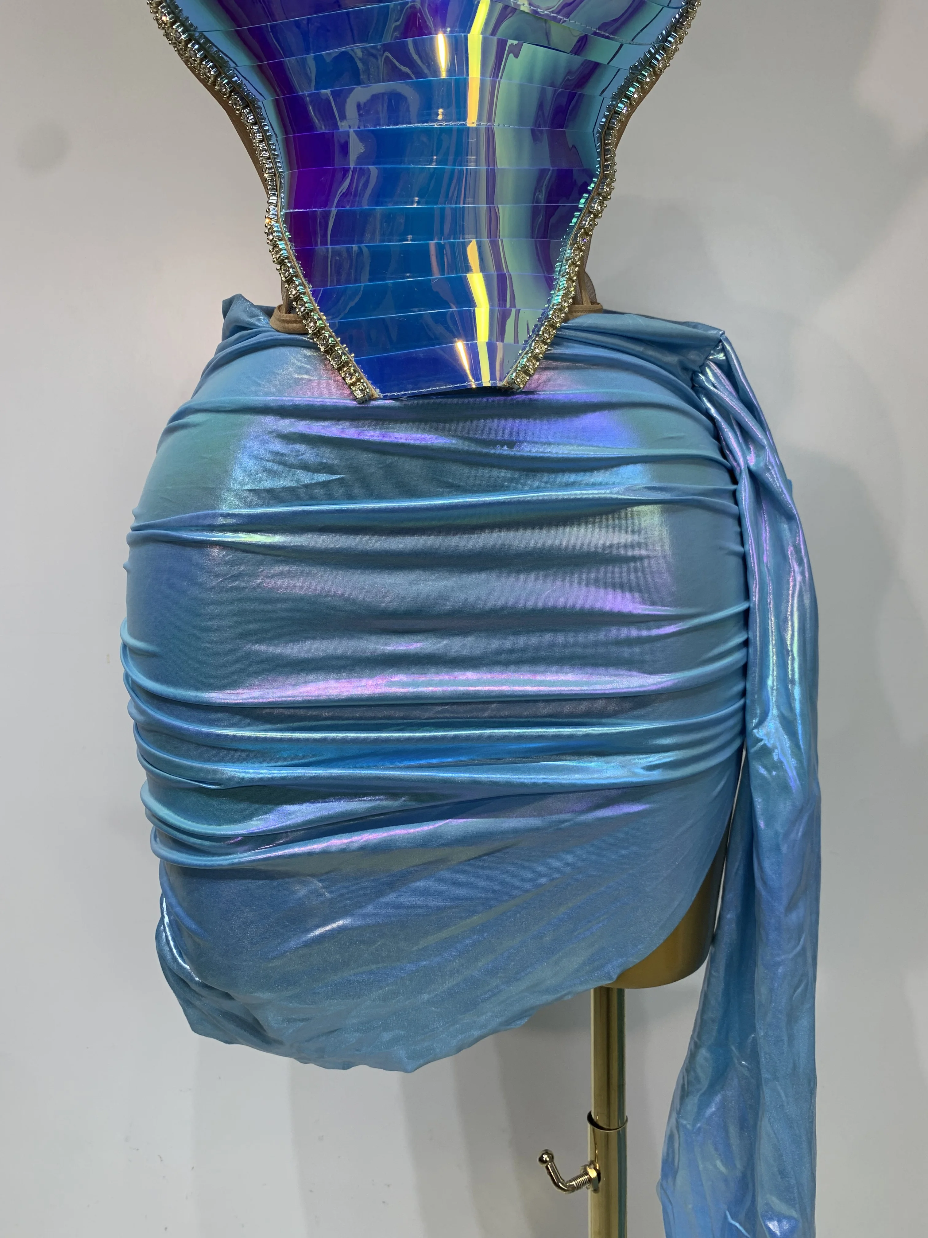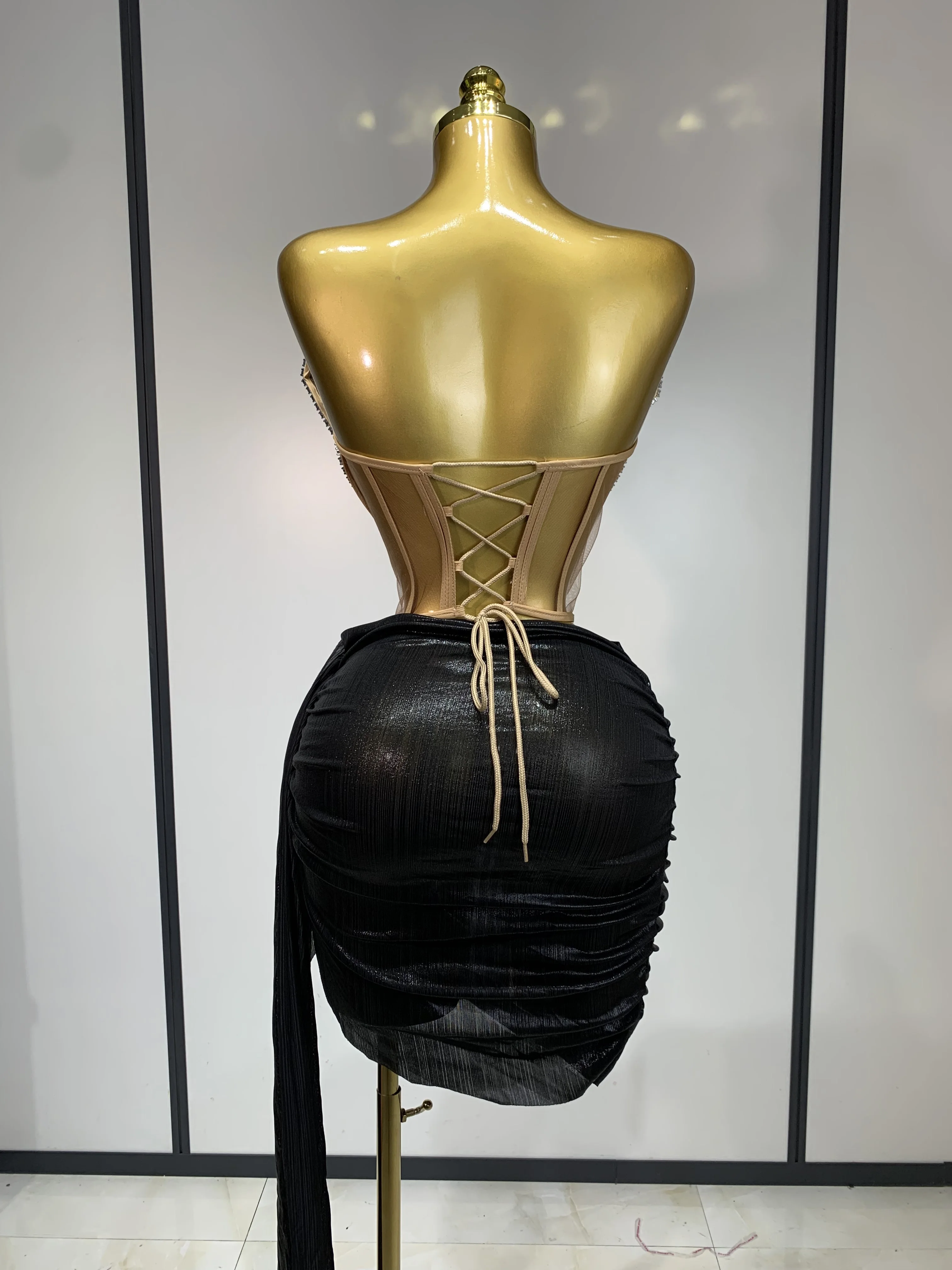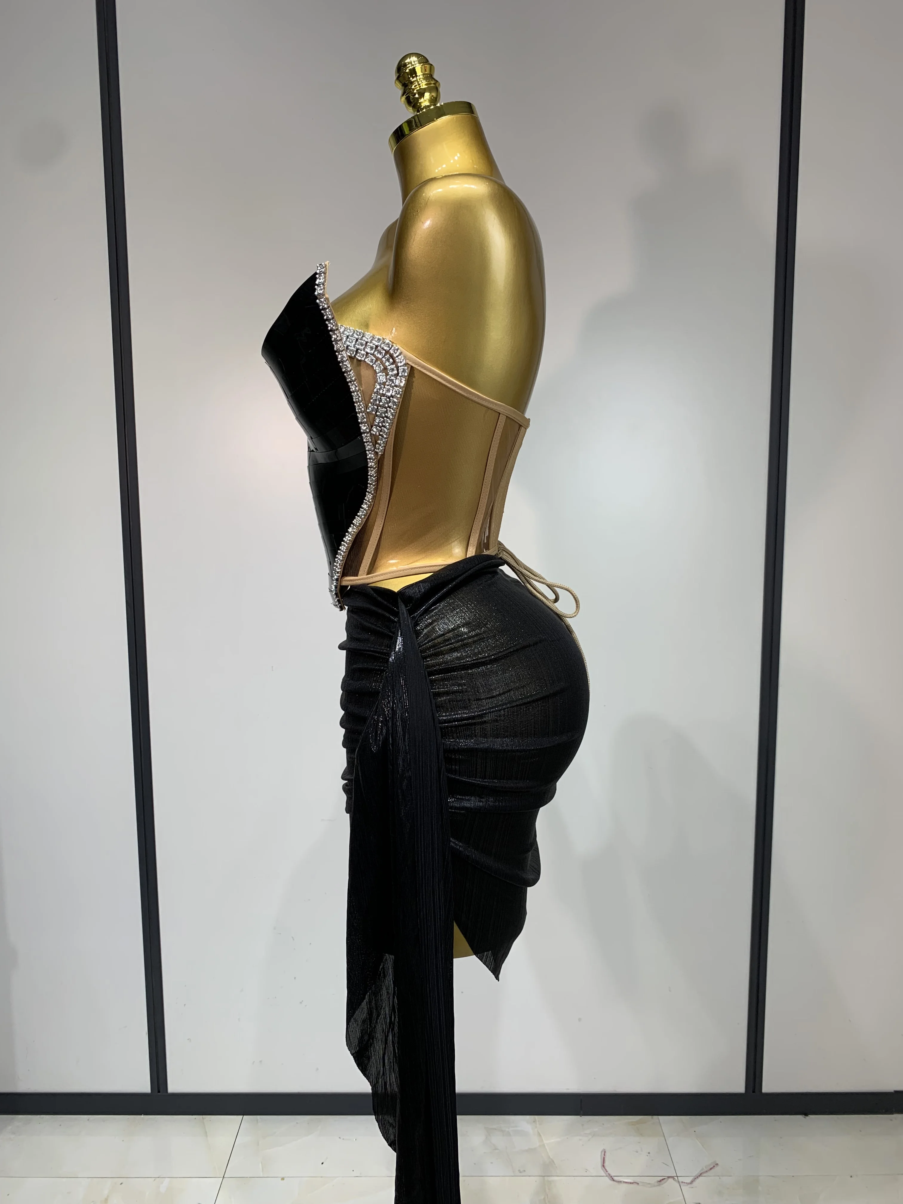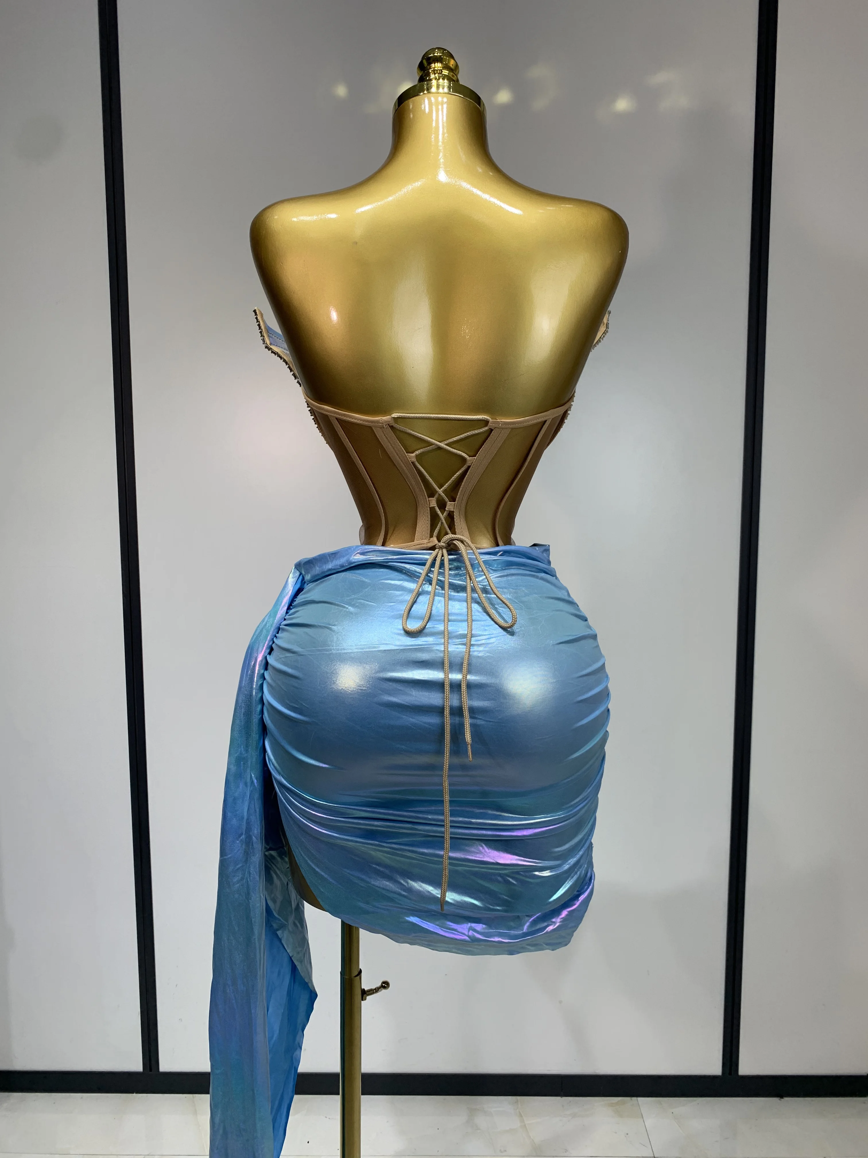 QueenLine Celebrity Elegant Celebrate Birthday Sparkly Sexy Top Two Pieces Short Skirt Set
