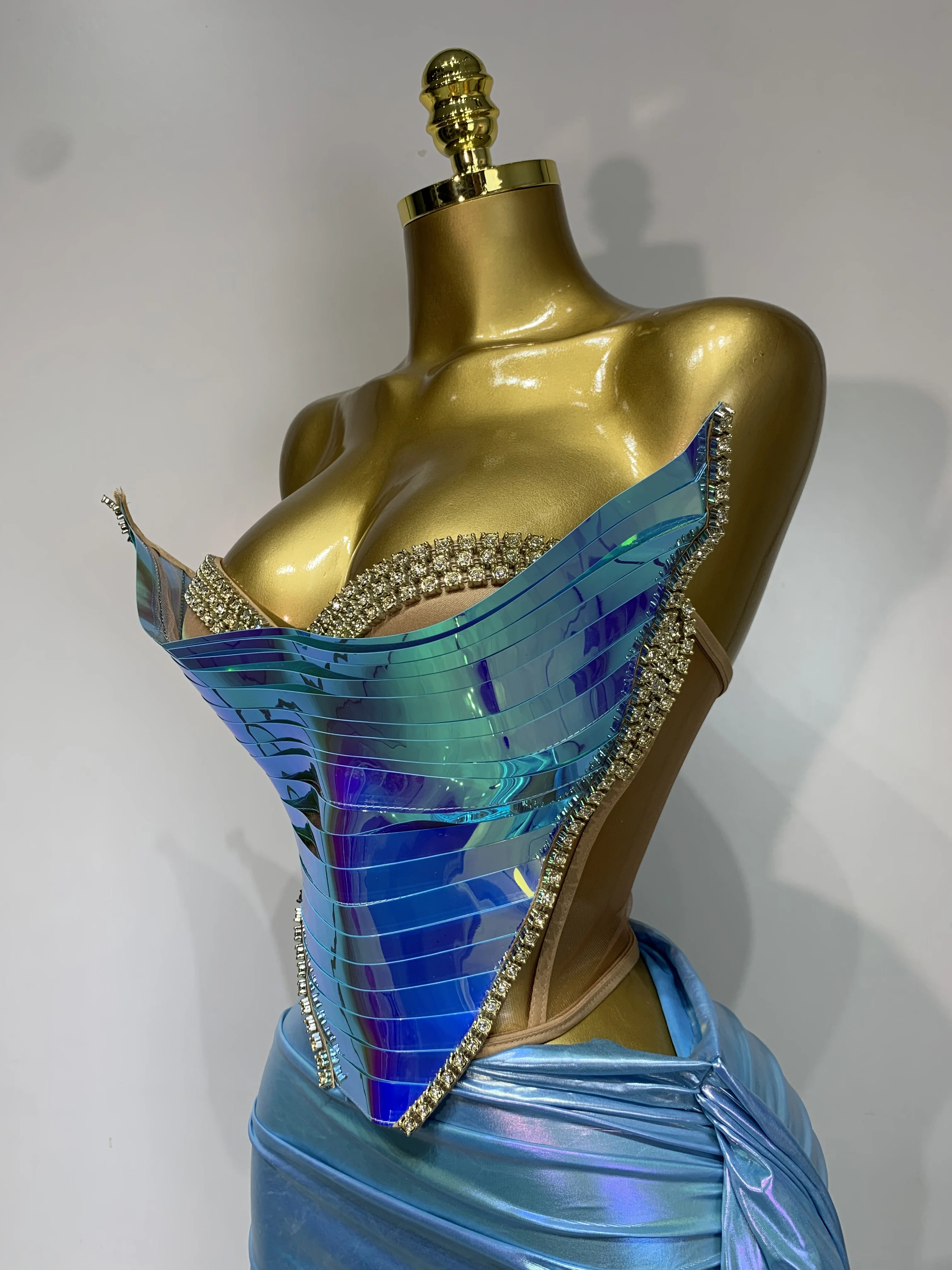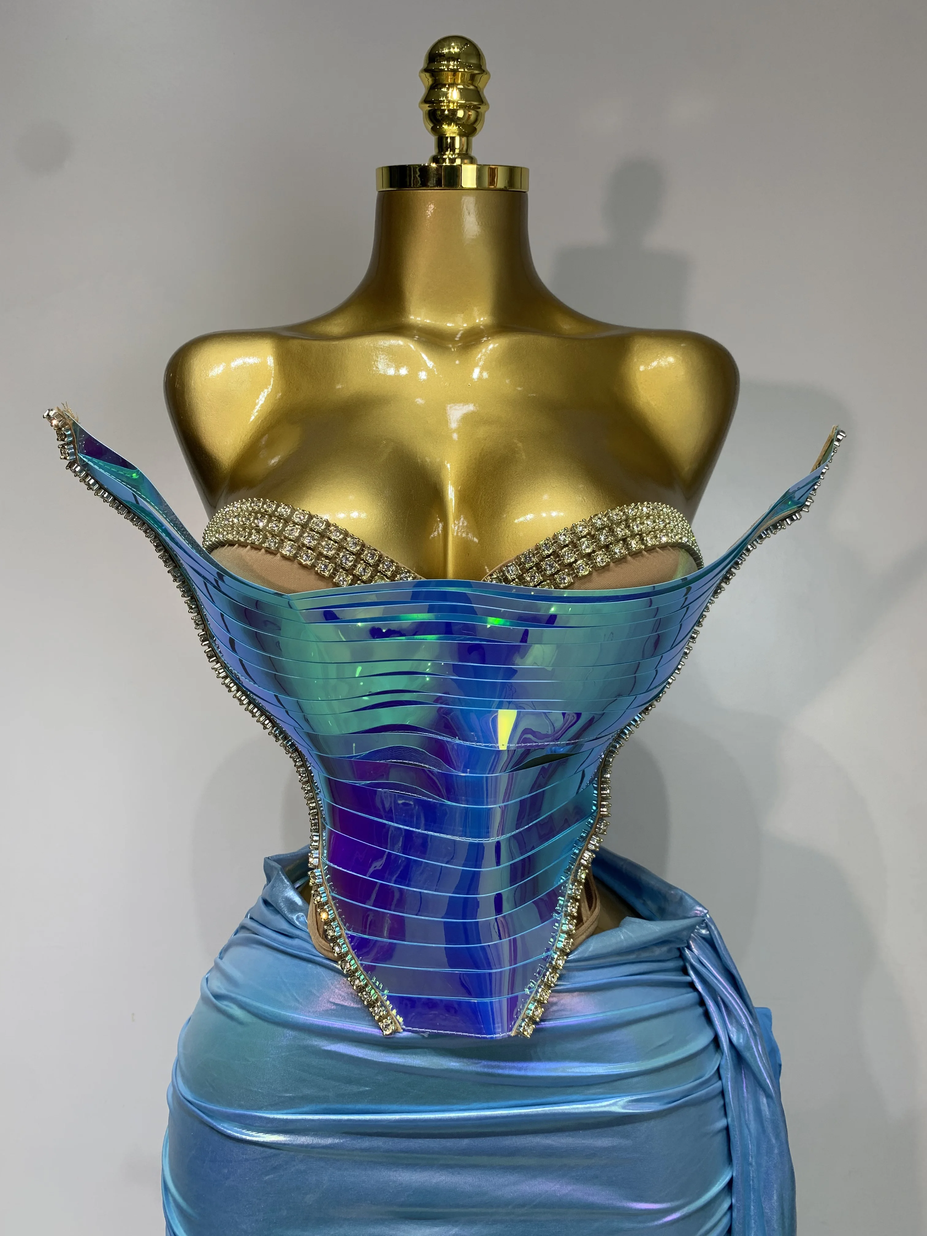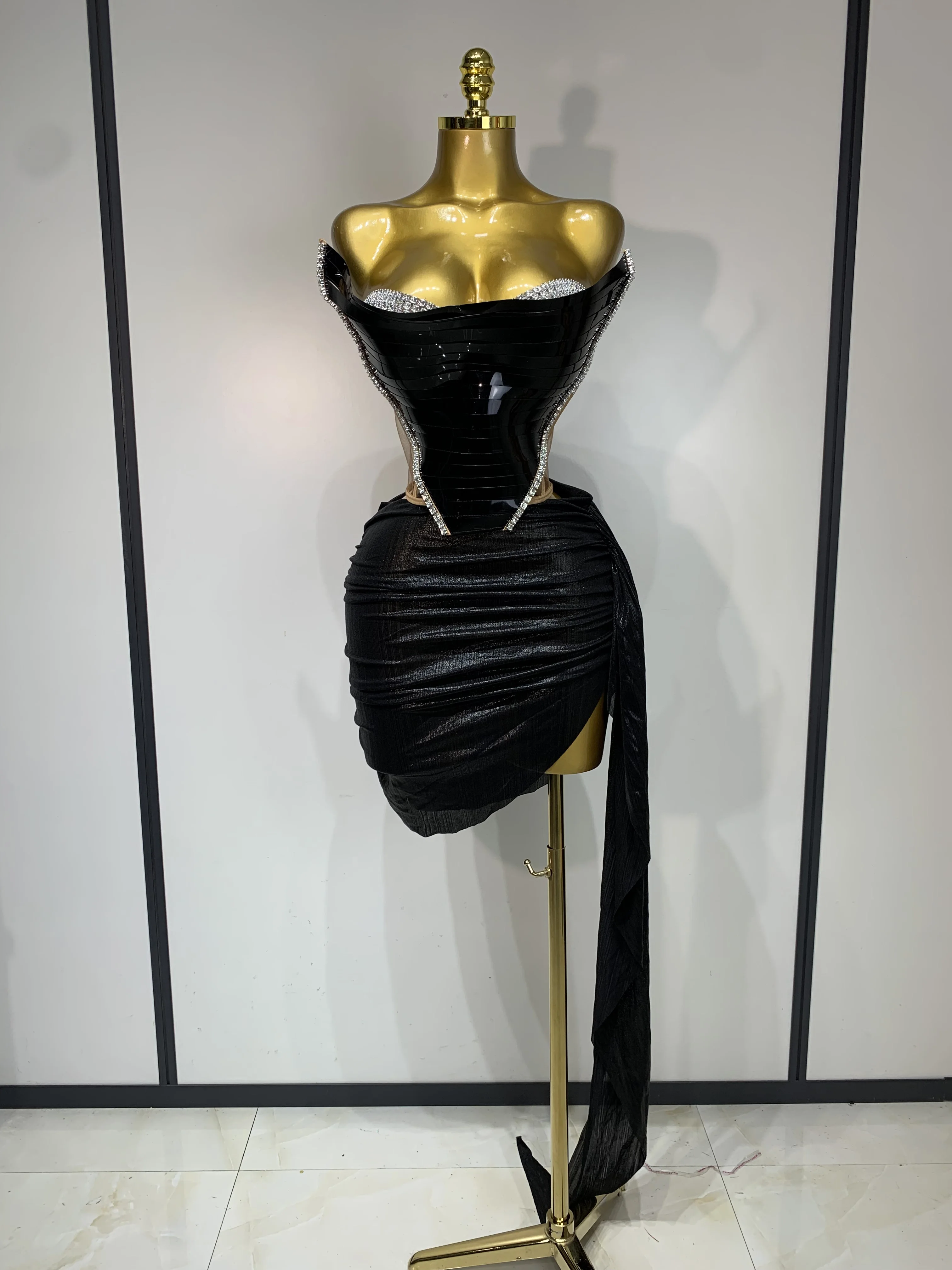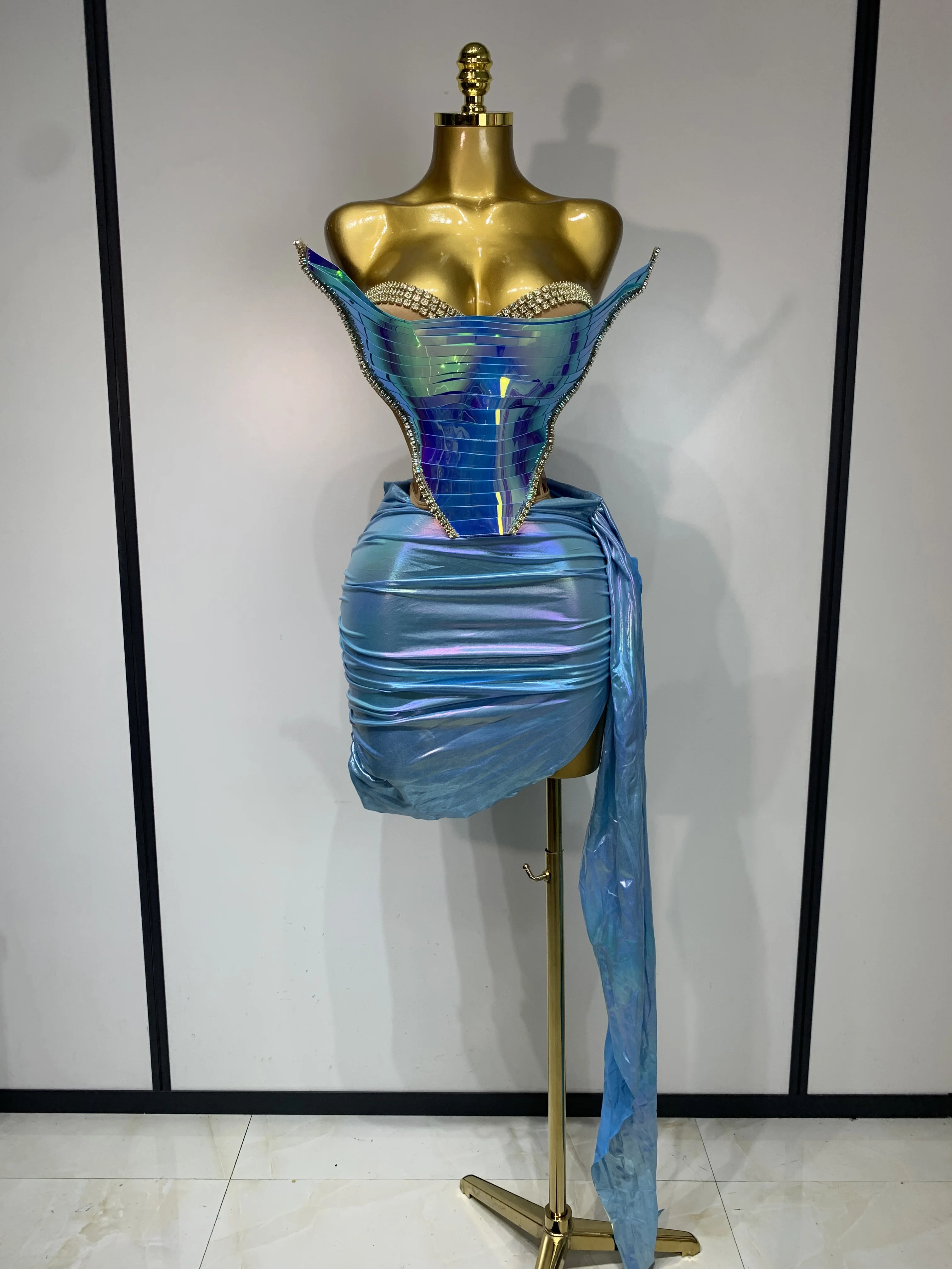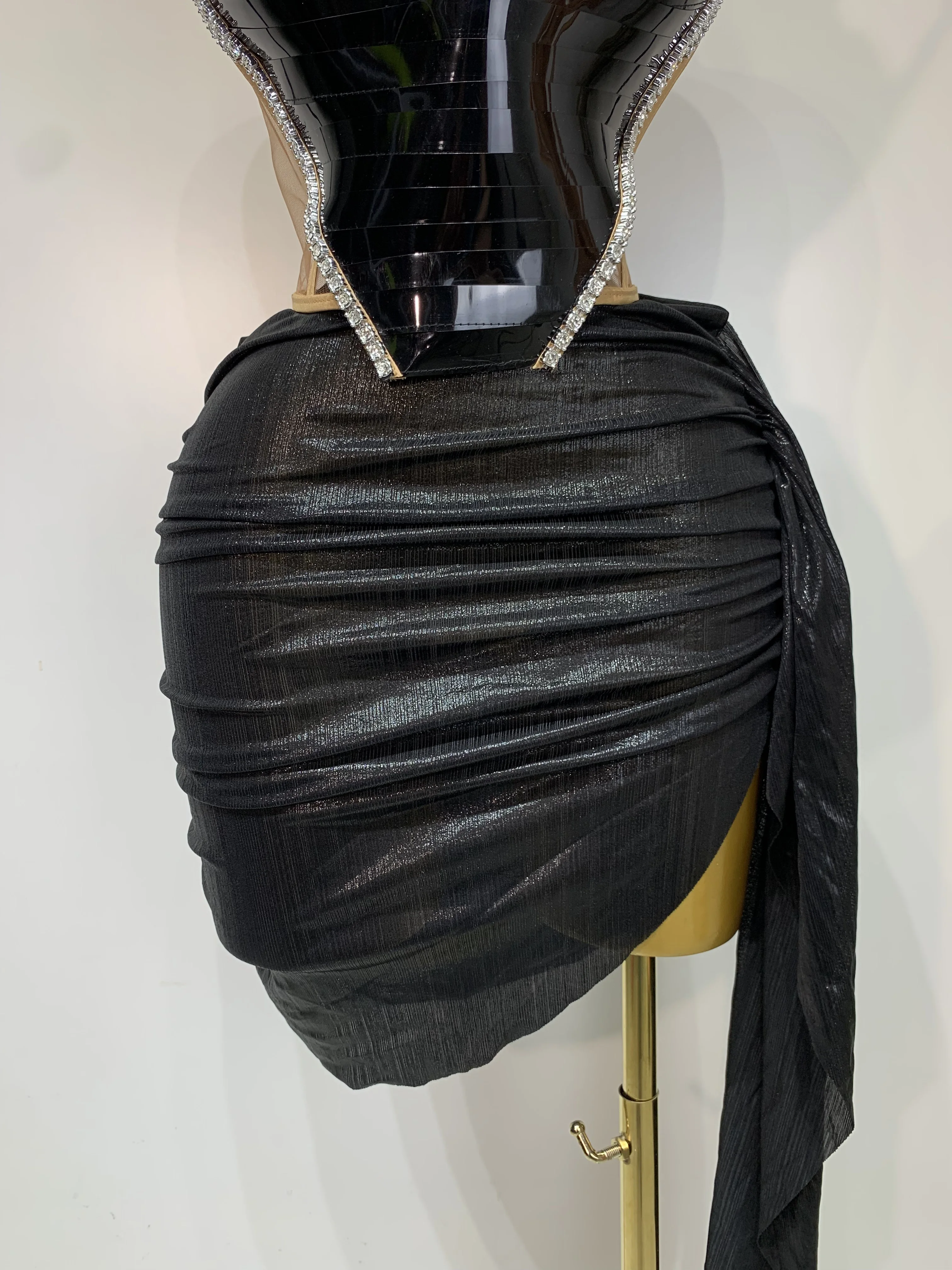 QueenLine Celebrity Elegant Celebrate Birthday Sparkly Sexy Top Two Pieces Short Skirt Set