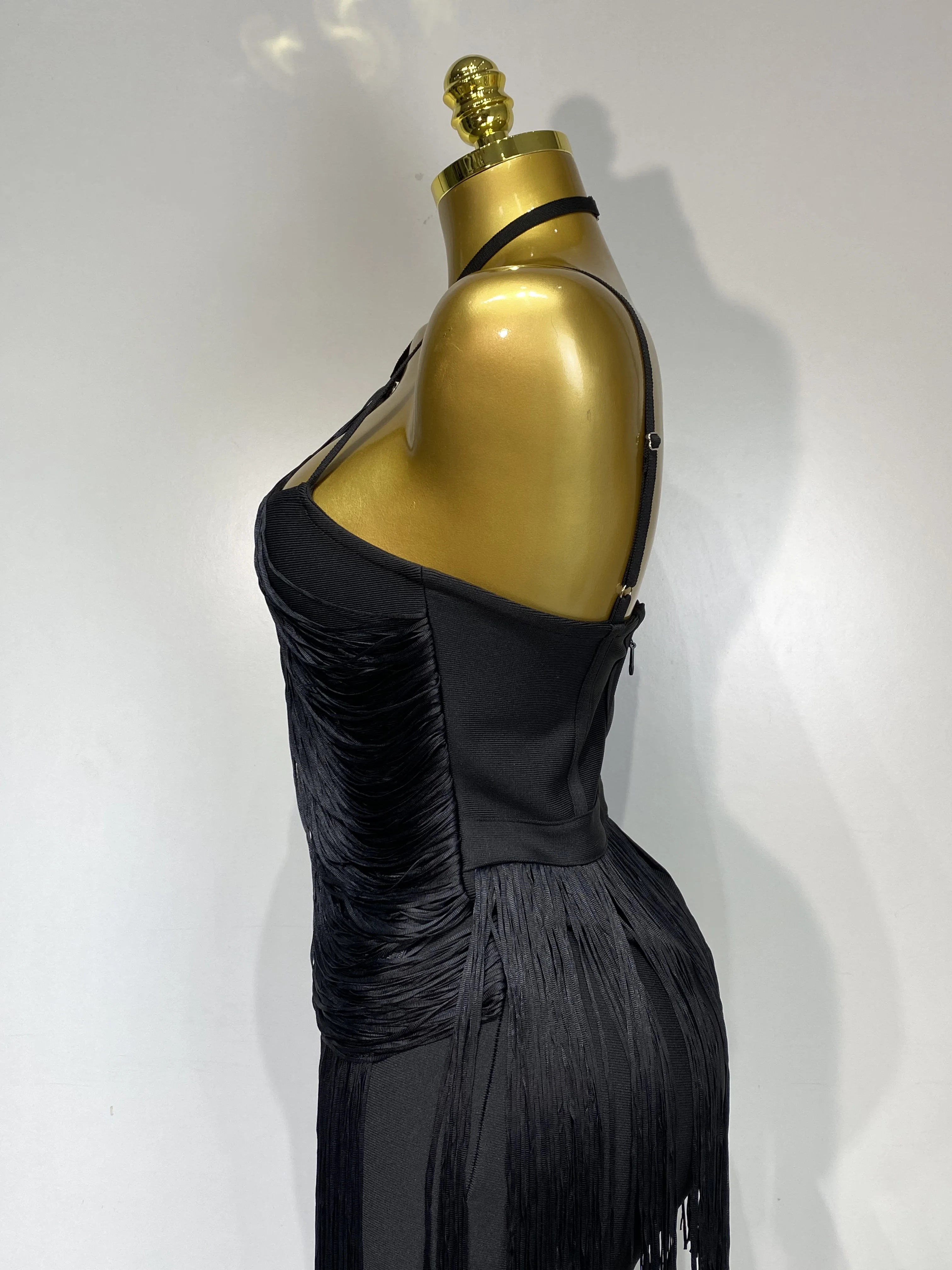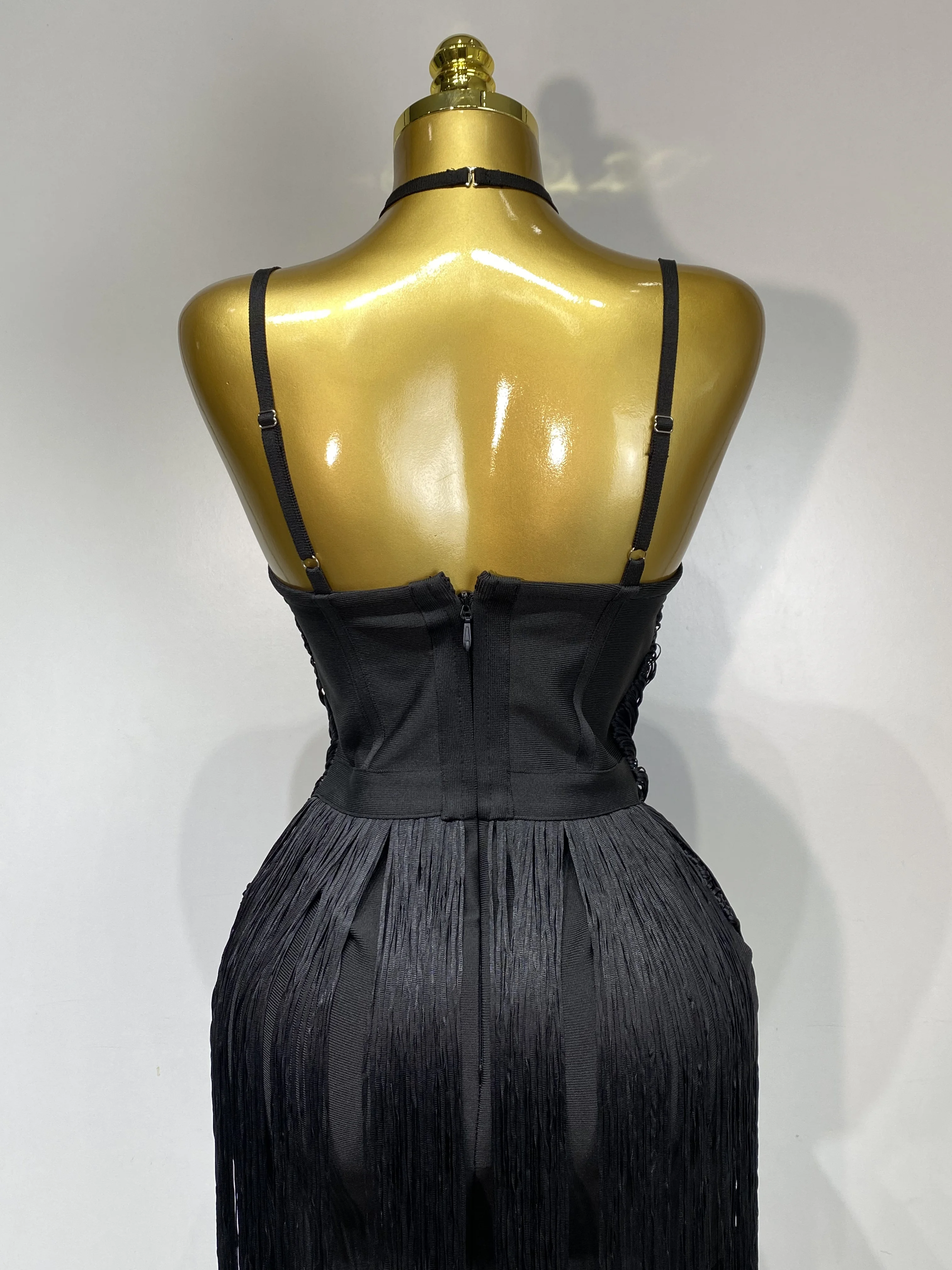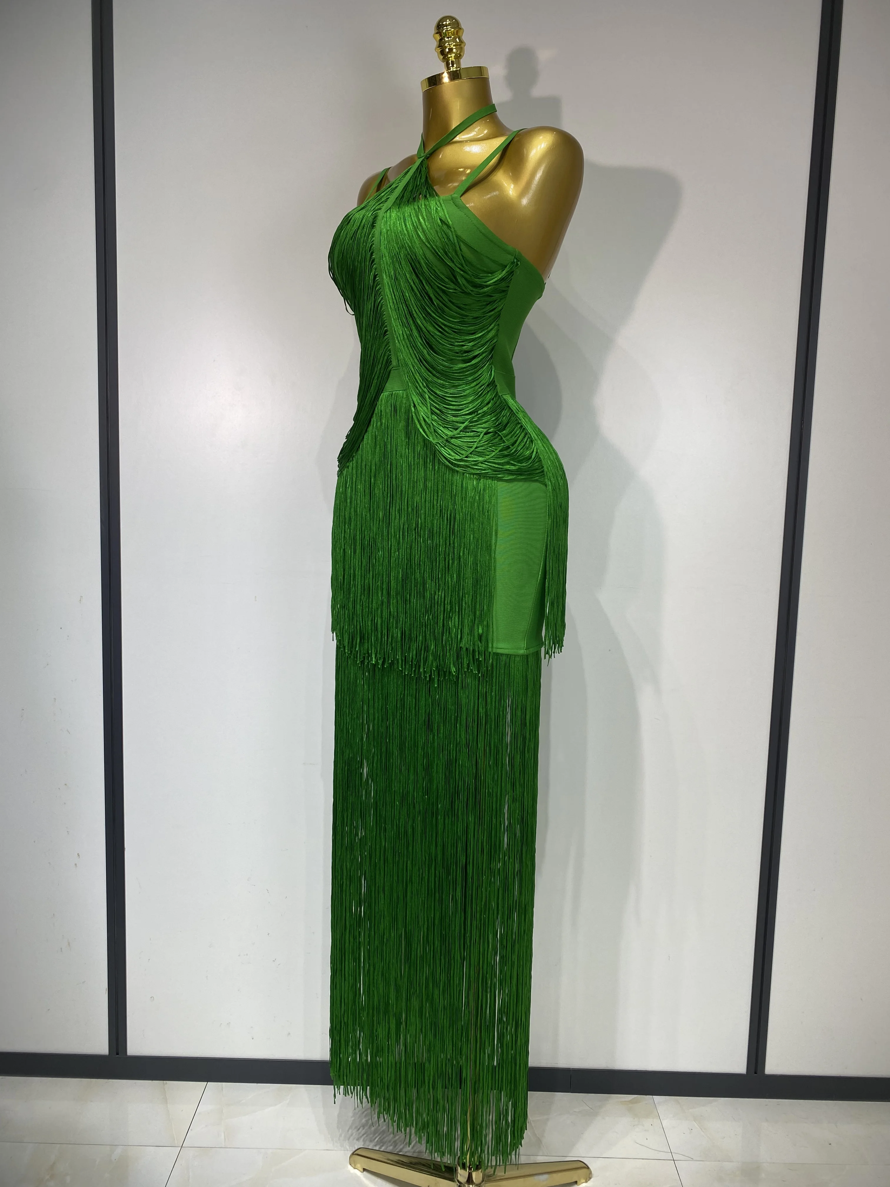 QueenLine Celebrity Elegant Luxury Sexy Backless Tassel Green Ankle Bodycon Bandage Evening Dress
