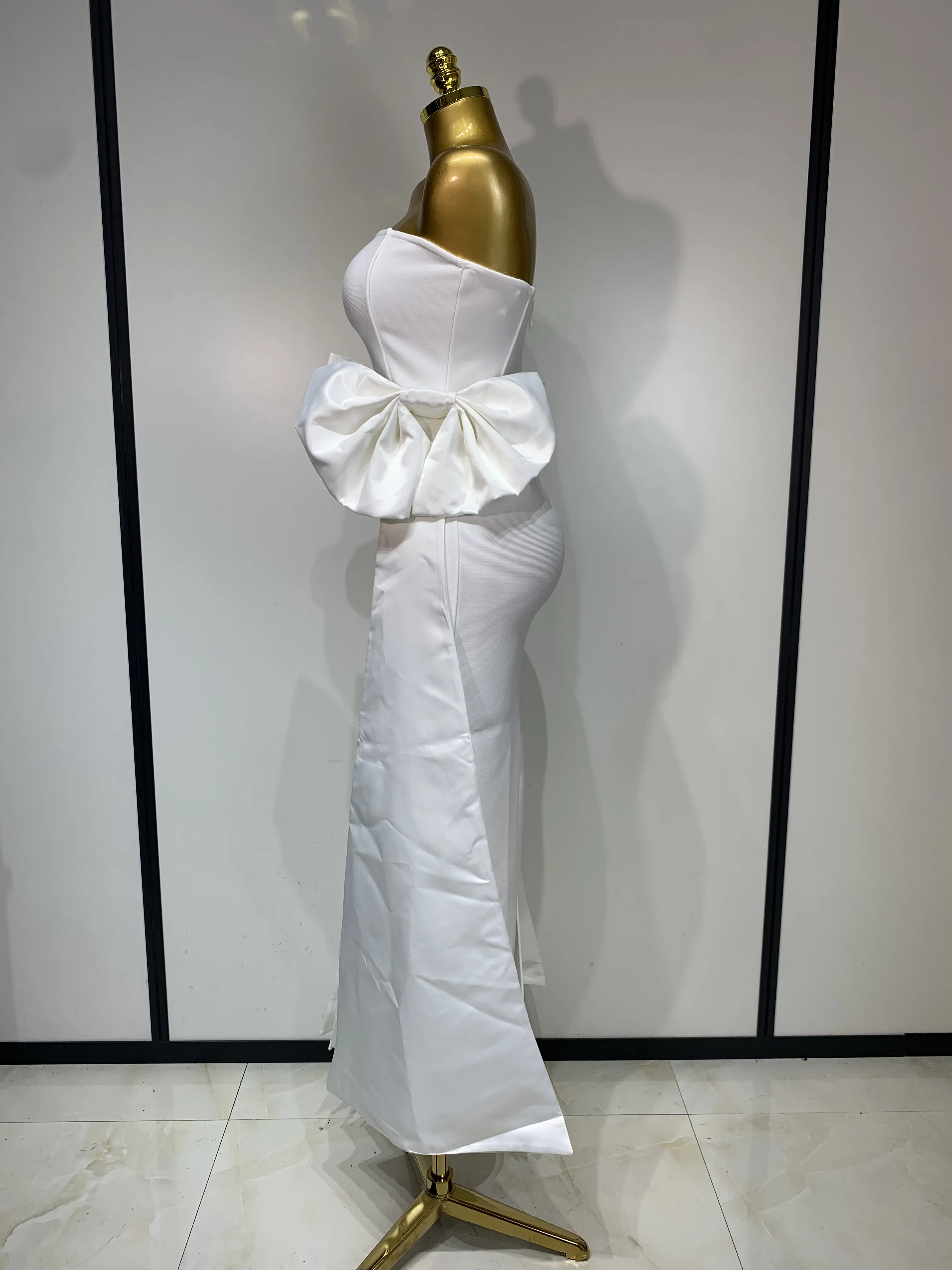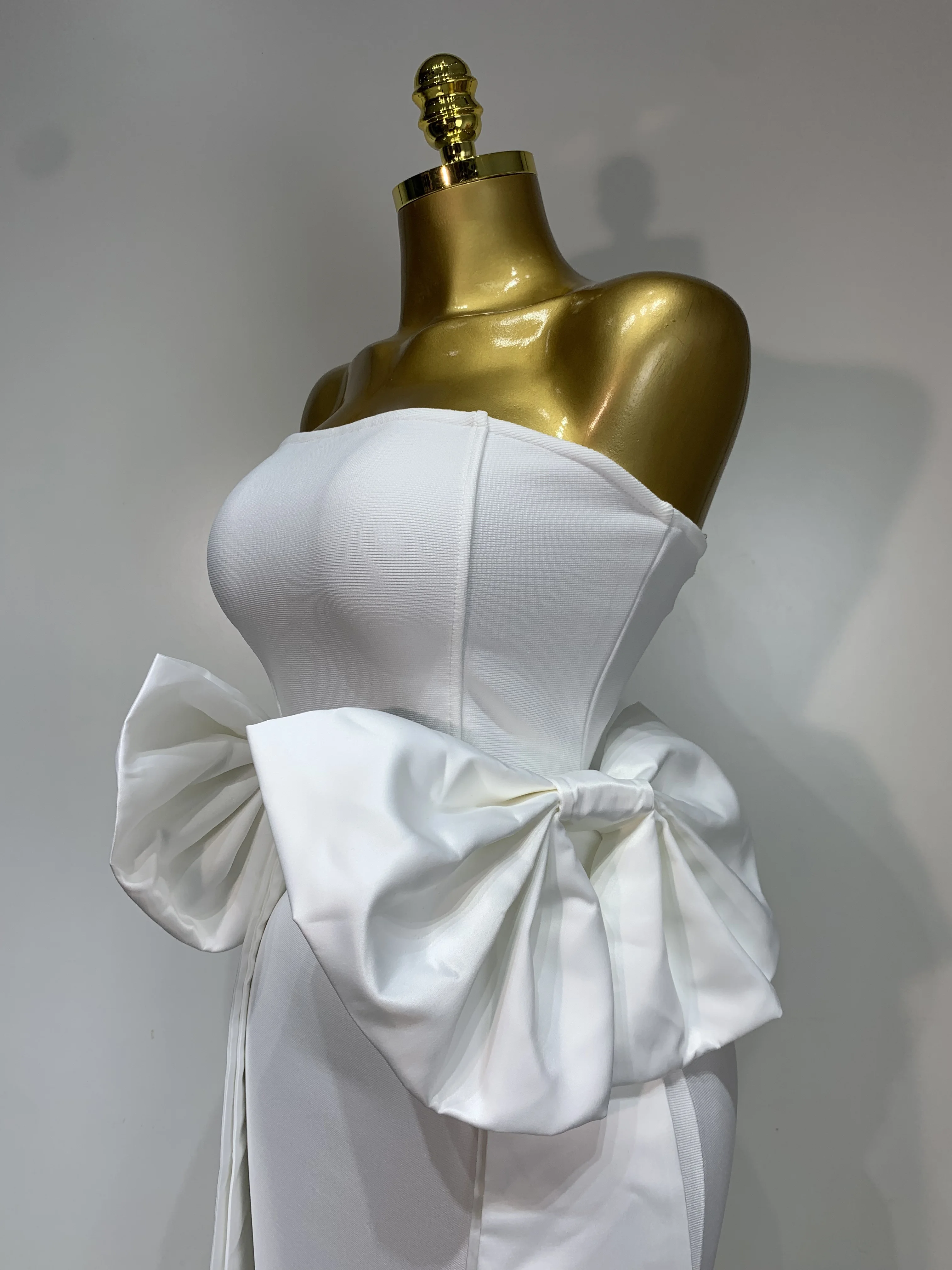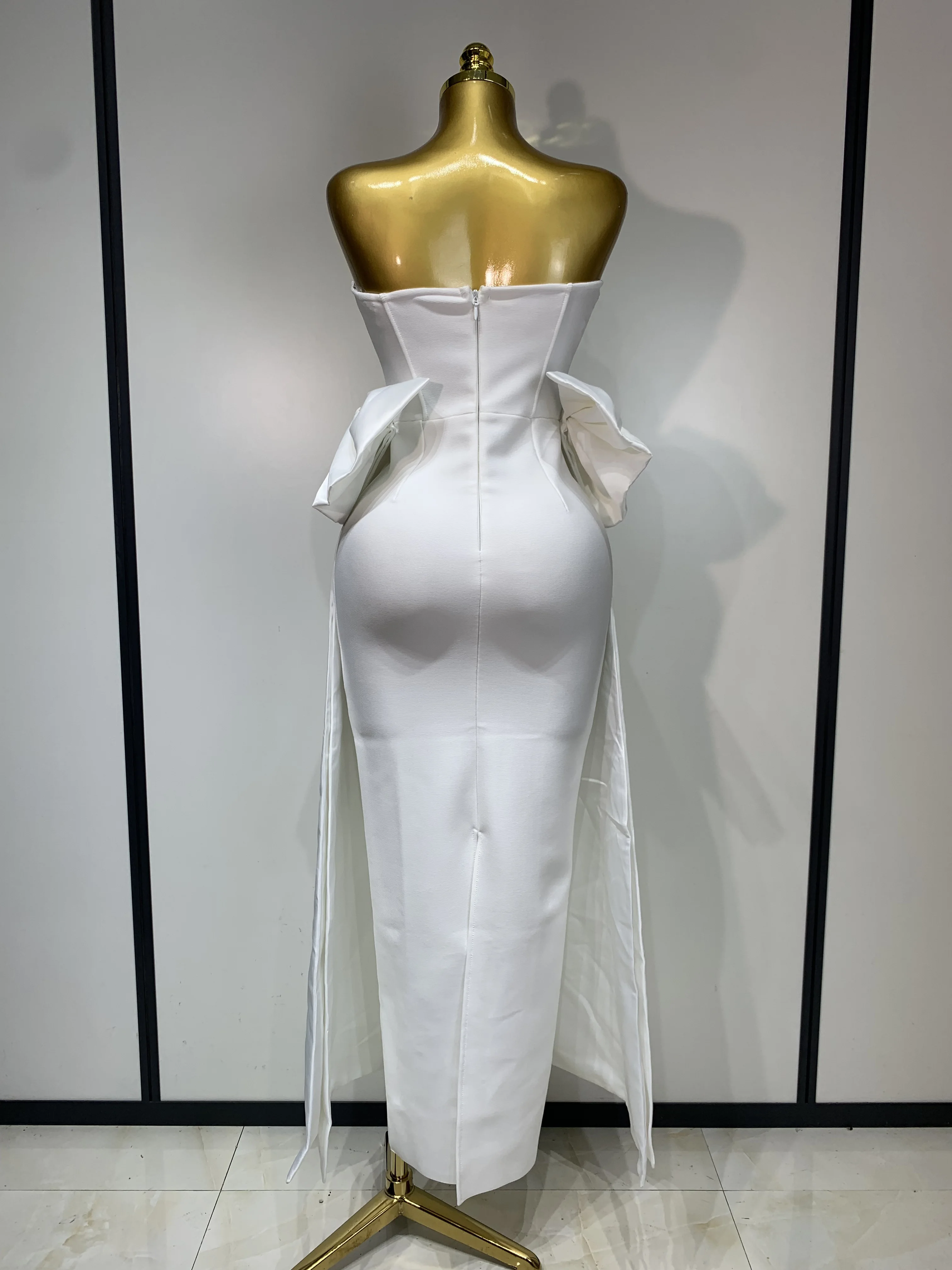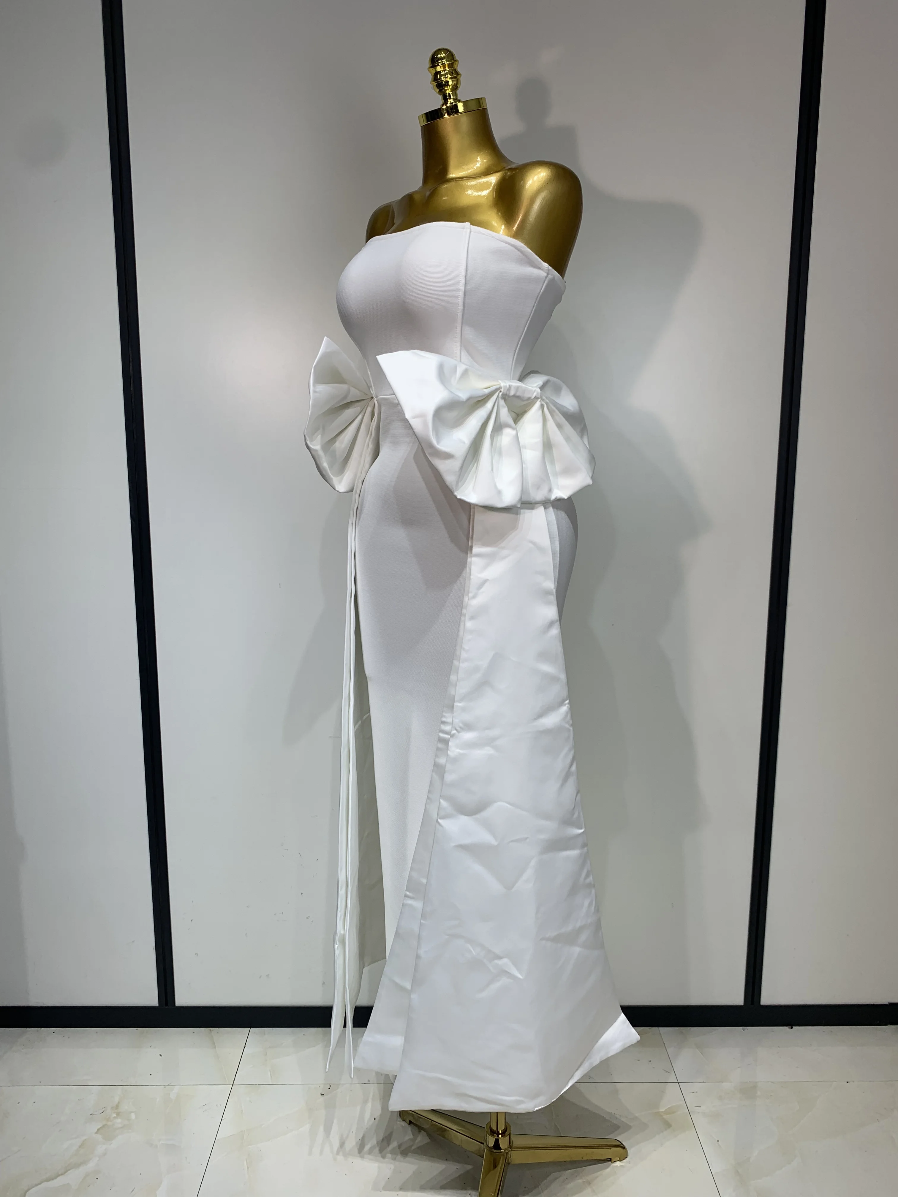 QueenLine Celebrity Elegant Luxury Sexy Wedding Strapless White Bow Bodycon Bandage Evening Dress