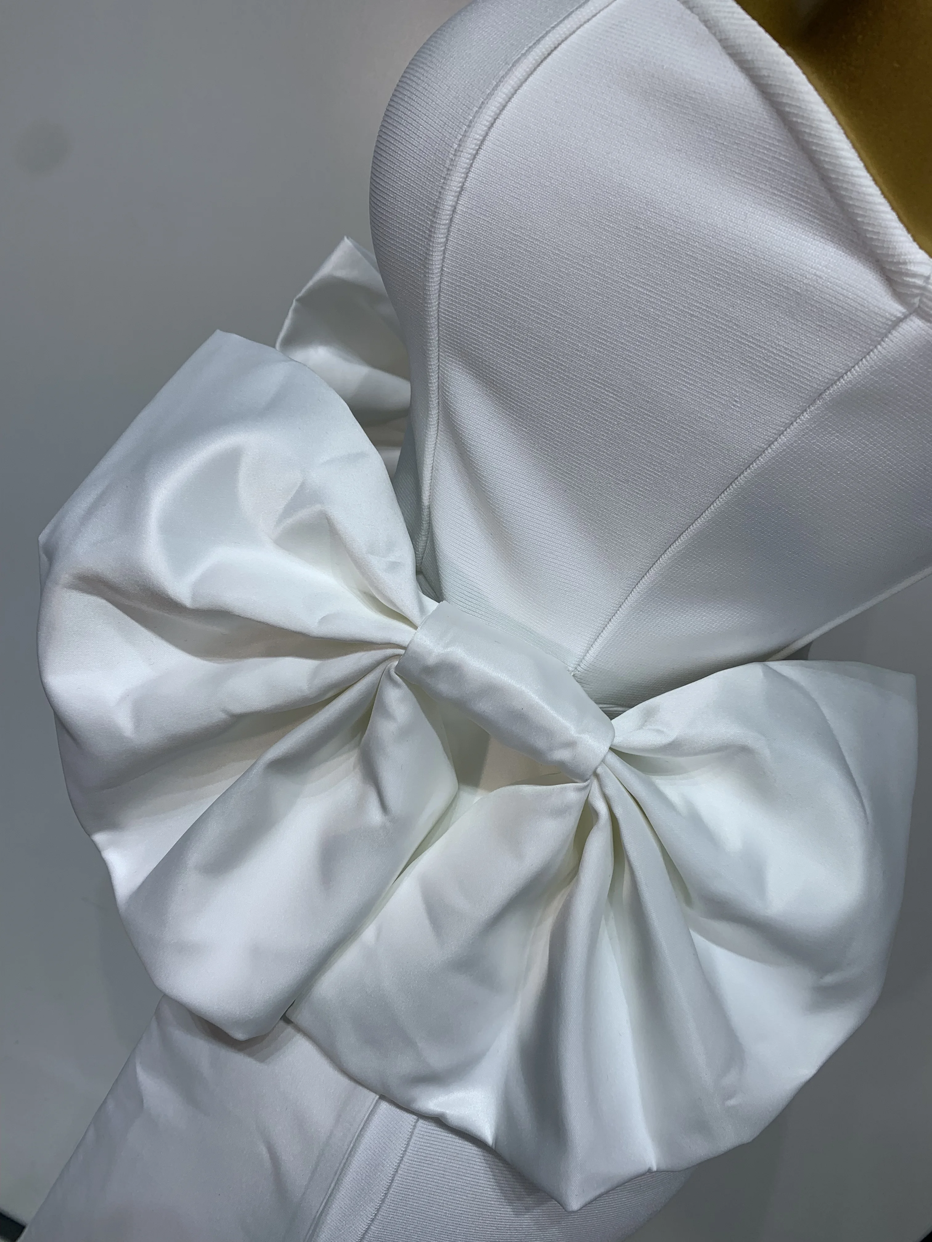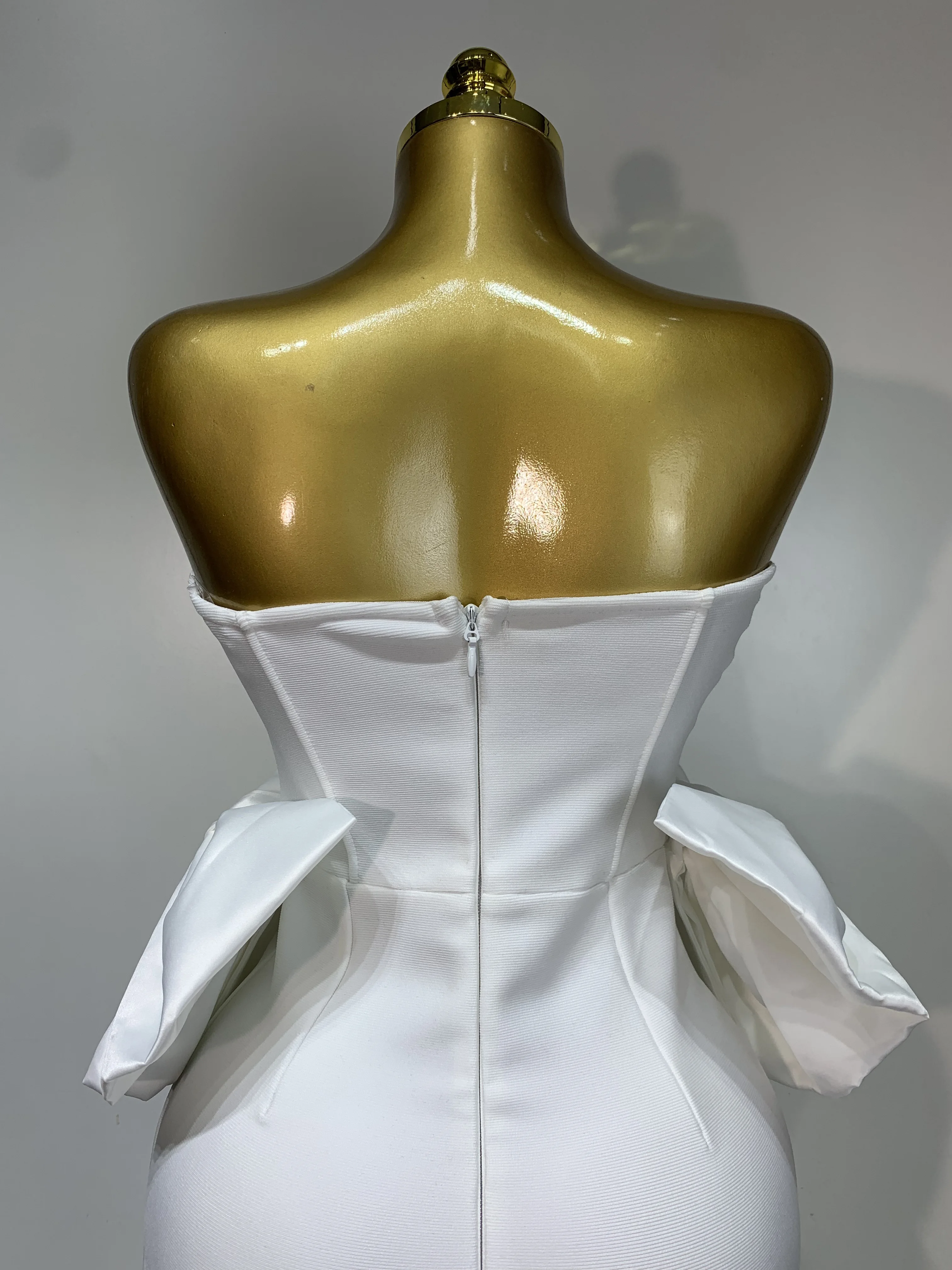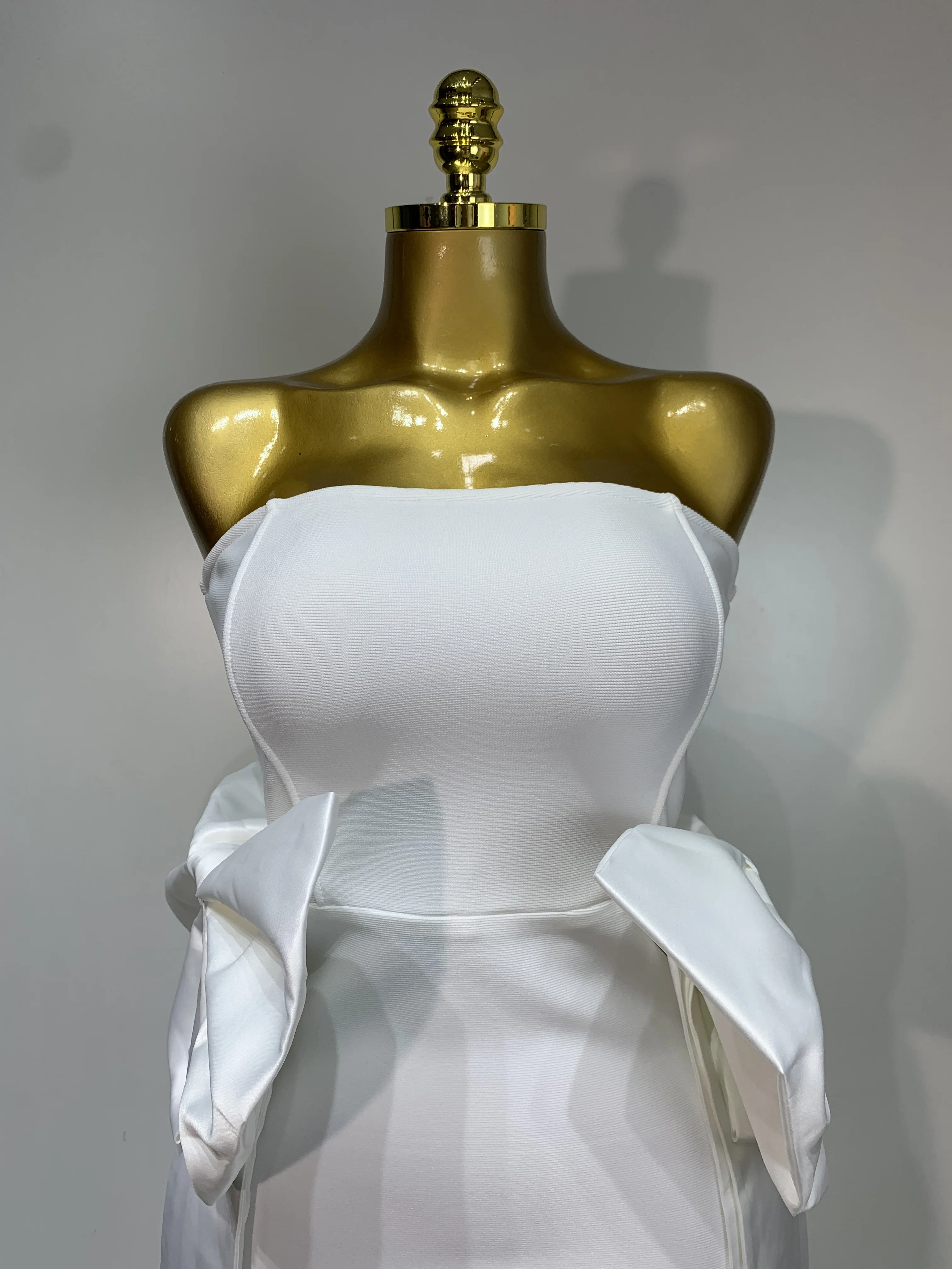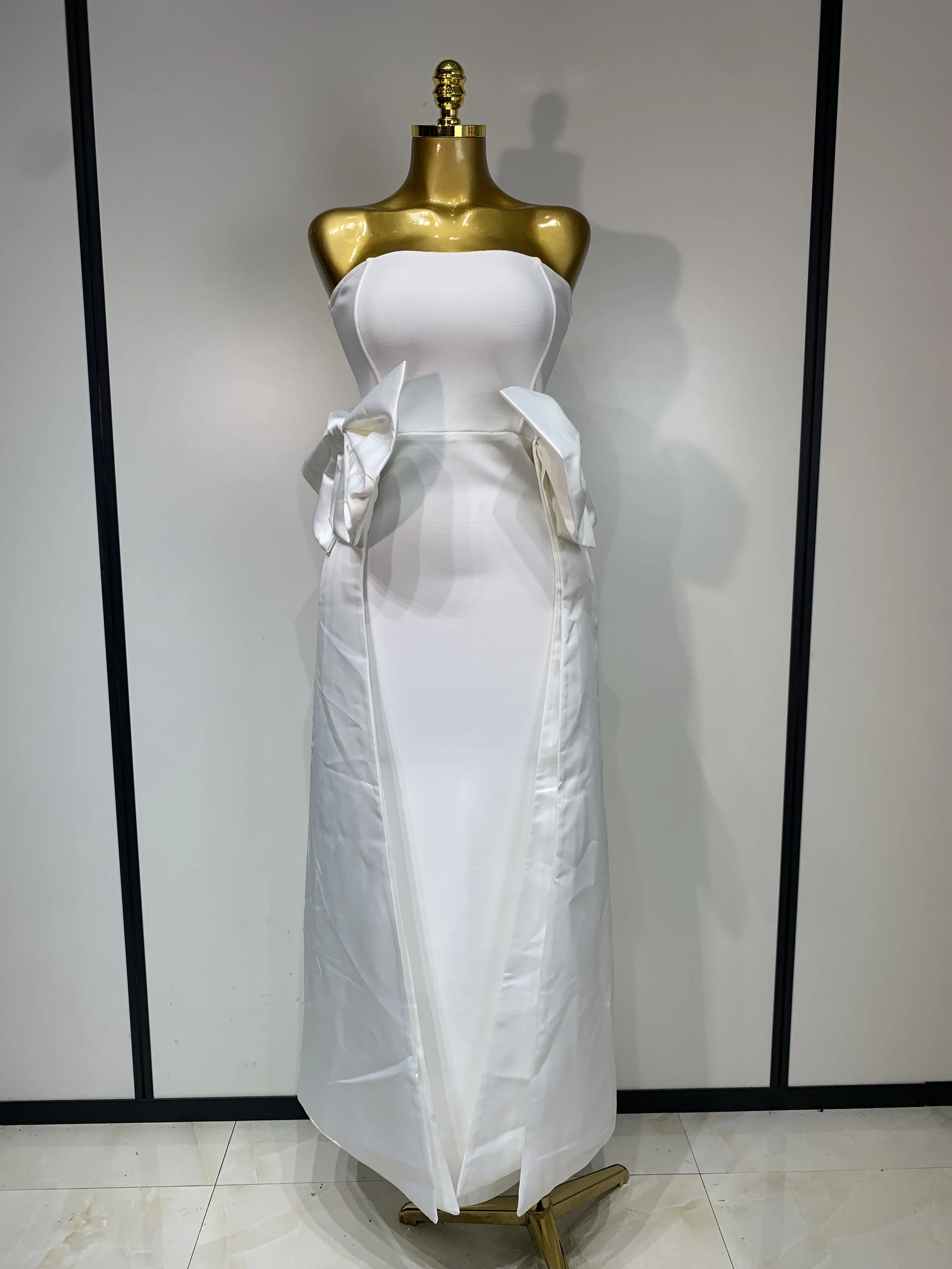 QueenLine Celebrity Elegant Luxury Sexy Wedding Strapless White Bow Bodycon Bandage Evening Dress