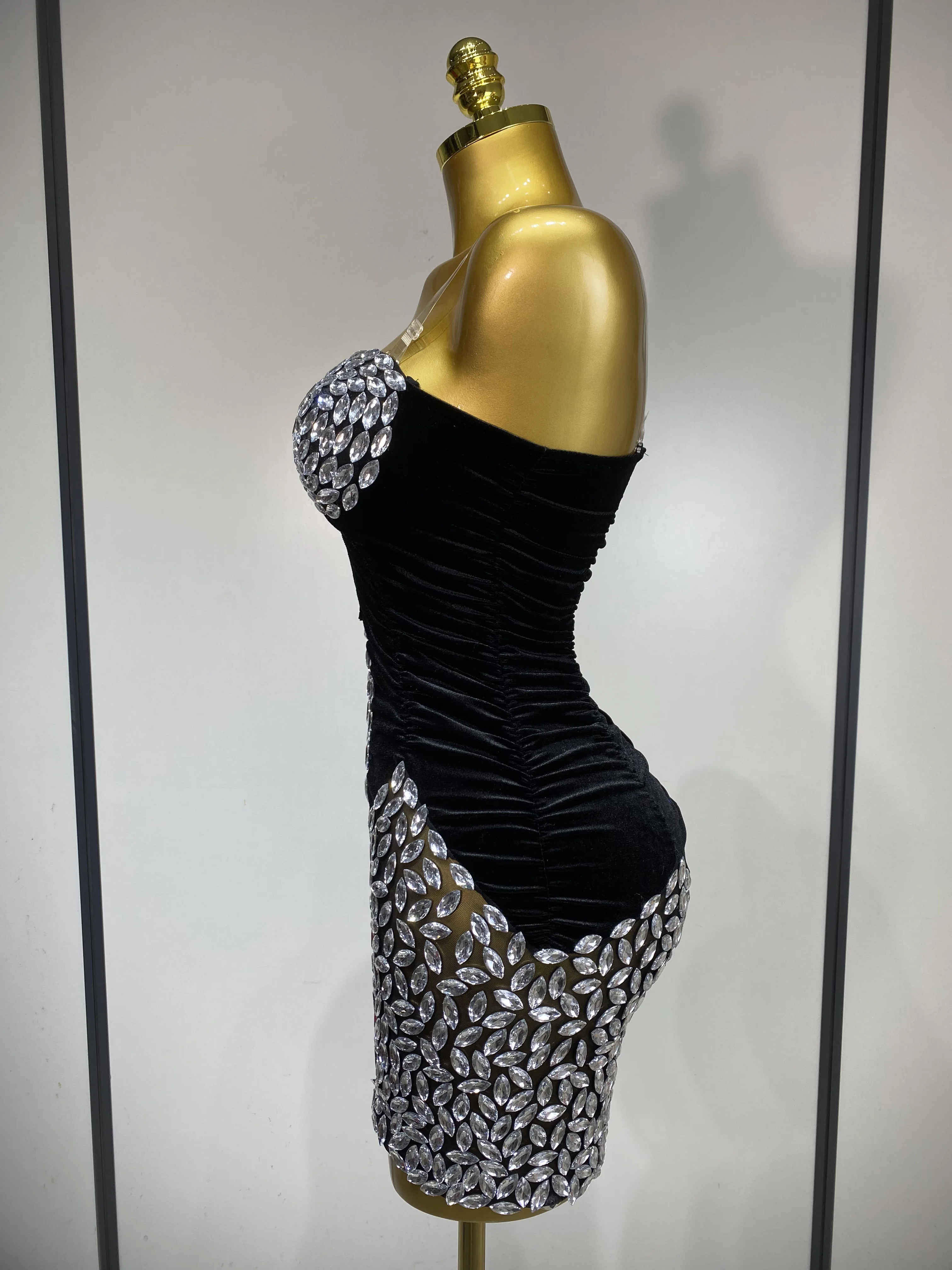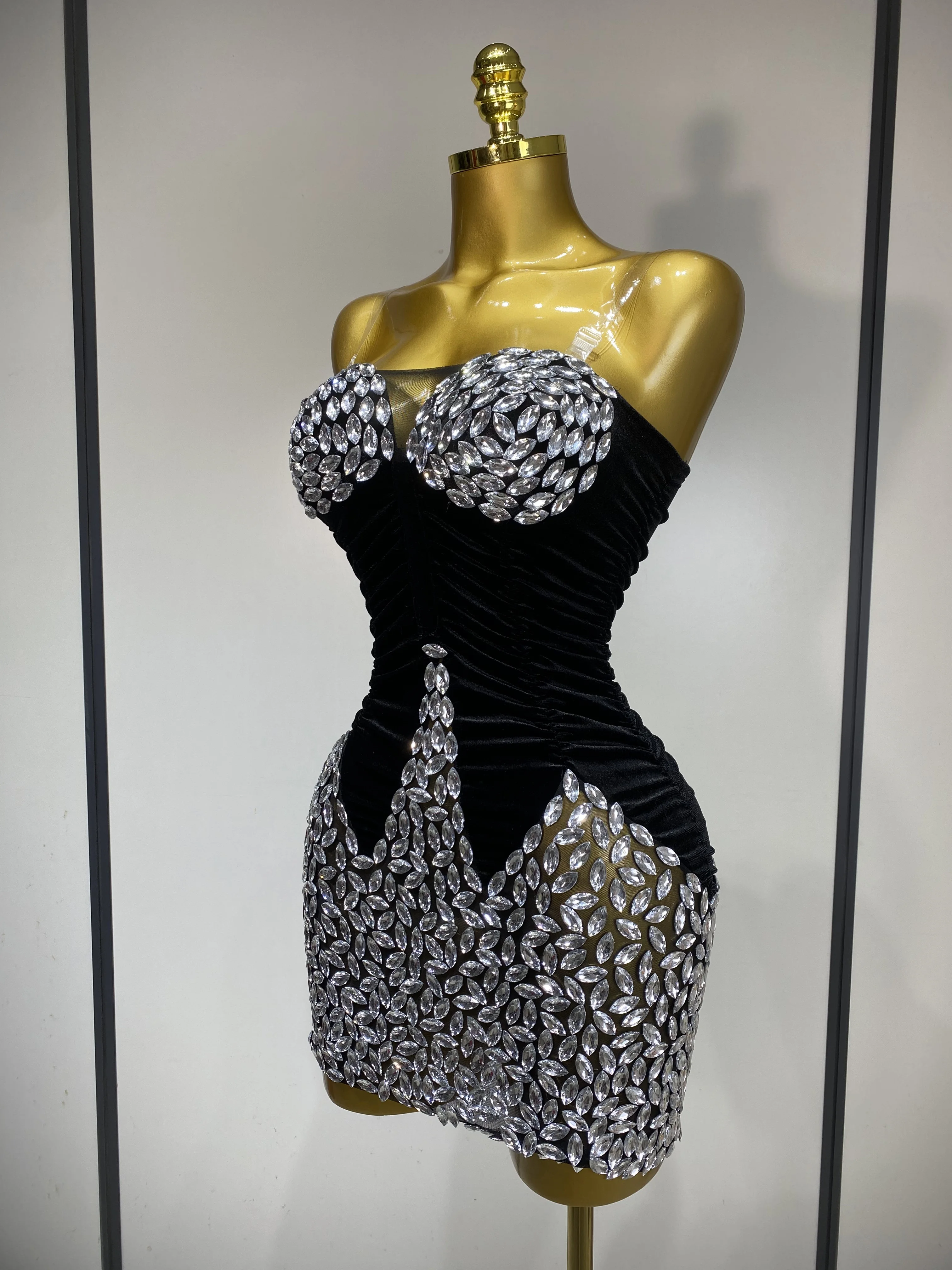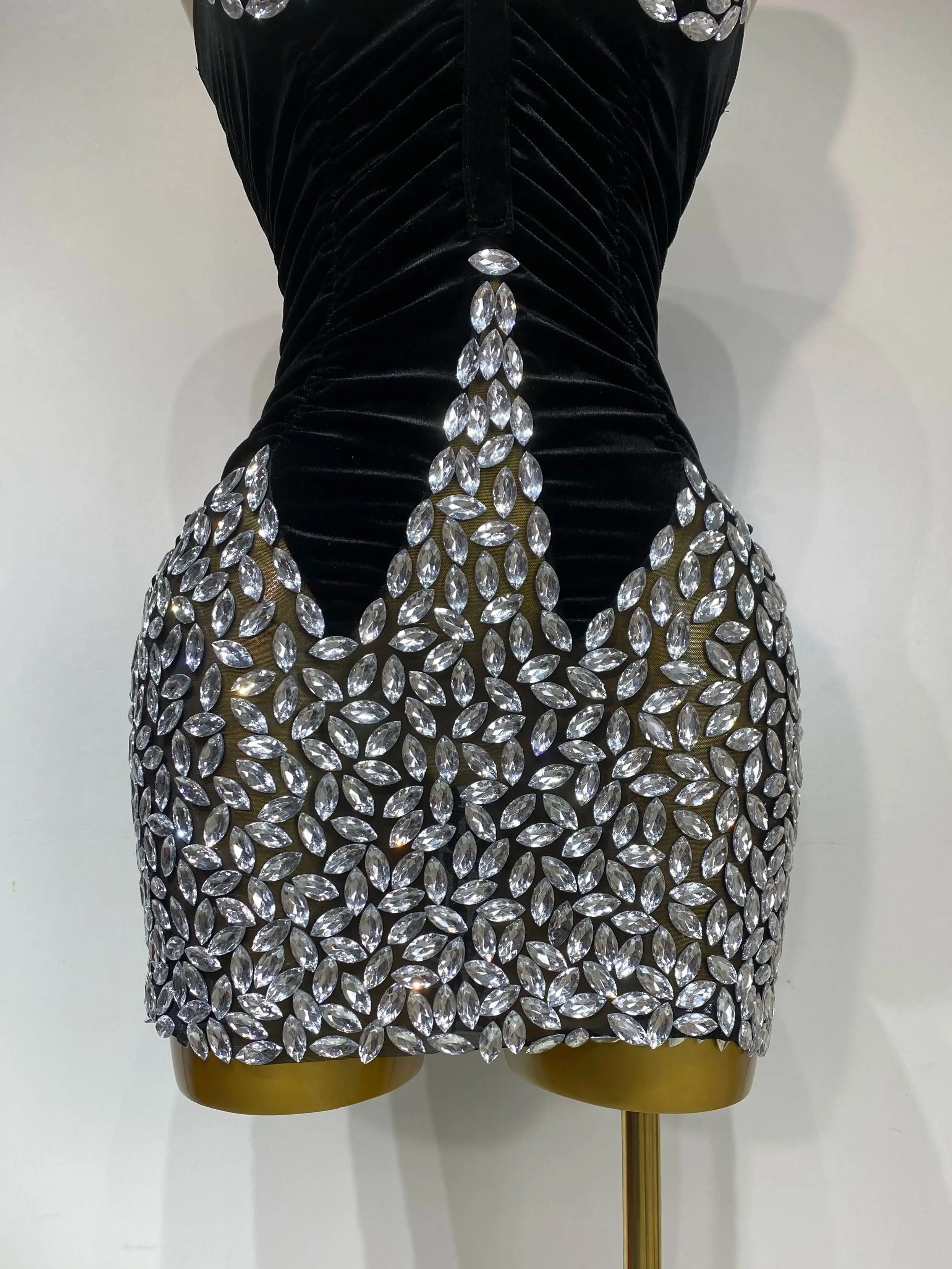 QueenLine Celebrity Elegant Sexy Bodycon Nightclub Birthday Singer Shining Diamond Stage Mini Evening Dress