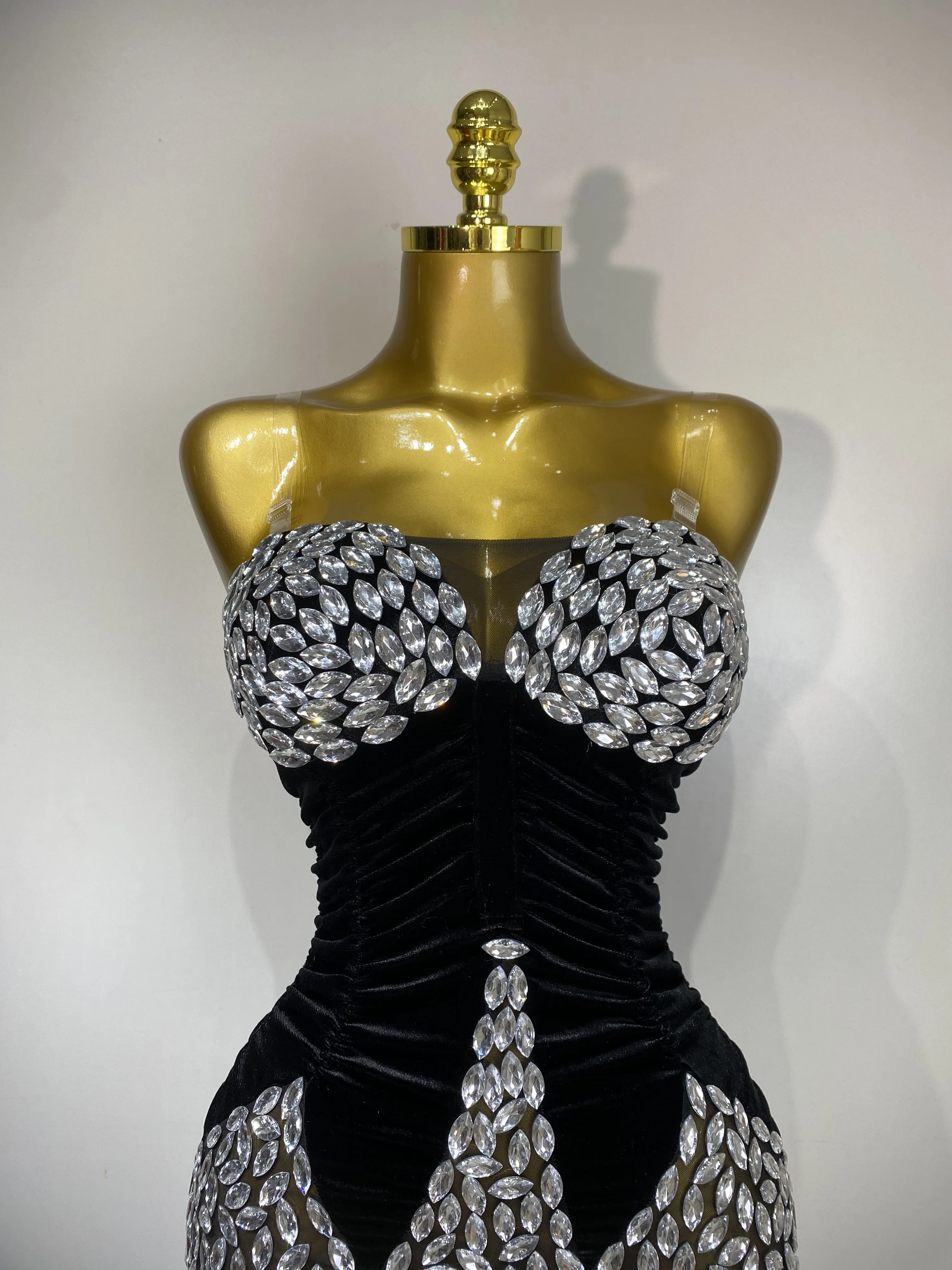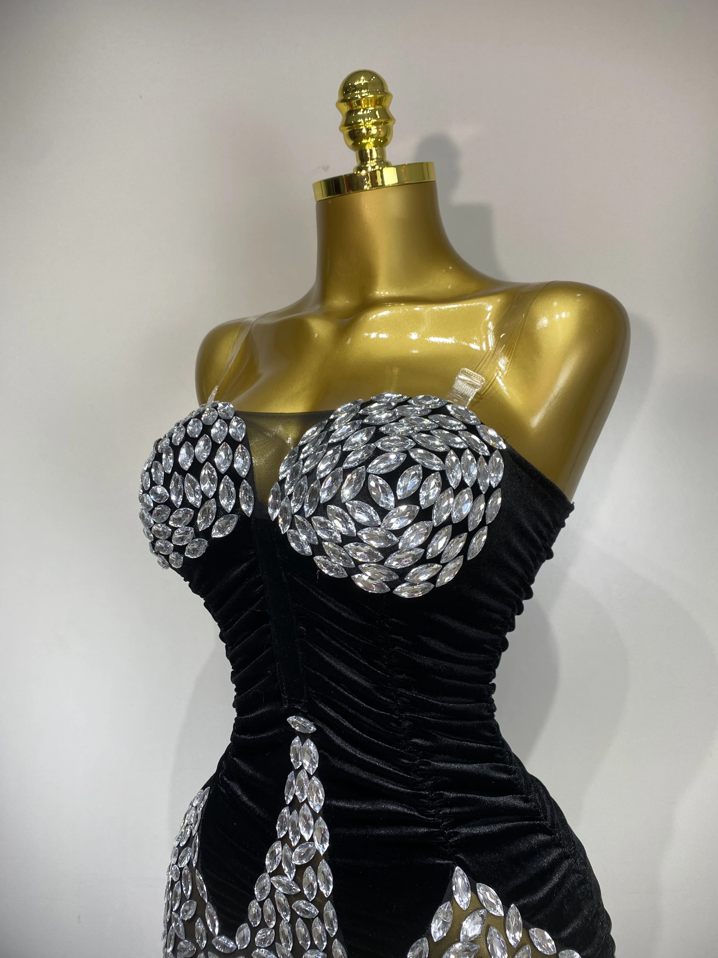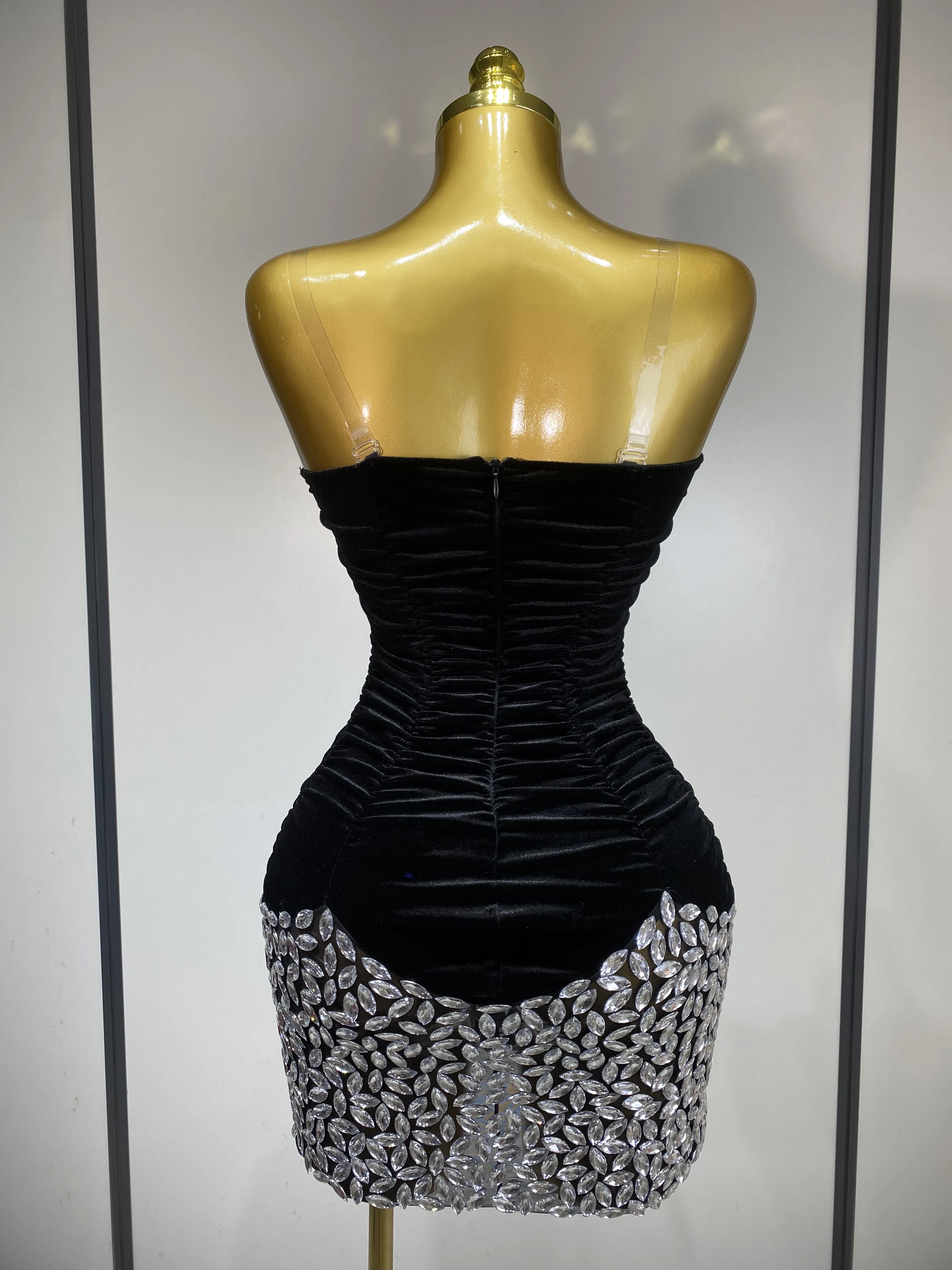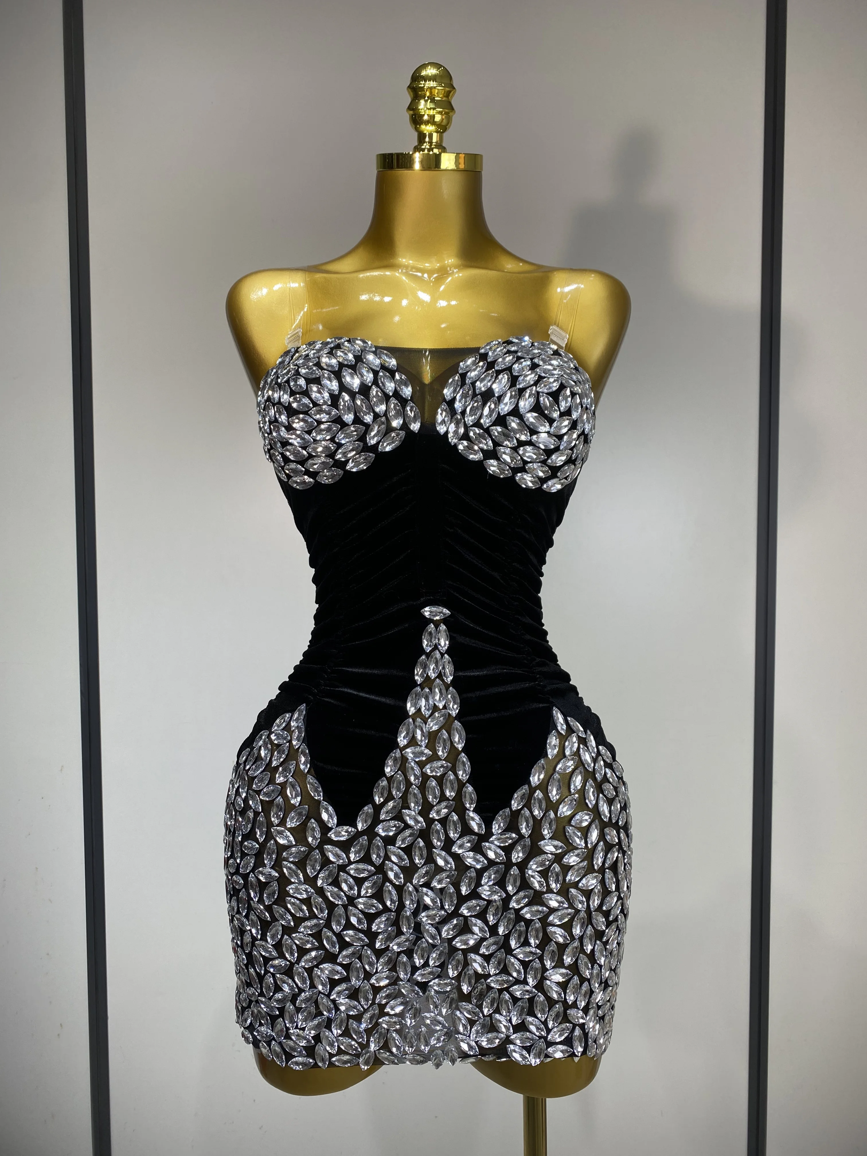 QueenLine Celebrity Elegant Sexy Bodycon Nightclub Birthday Singer Shining Diamond Stage Mini Evening Dress