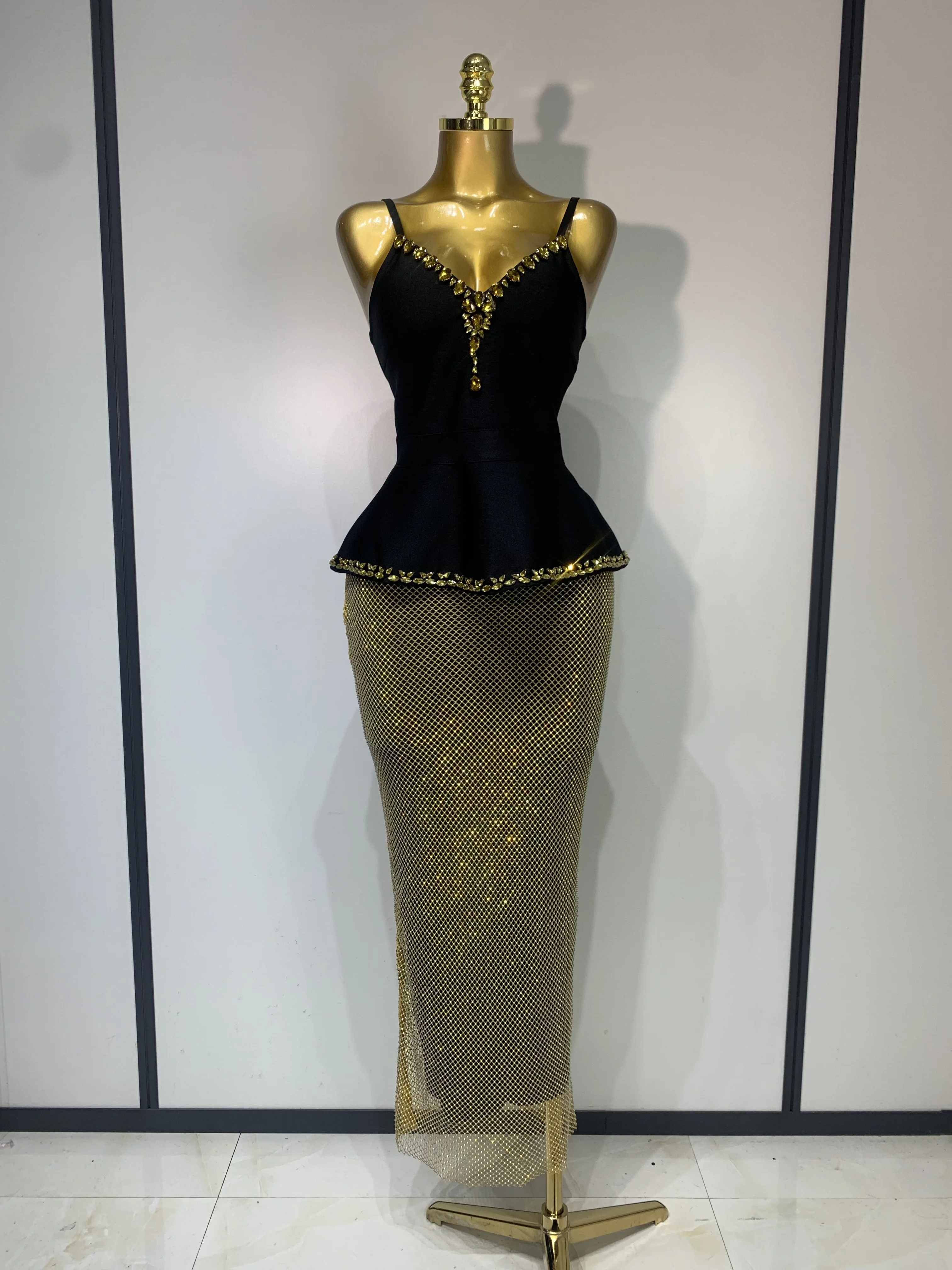 Collar: V-NeckDecoration: CRYSTAL