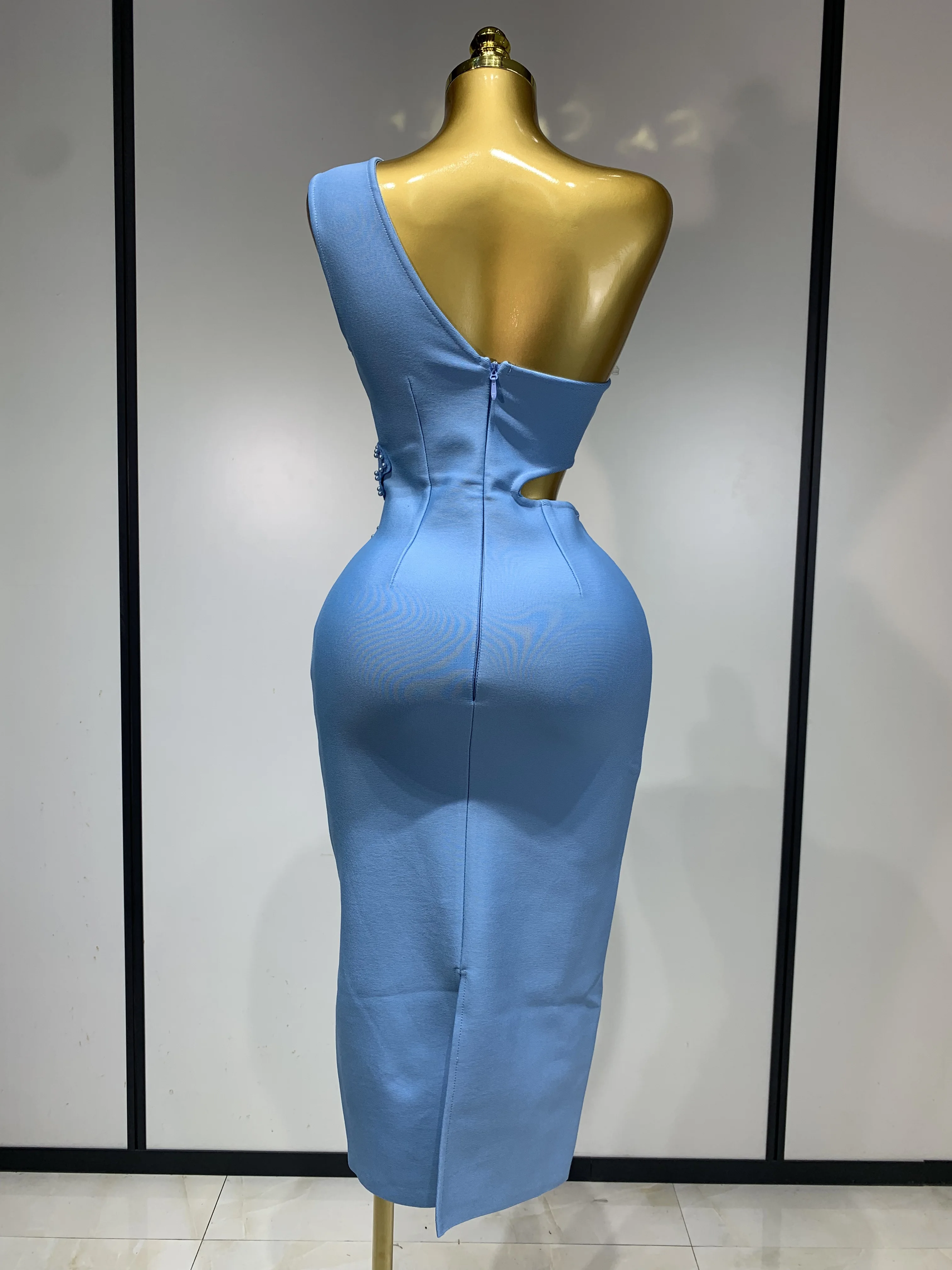 Sleeve Style: One-ShoulderDresses Length: Knee-Length