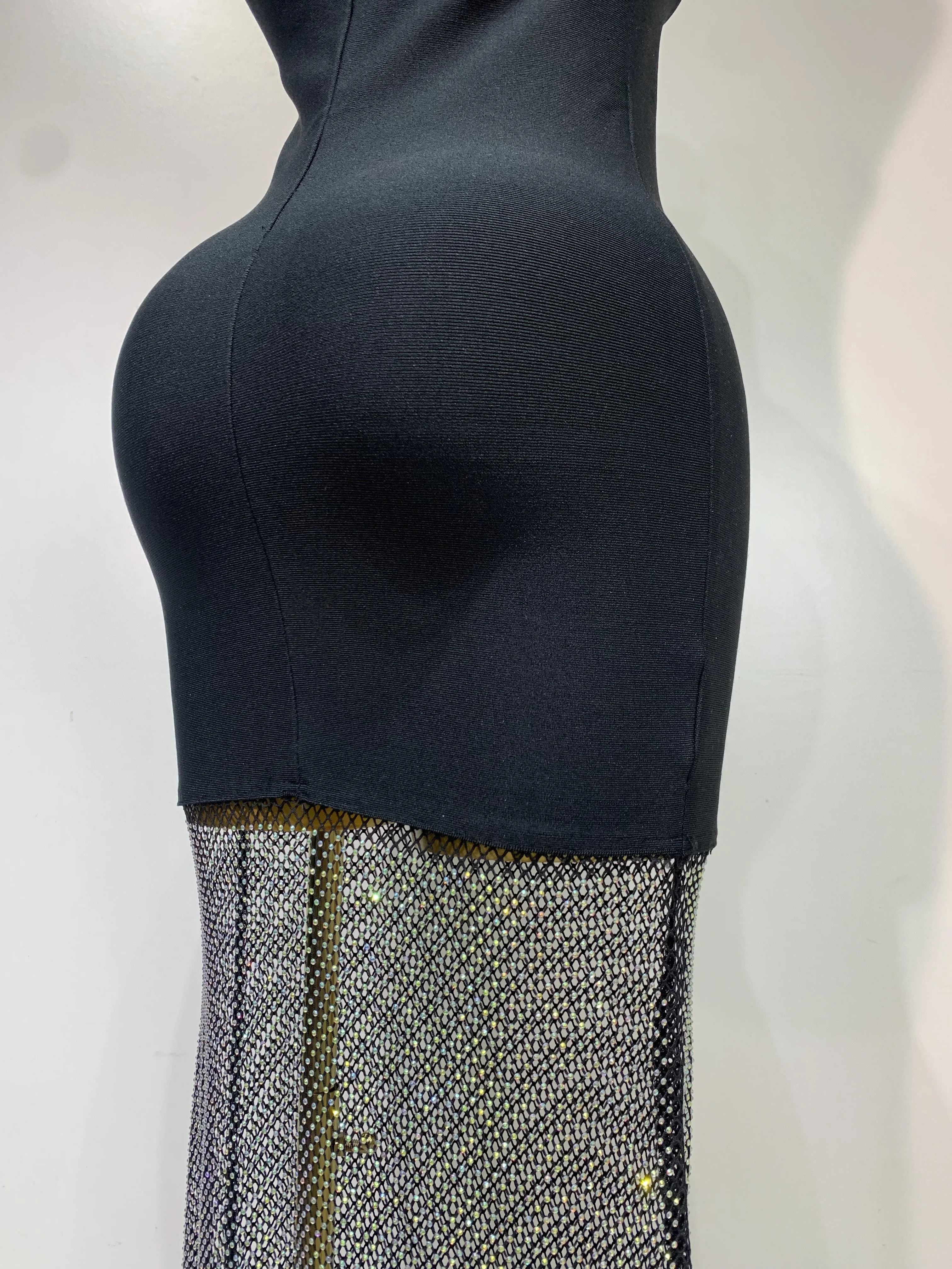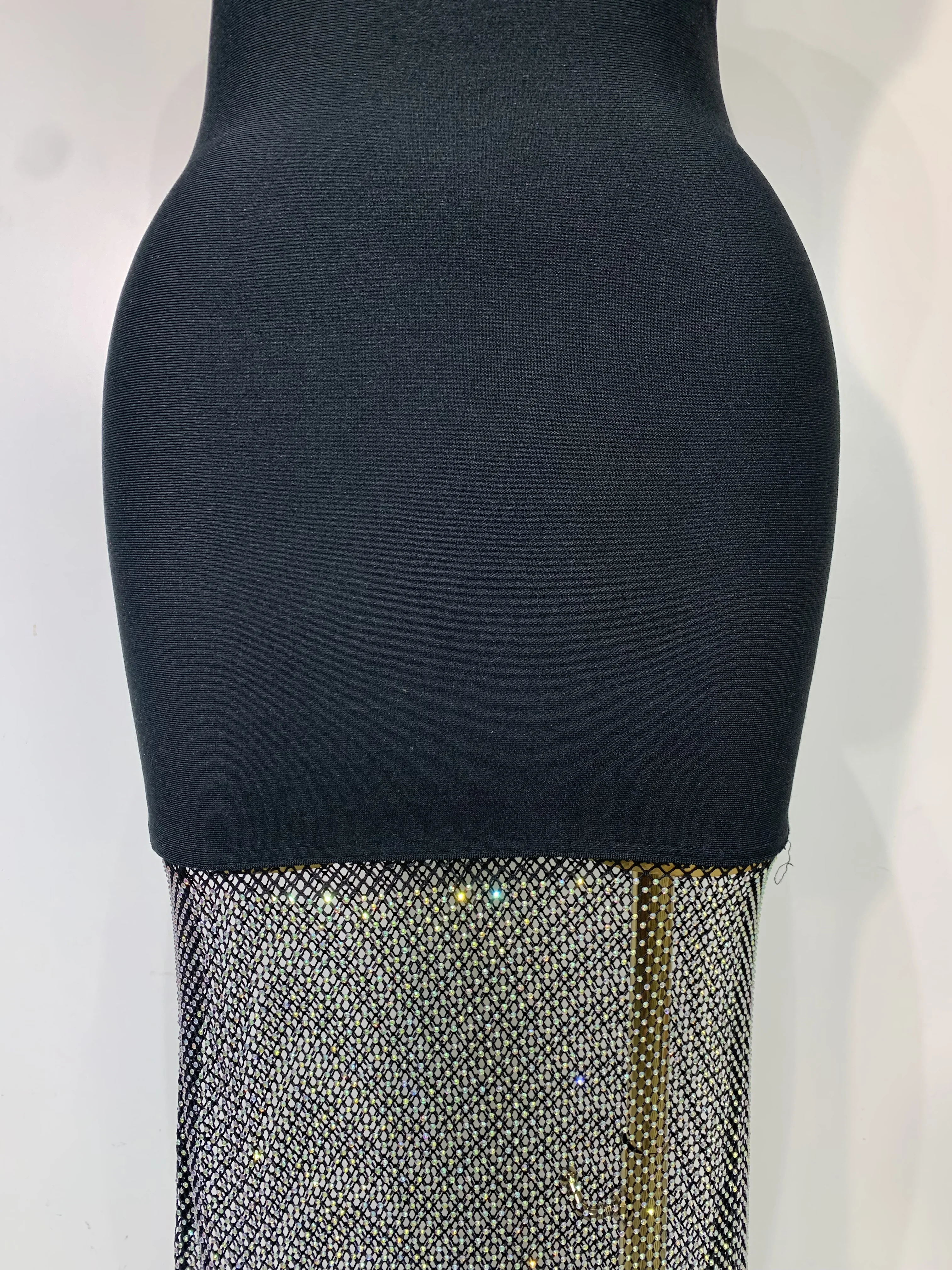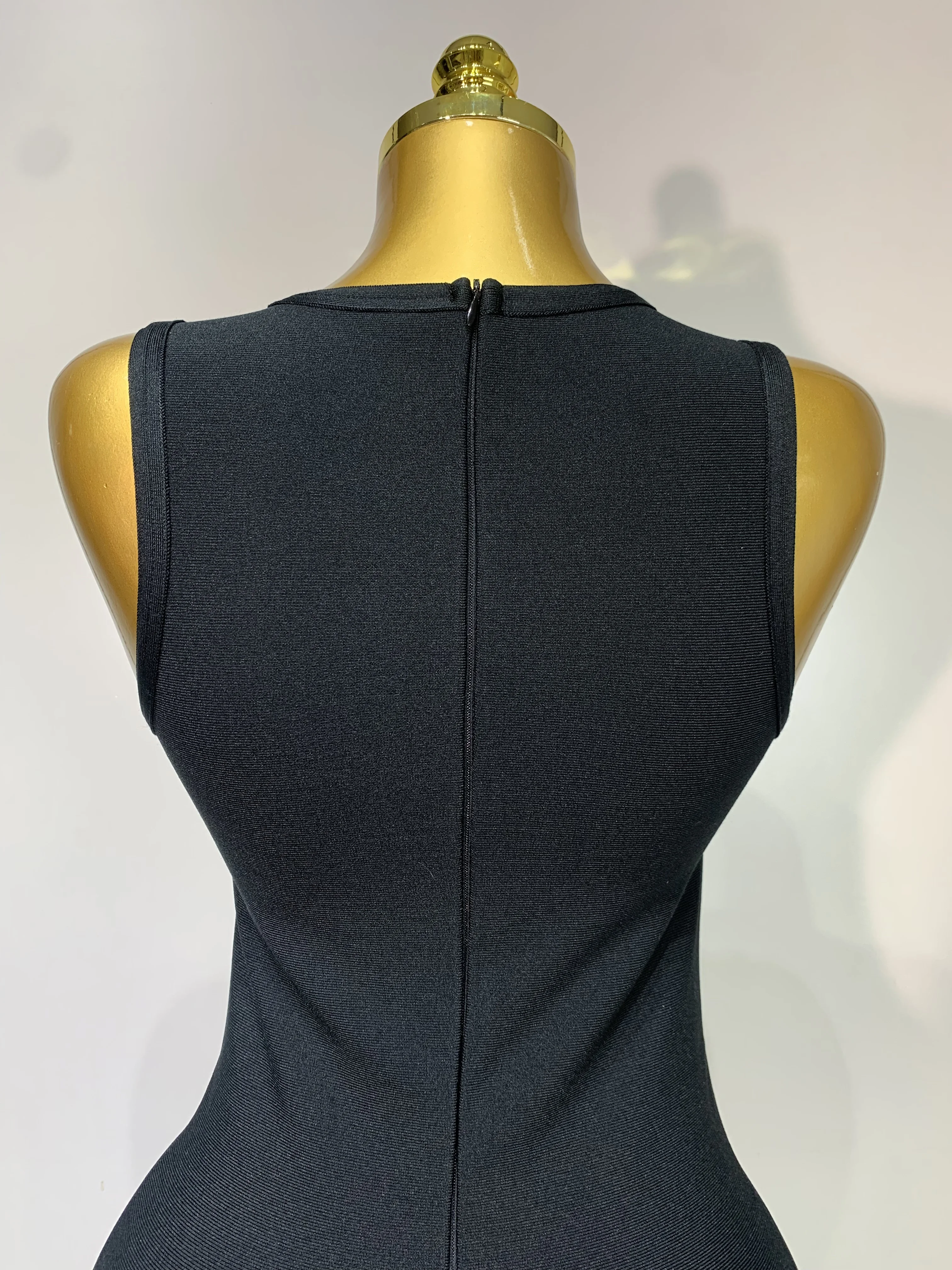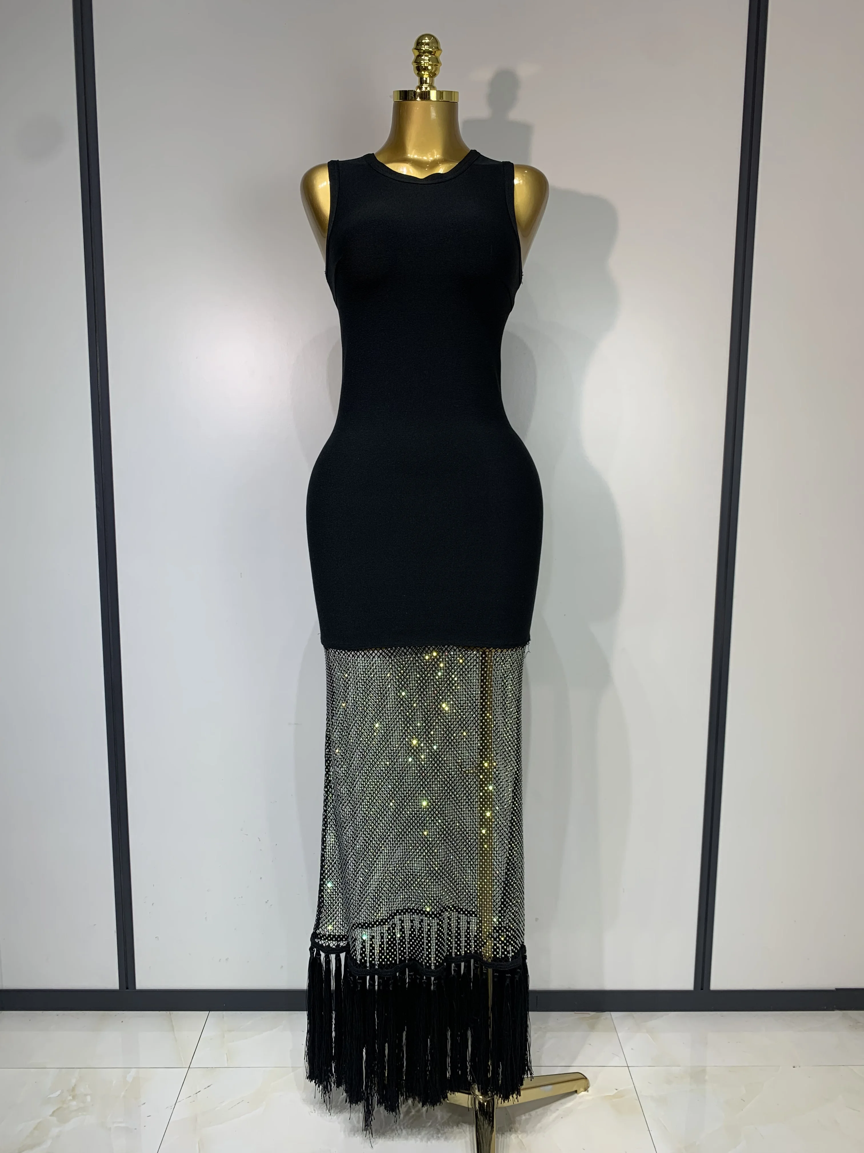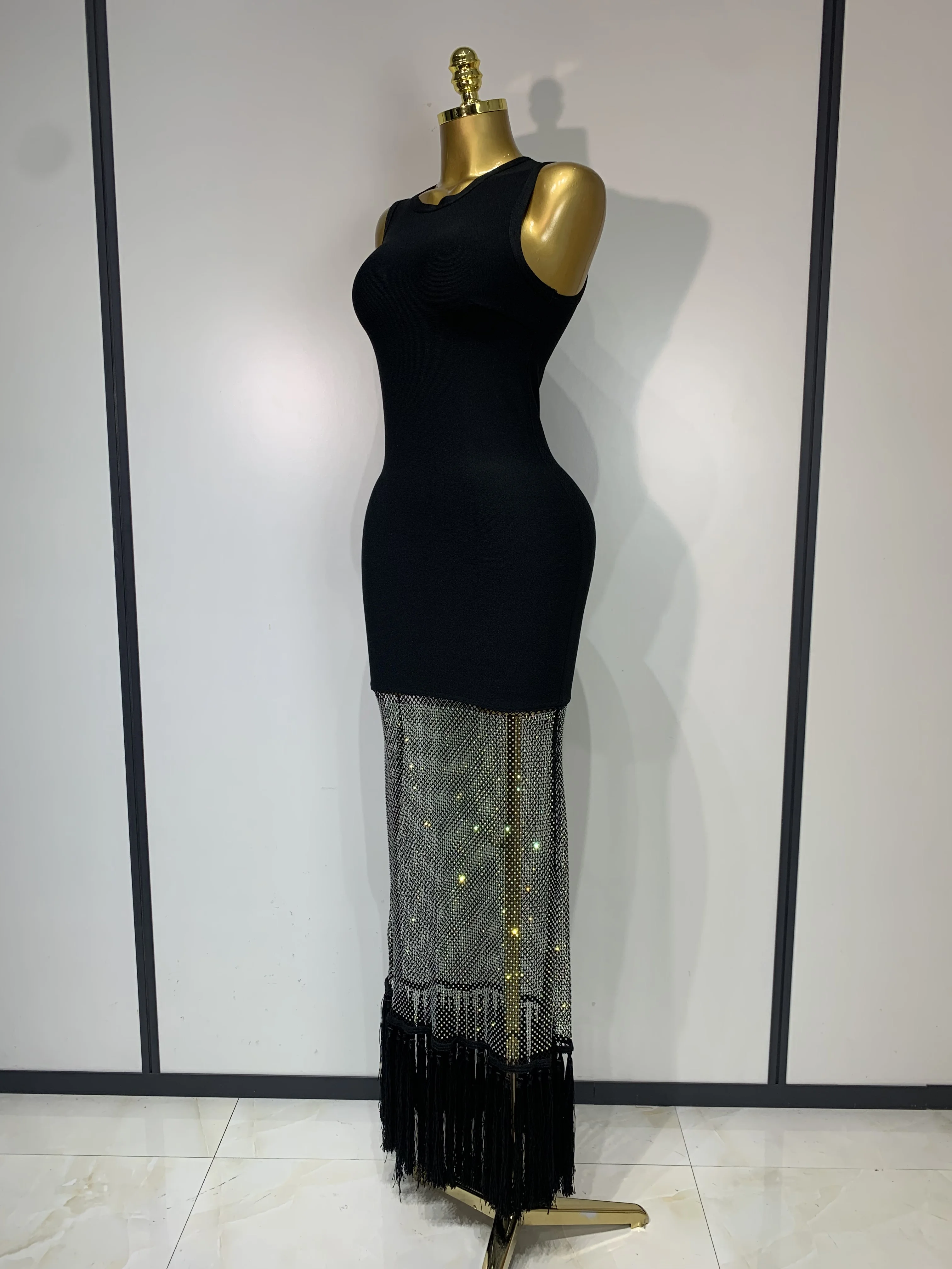 QueenLine Celebrity Luxury Black Sleeveless Sparkly Diamonds Tassel Bandage Cocktail Evening Birthday Dress