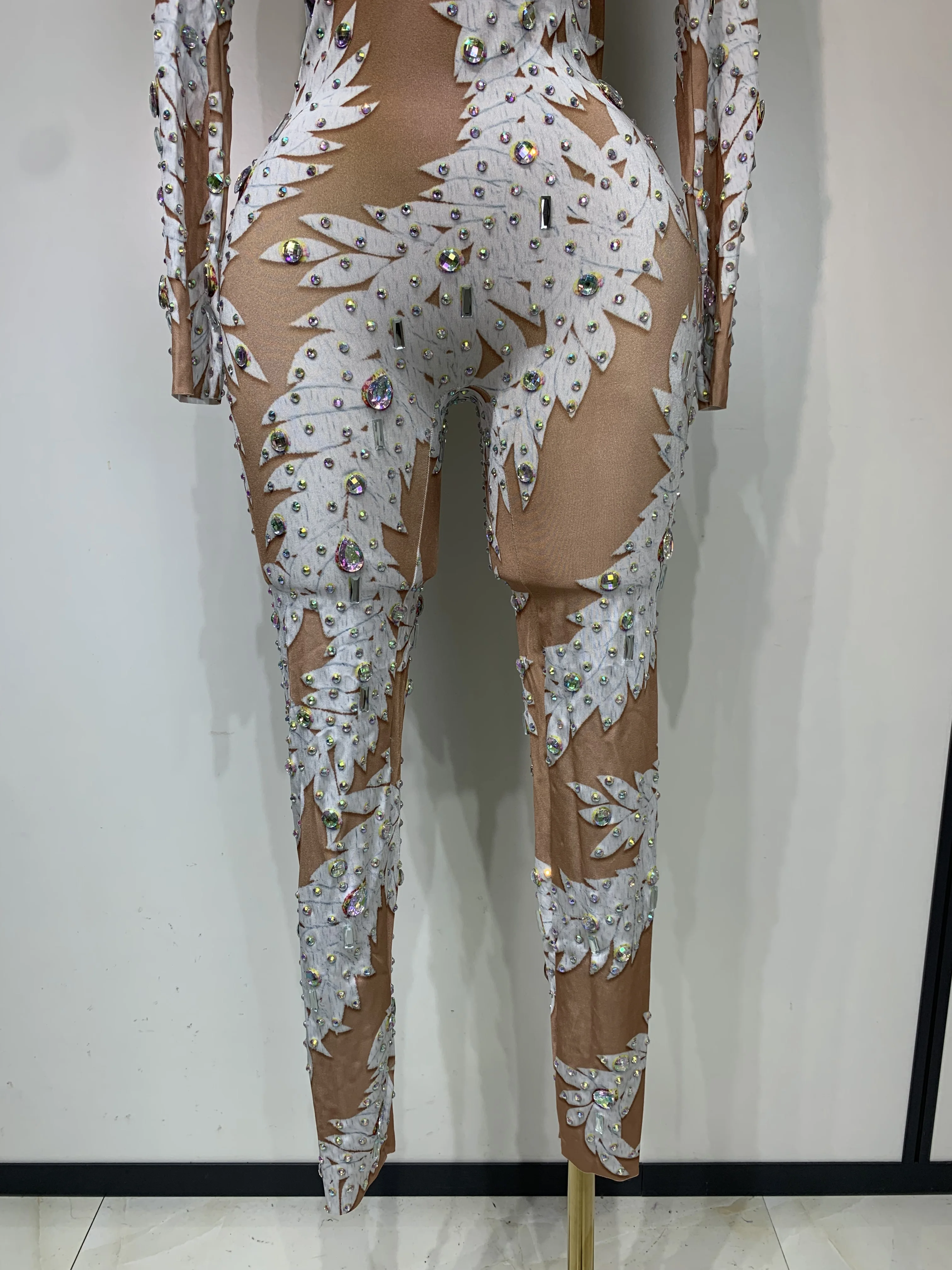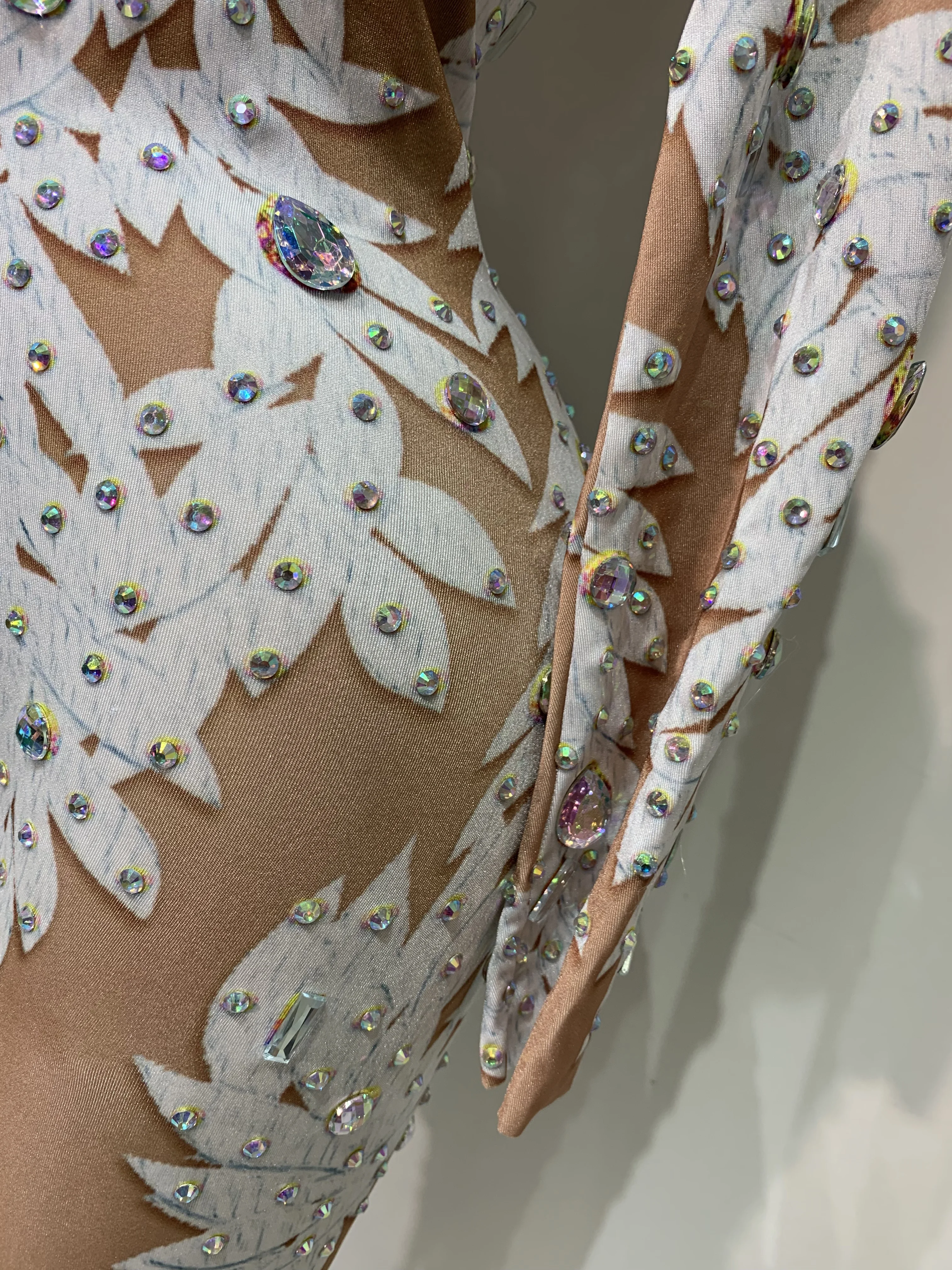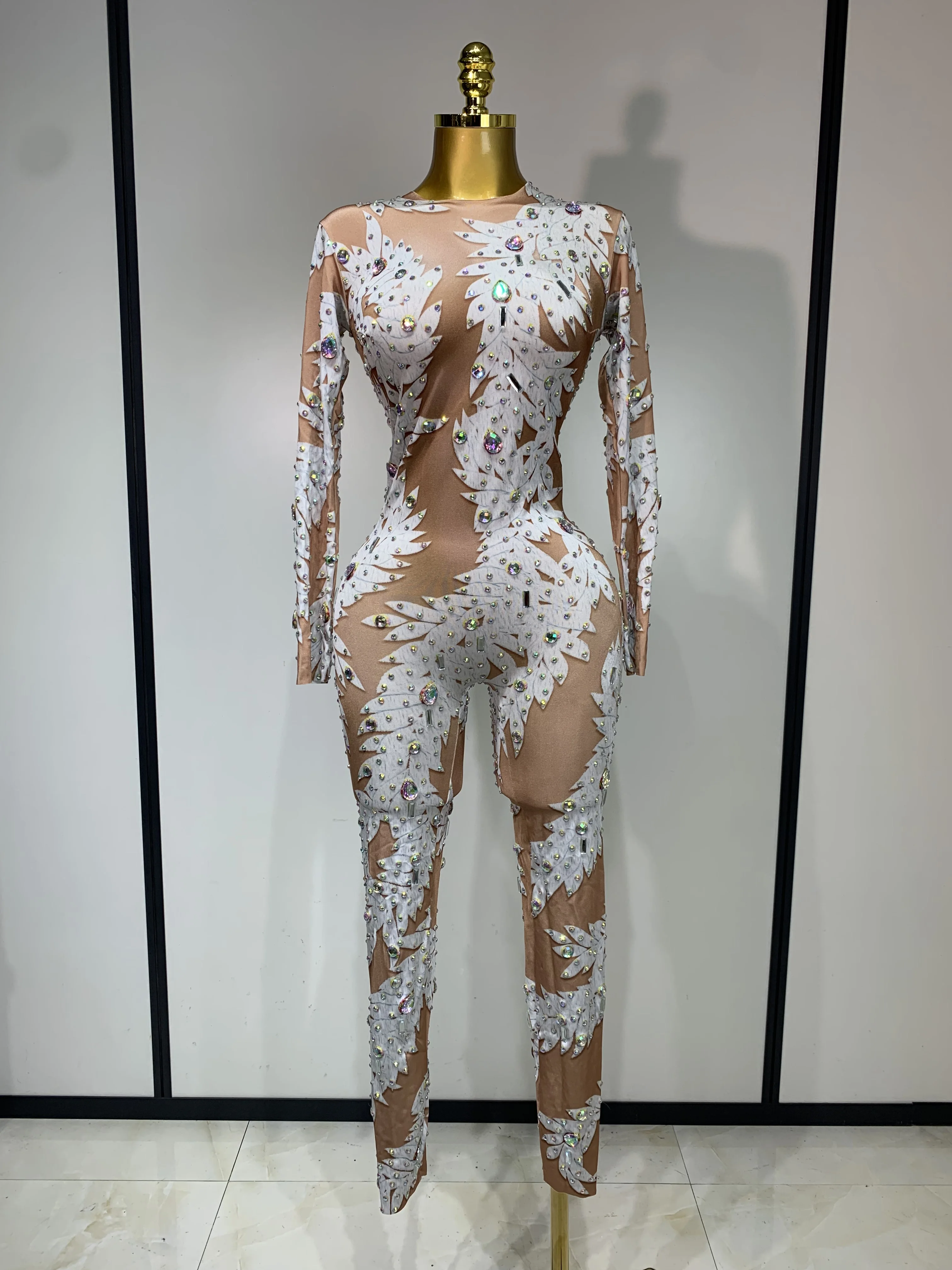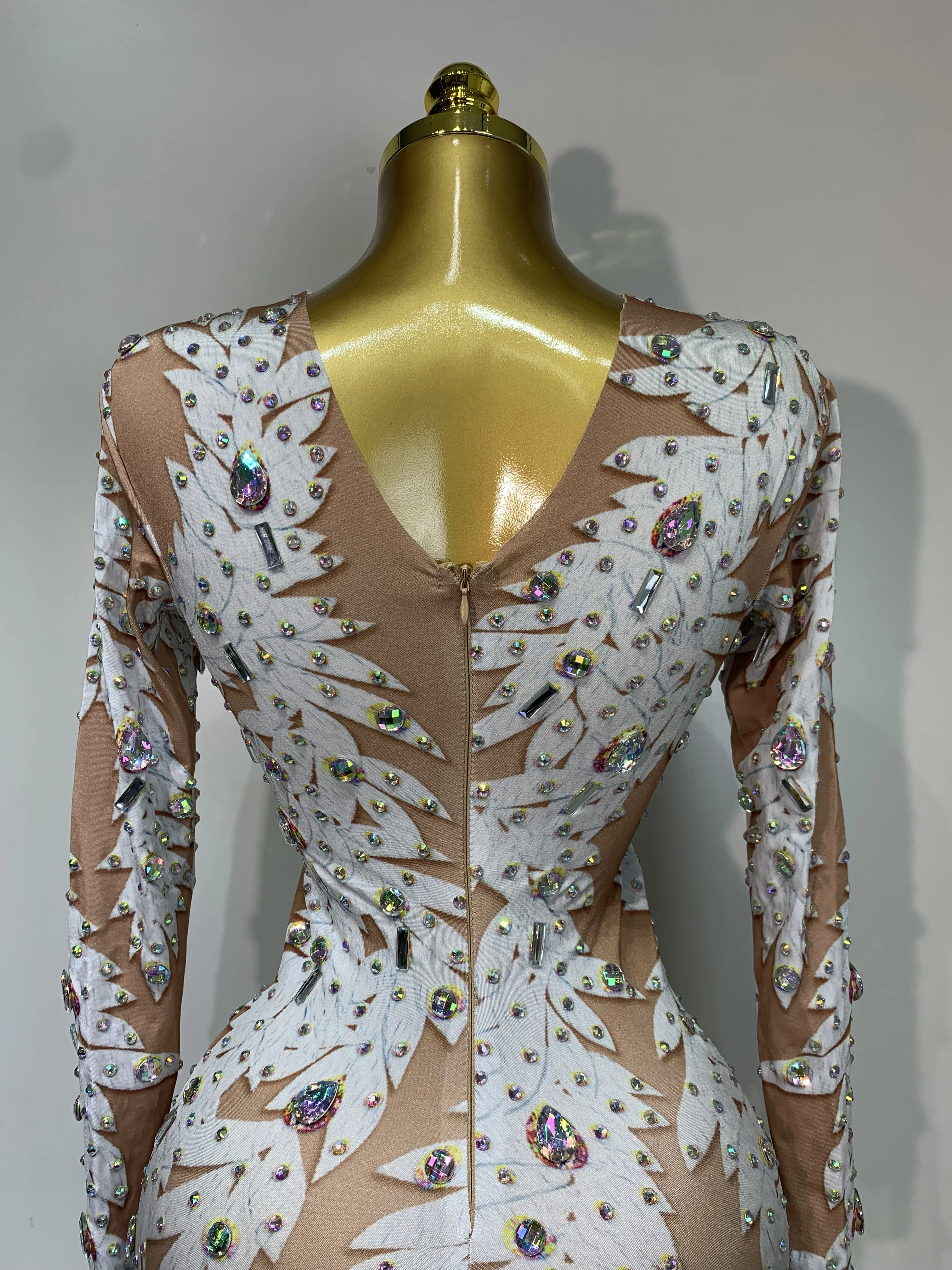 QueenLine Celebrity Sparkly Crystal High Stretch Bodycon Long sleeve Performance Jumpsuit