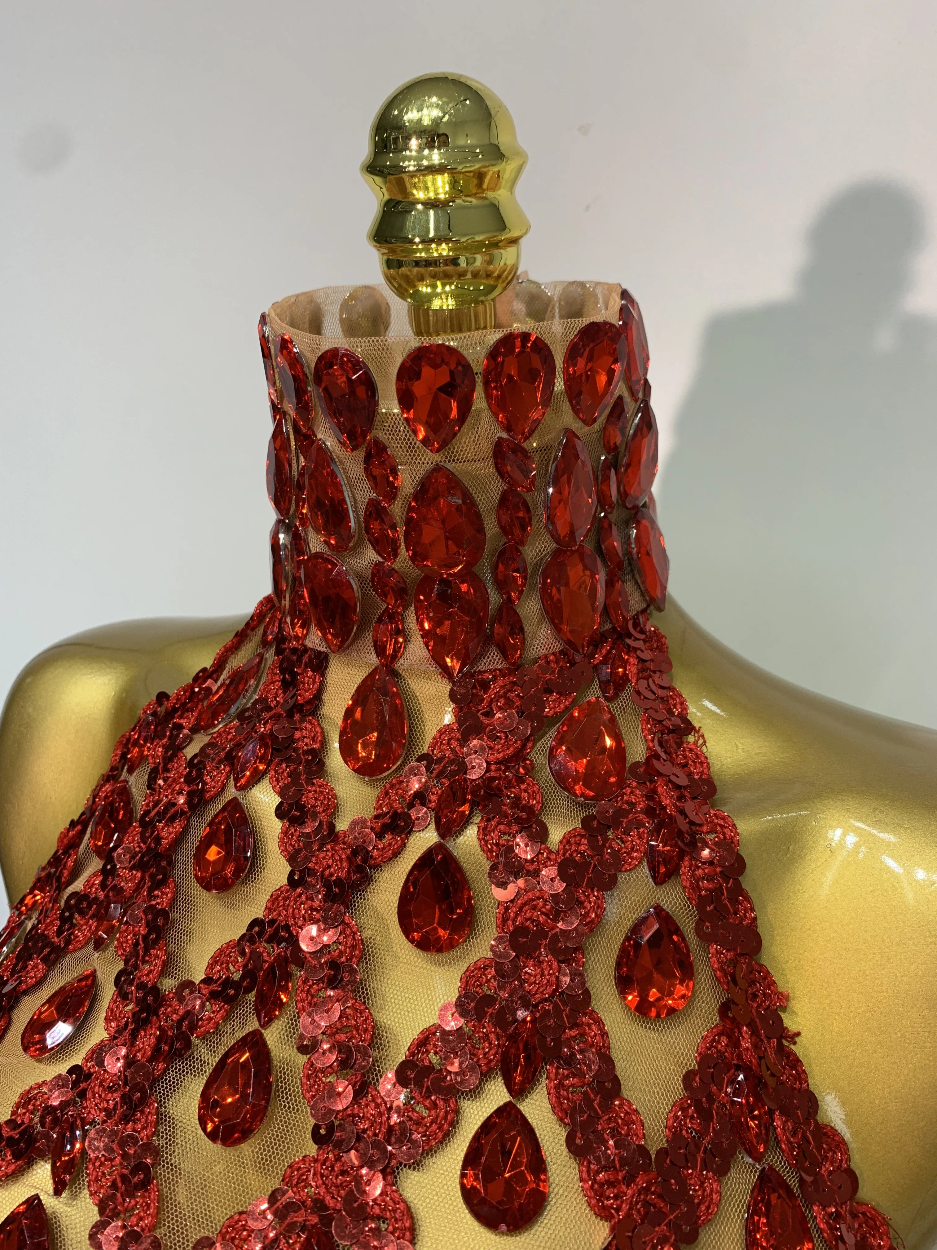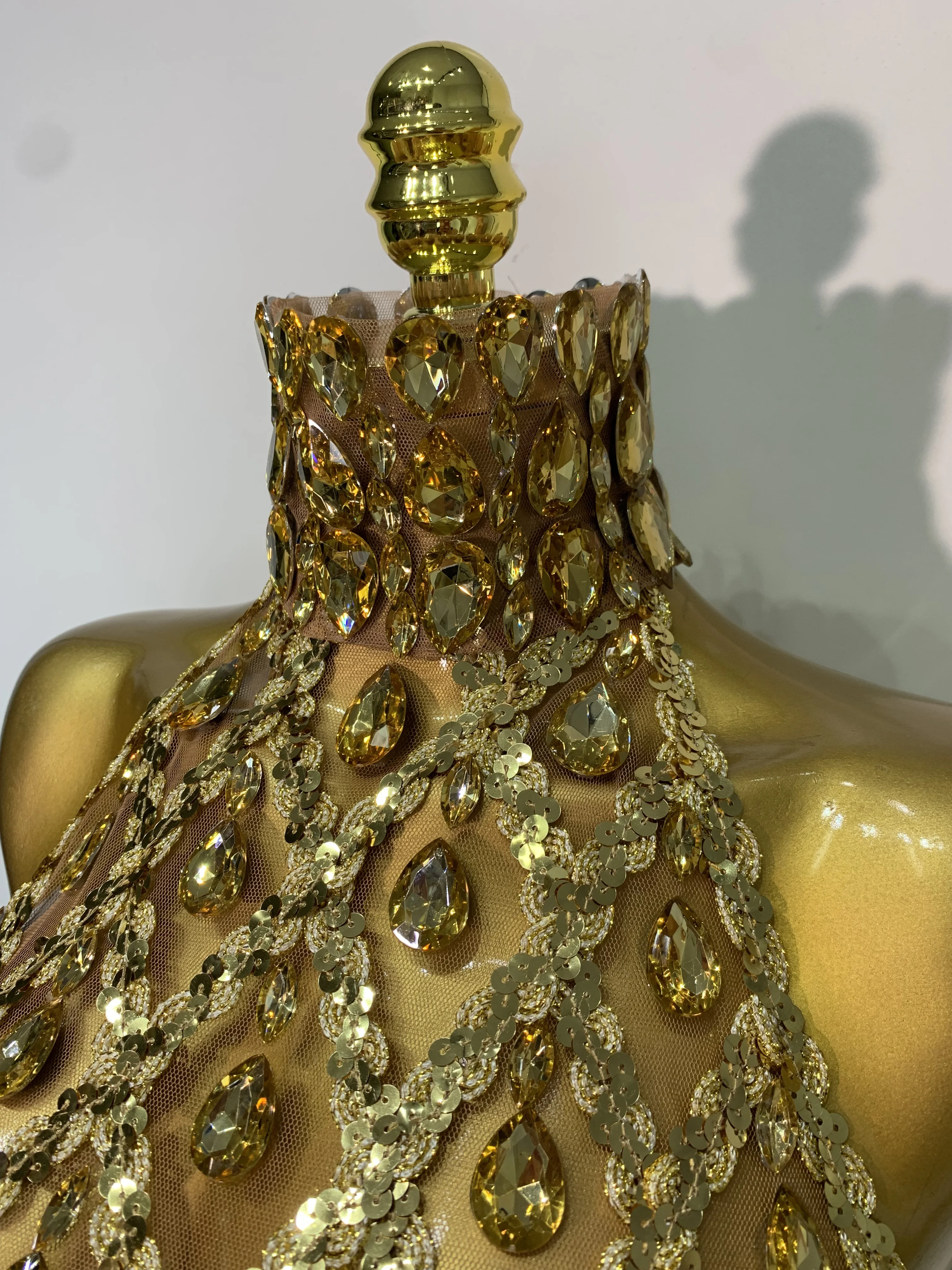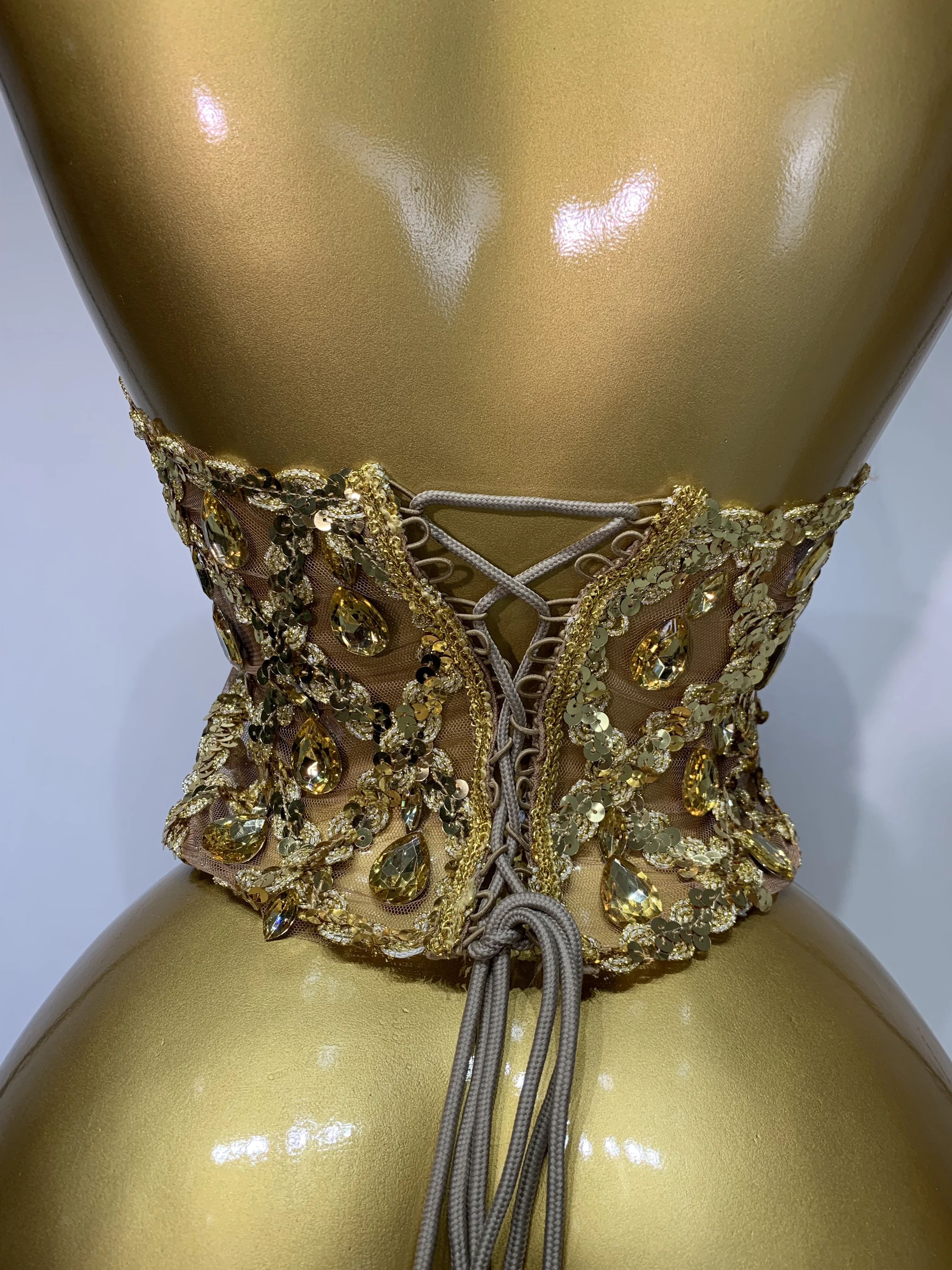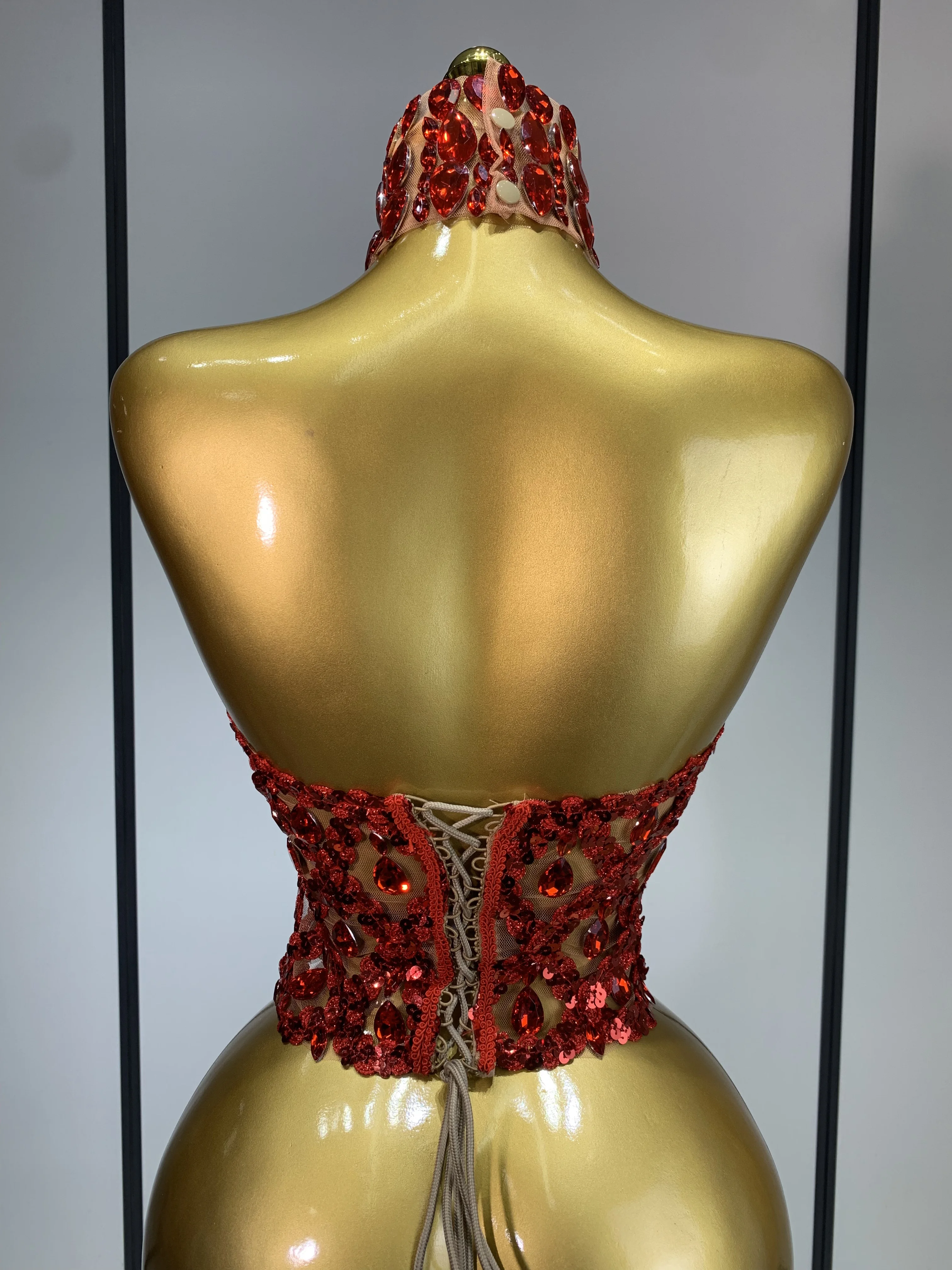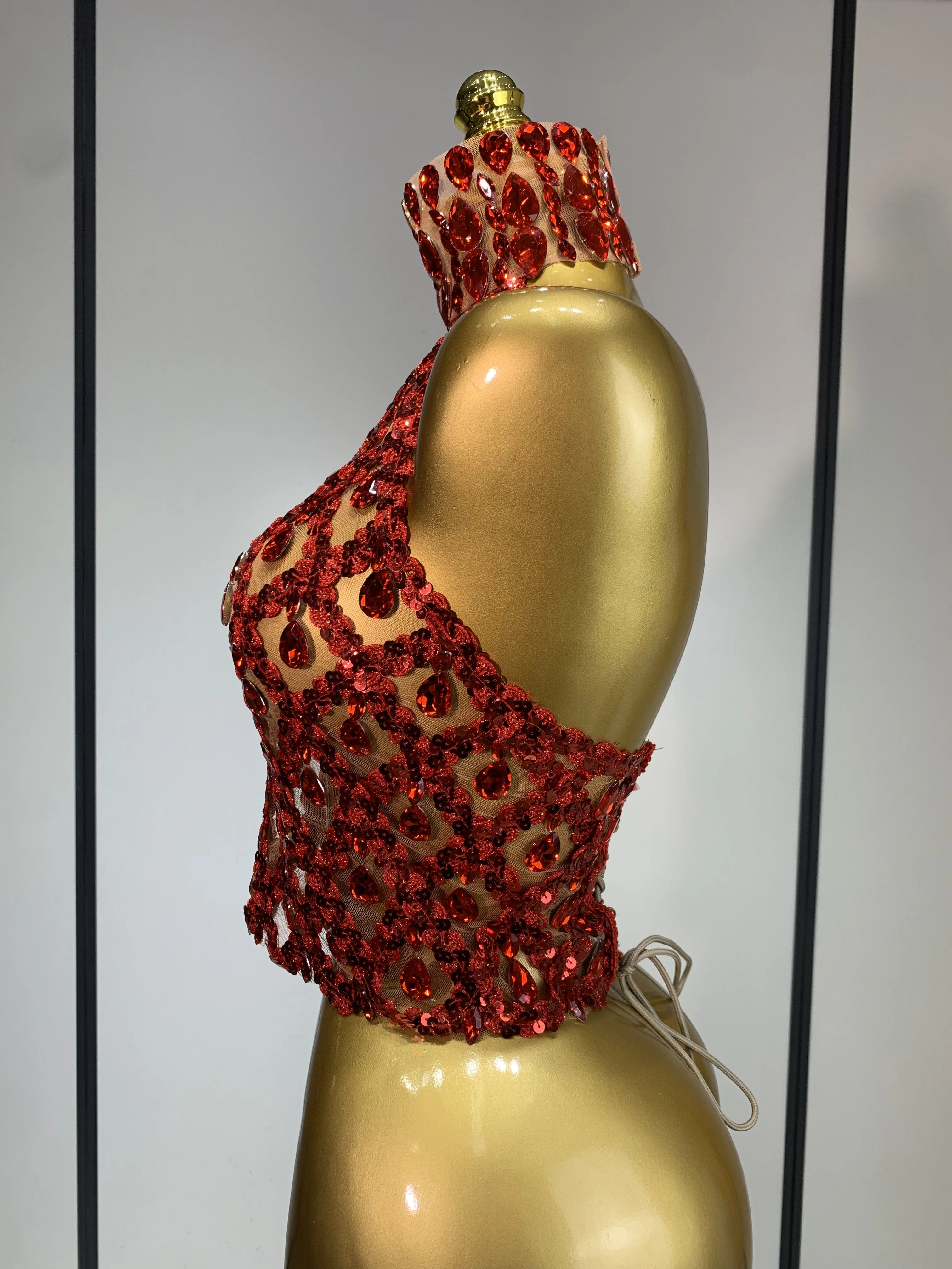 QueenLine Celebrity Sparkly Slver Rhinestone Sequins Mesh See Through Sexy Stage Evening Backless Spicy Top