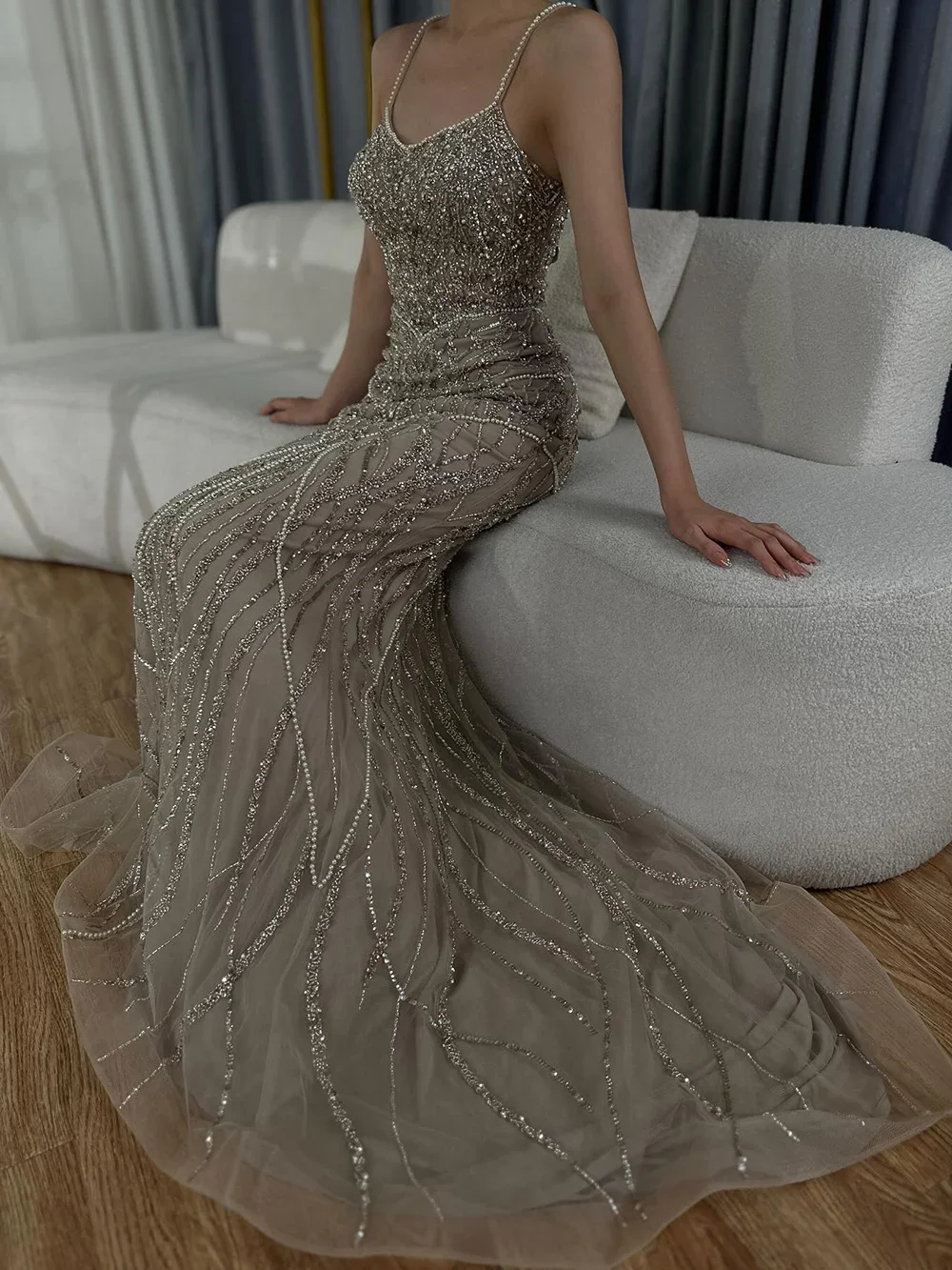 Design & Style:Featuring a stunning beaded design and a mermaid silhouette,