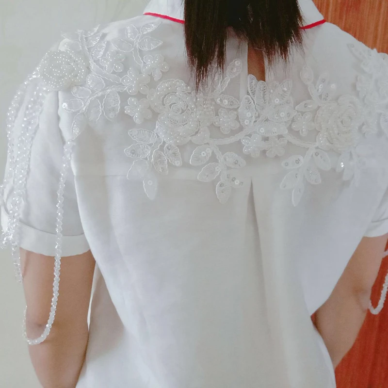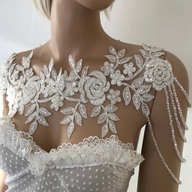 Elegant Bridal Hand-Beaded Crystal Shoulder Chain Jewelry Lace Design Multi-Tiered Beaded Shawl Body Chain Jewelry