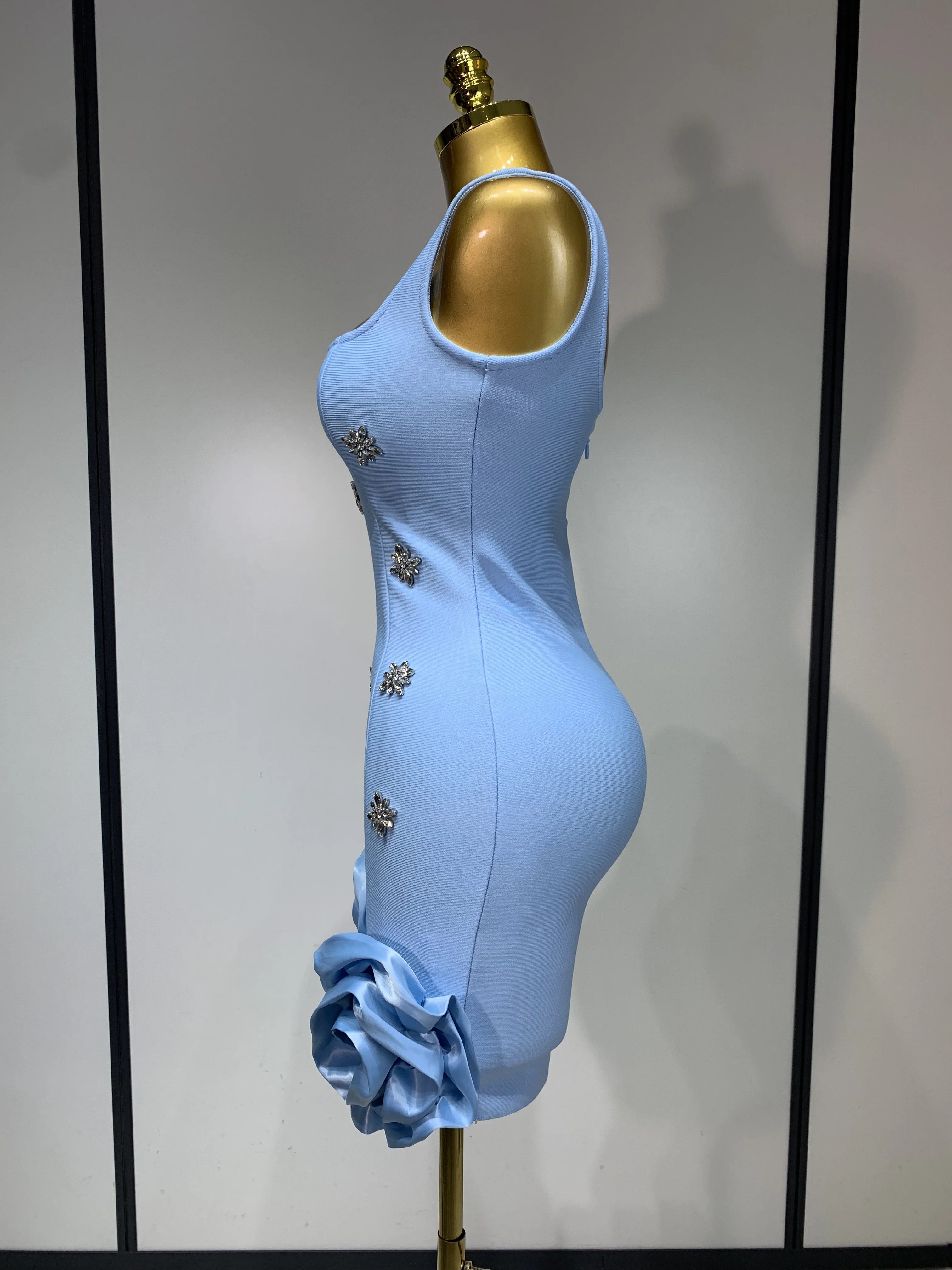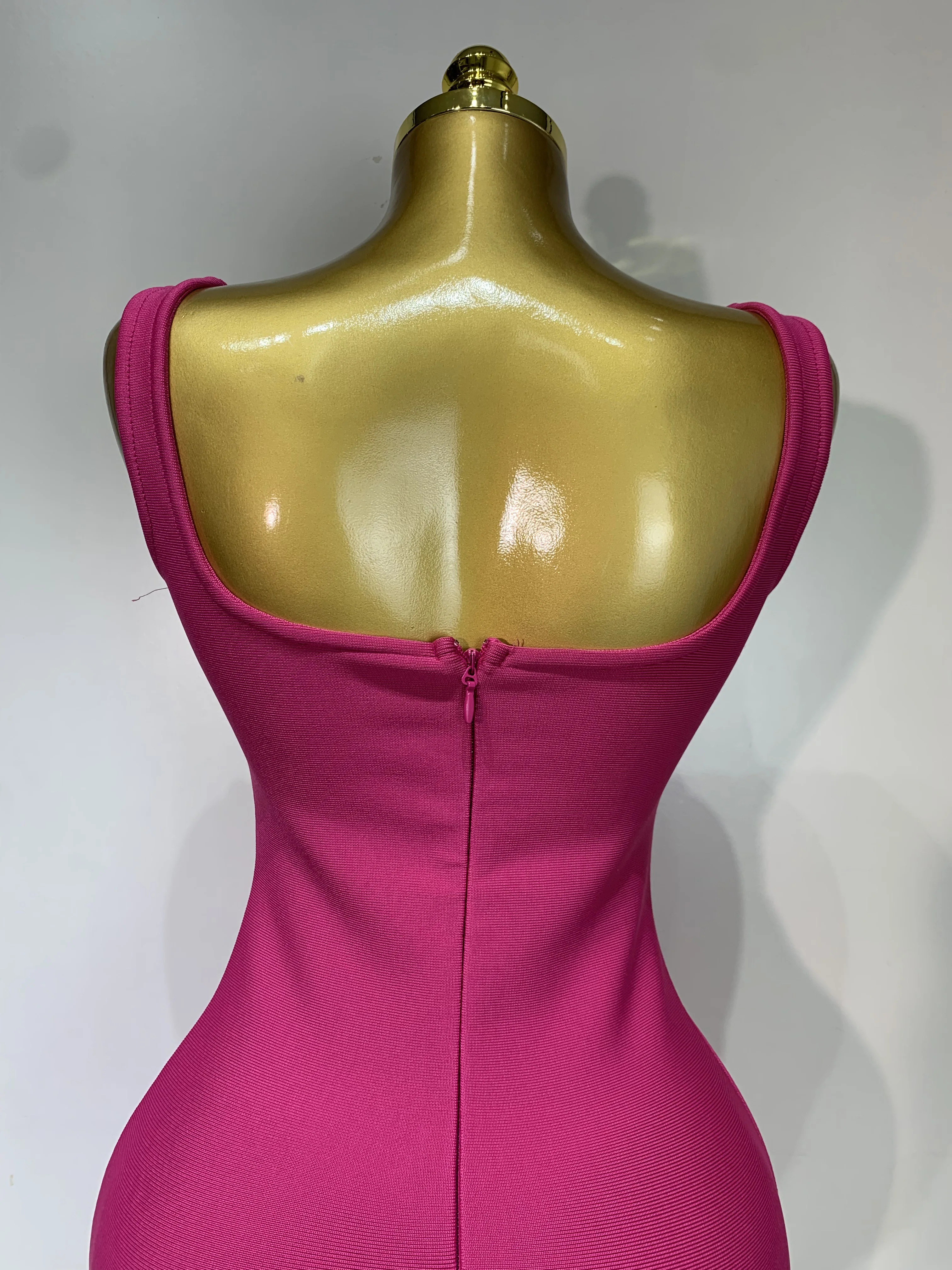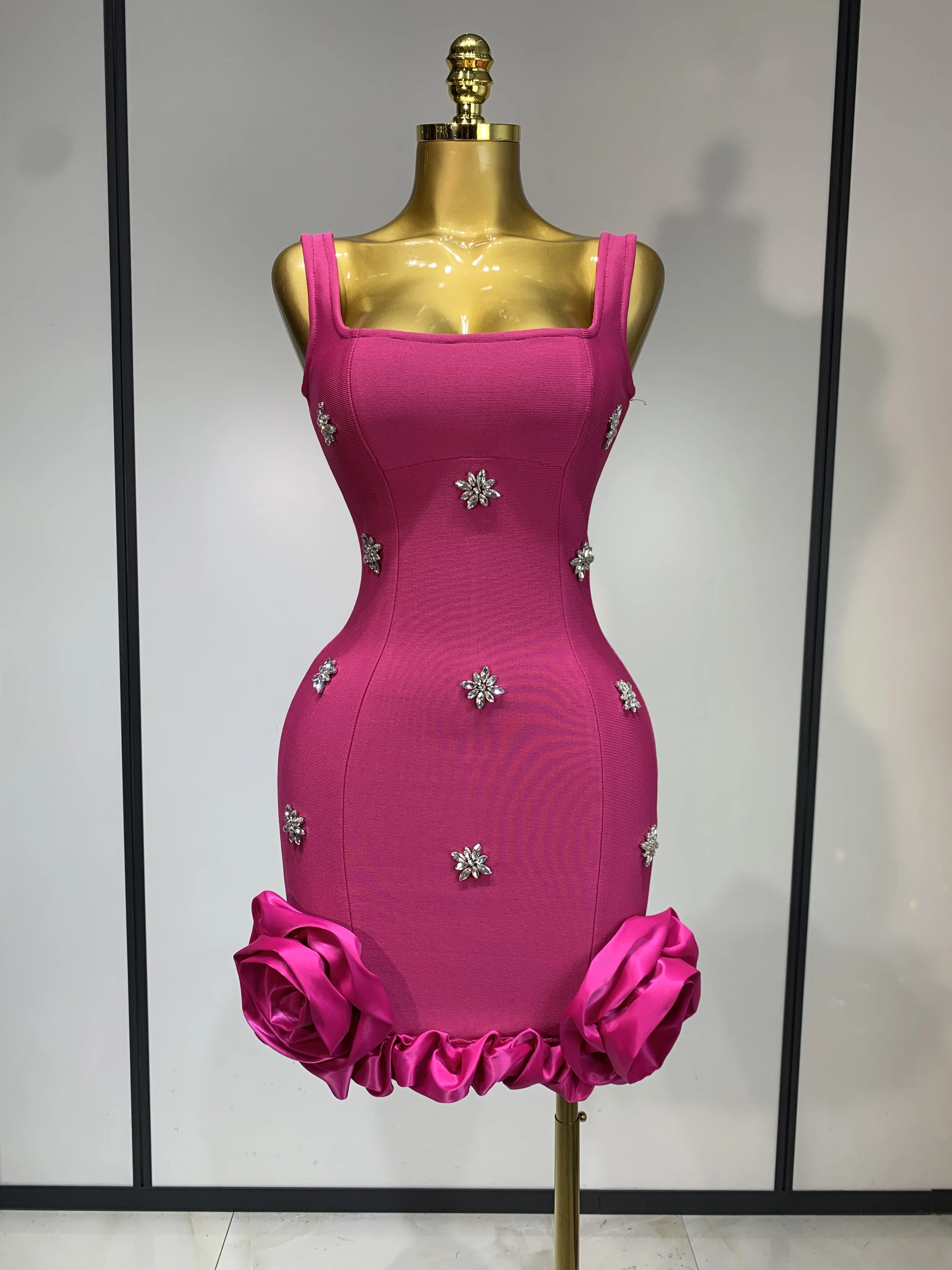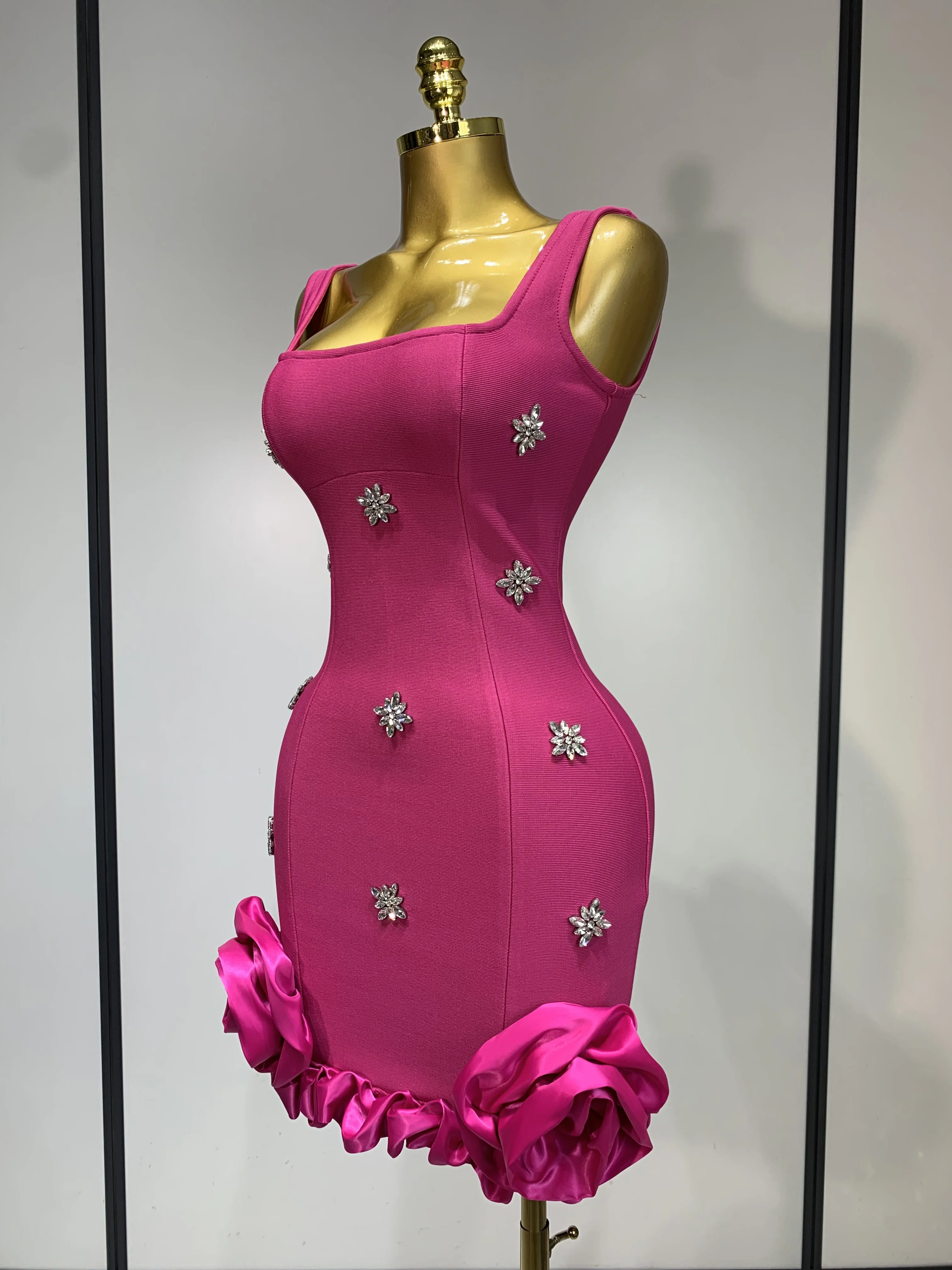 QueenLine Elegant Luxury Celebrity Sexy Sleeveless Square Collar Crystal Bodycon Mini Bandage Evening Dress