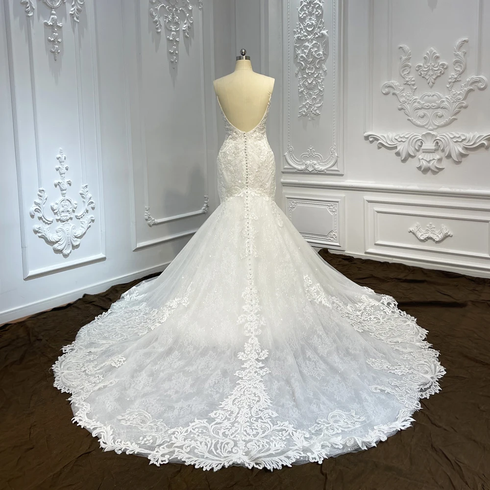 Jancember Elegant First-rate Wedding Dresses For Women Mermaid V-neck Spaghetti Straps Button Backless Embroidery Suknia ślubna