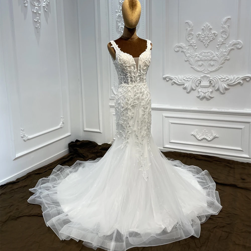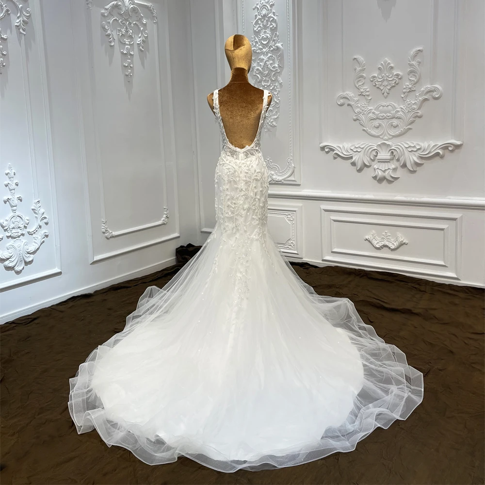Jancember Exquisite Perfect Wedding Dress 2024 Elegant Wedding Mermaid Tank V-neck Sweep Train Backless Vestido De Noiva LSCJ15