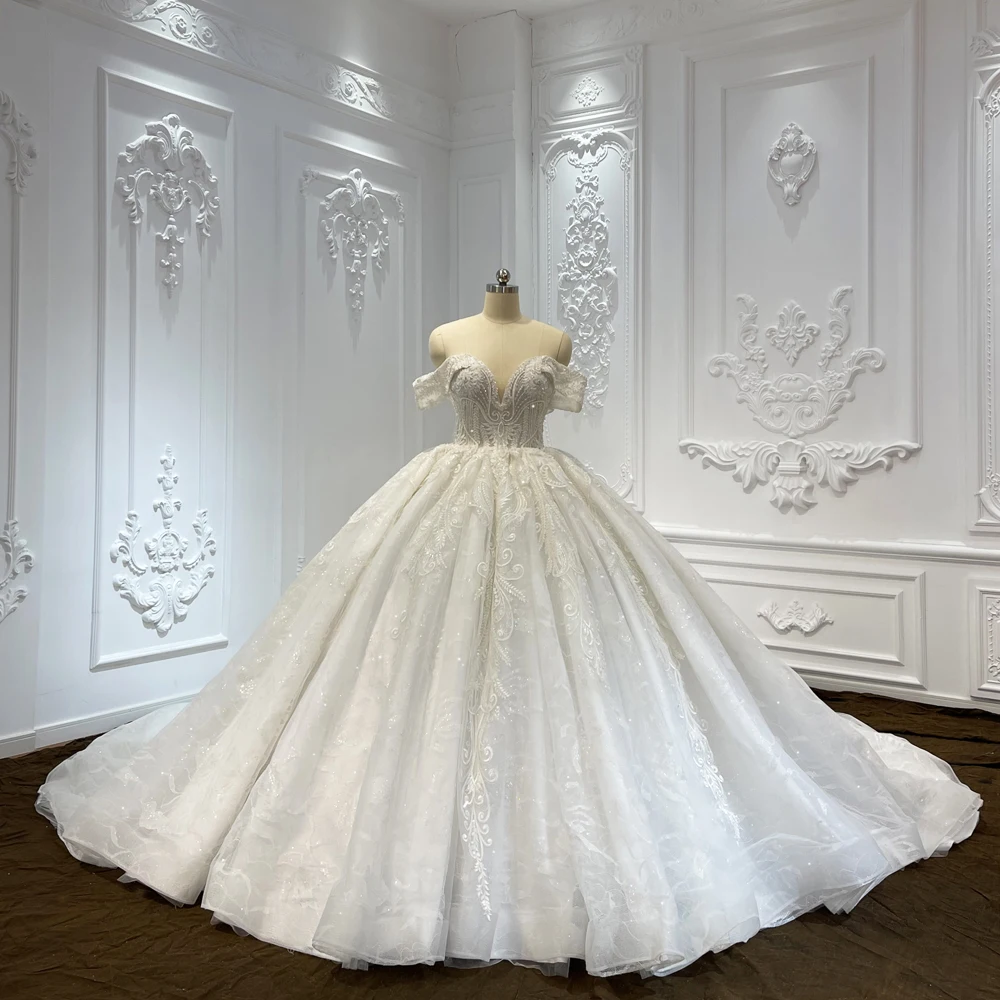 Jancember Exquisite International Dresses For Women 2024 Ball Gown Short Sleeves V-neck Embroidery Vestido De Noiva LSCJ09