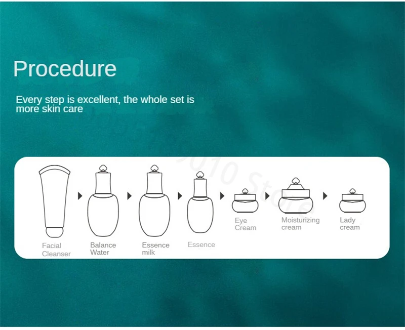 First clean the face with facial cleanser, then use toner, eye cream, after that use essence, emulsion, finally use face cream.
