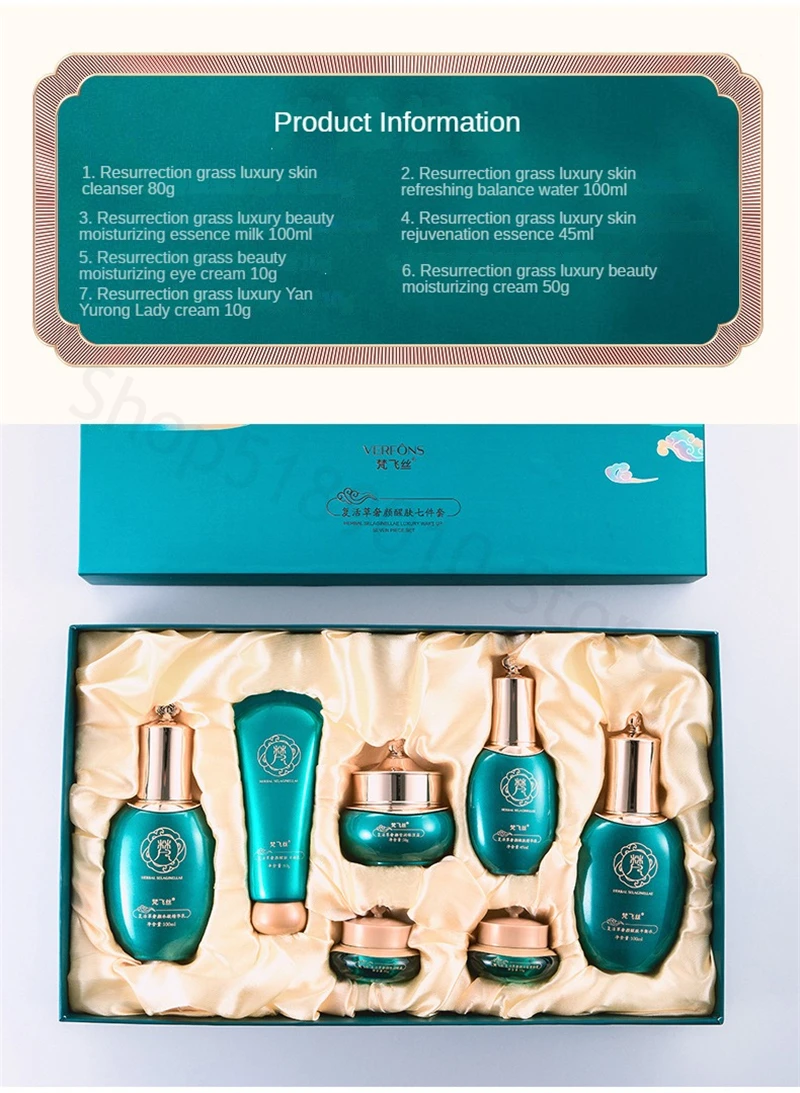 Model Number: Resurrection Grass Skin Care SetsNET WT: 80g+100ml+100ml+45ml+10g+50g+10g