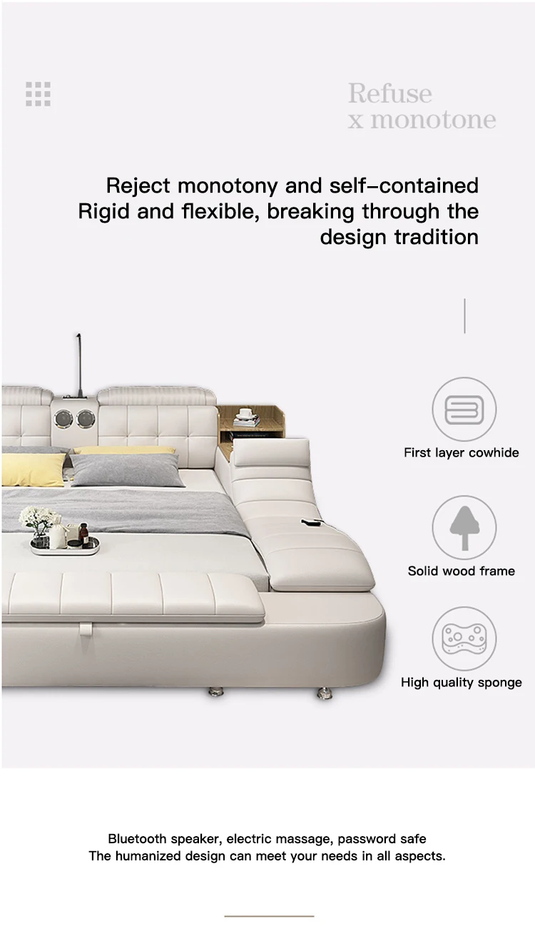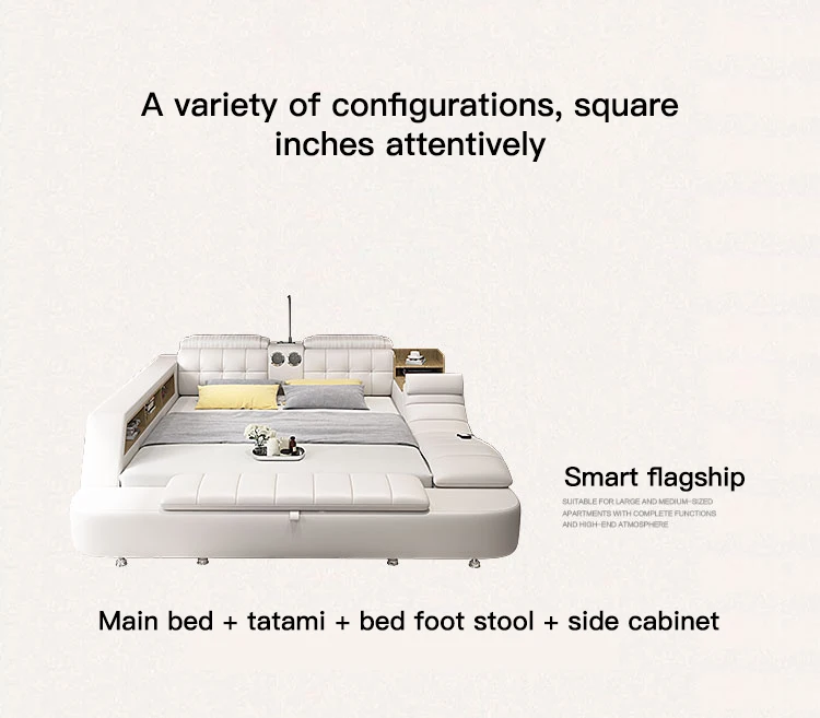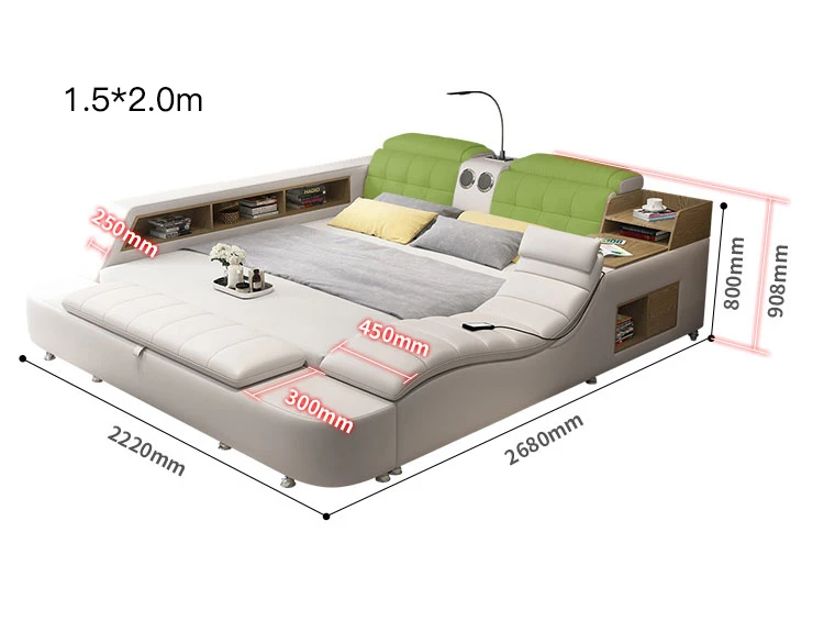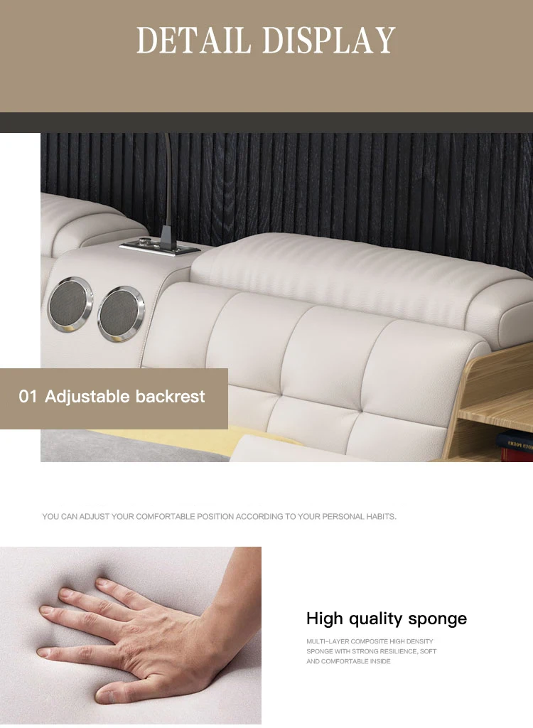 a.The bed is equipped with smart bluetooth speakers, projectors, electric massage chairs, password safes, etc. You can also enjoy the cinema viewing effect at home, bringing you a smart and convenient life.