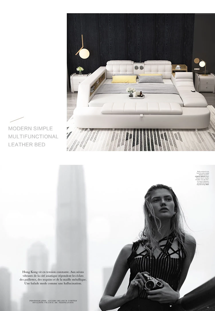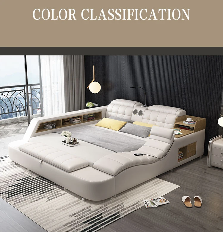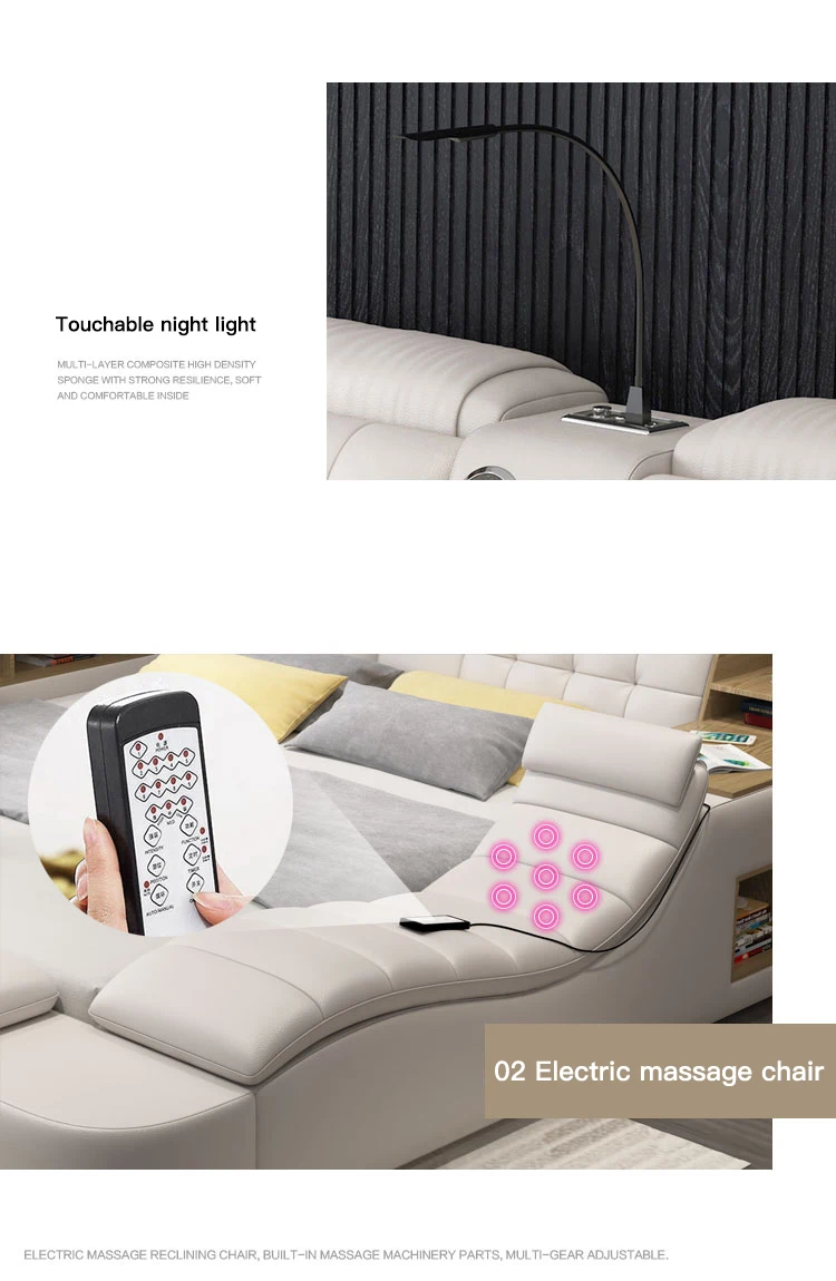 Modern Smart Multifunctional Queen Double Bed Nordic Luxury Massage Fabric