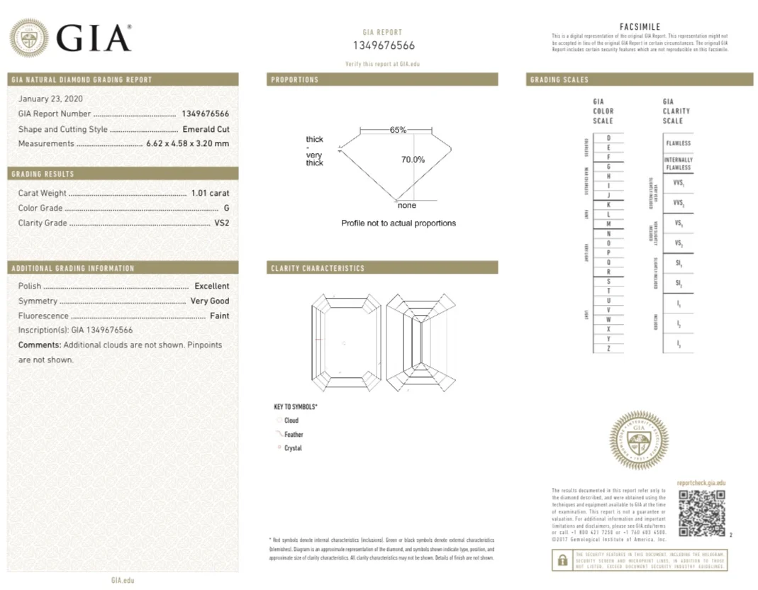 Diamonds total: 1.01ct, G,VS2, EX,VG,F